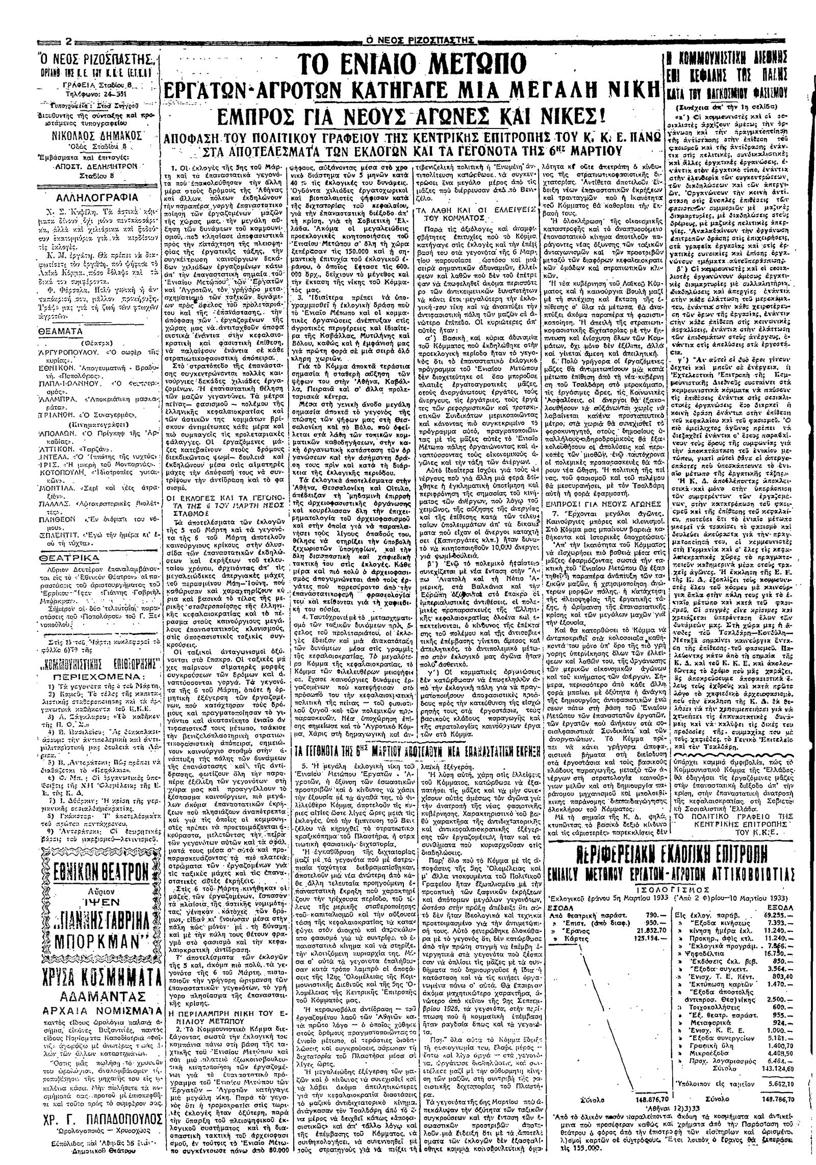 Ριζοσπάστης 12/03/1933