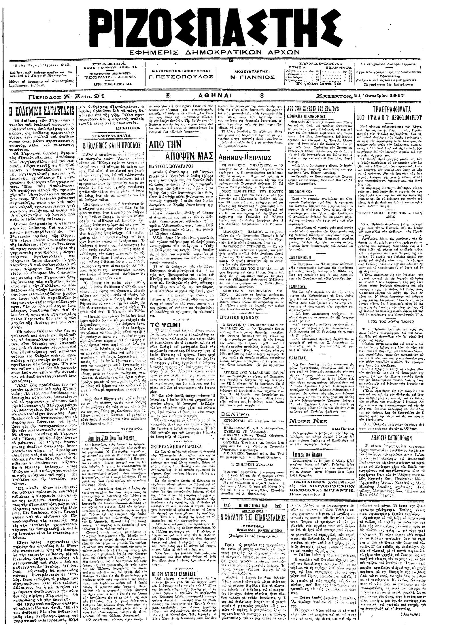 Ριζοσπάστης 21/10/1917