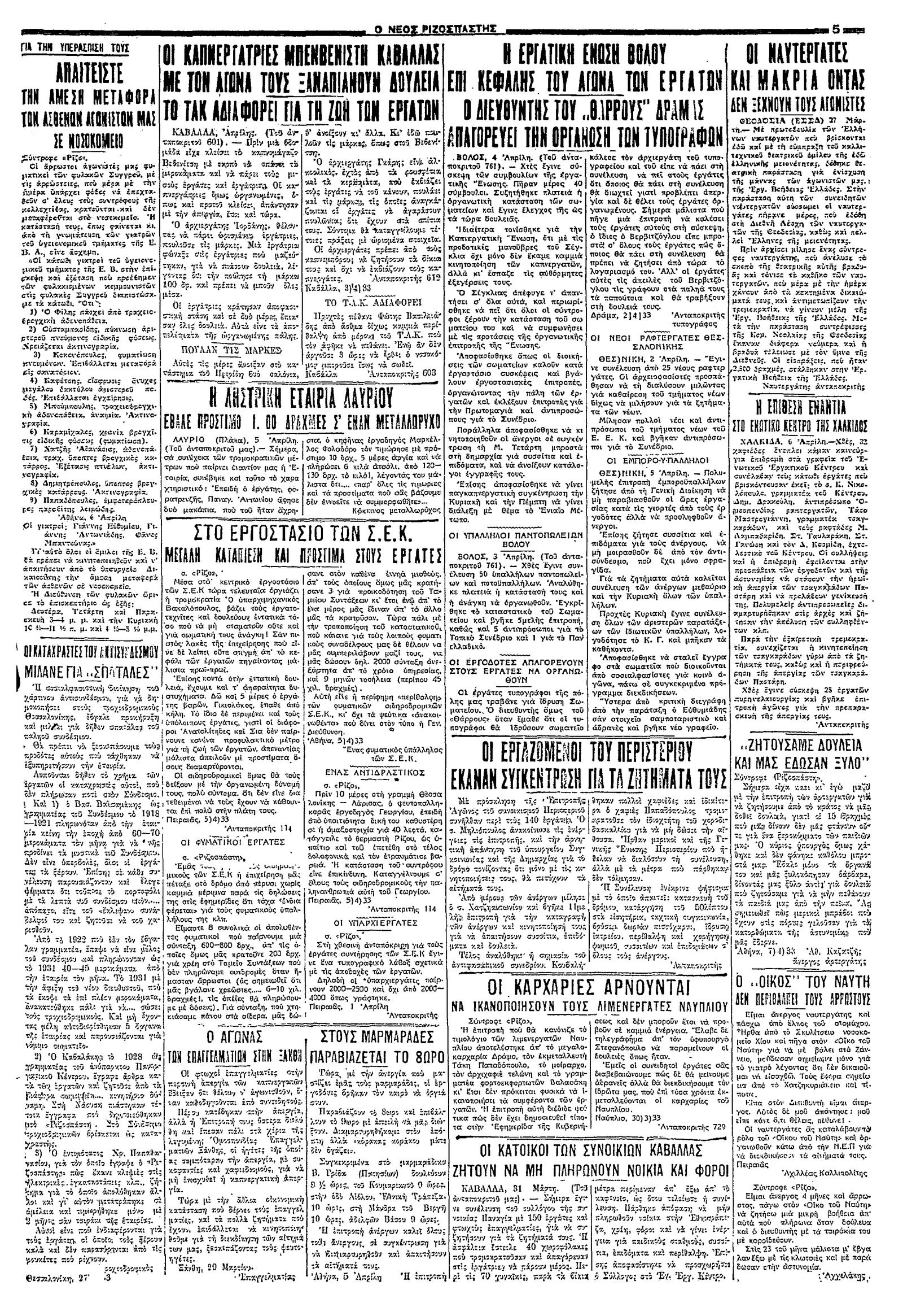 Ριζοσπάστης 08/04/1933
