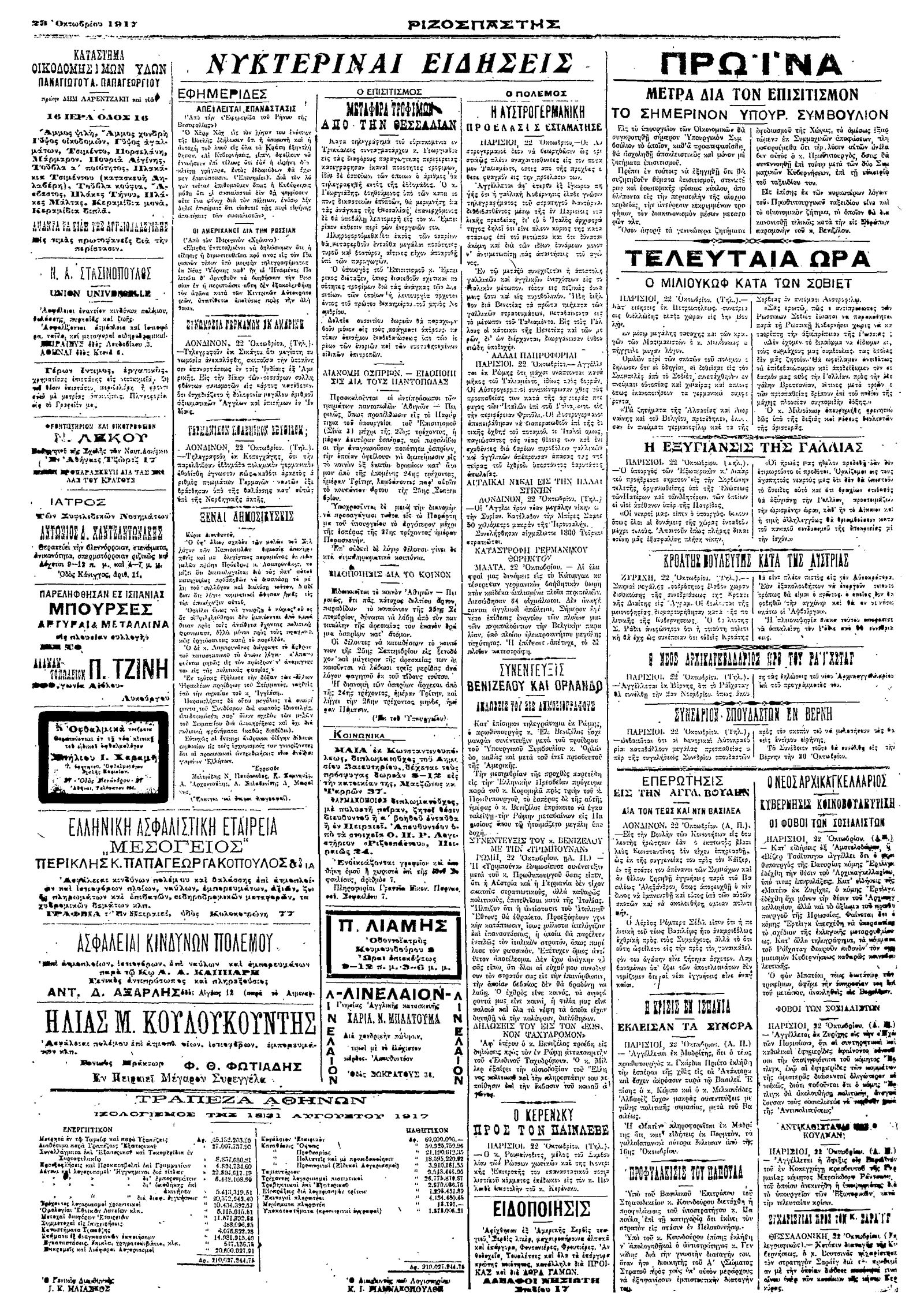 Ριζοσπάστης 23/10/1917