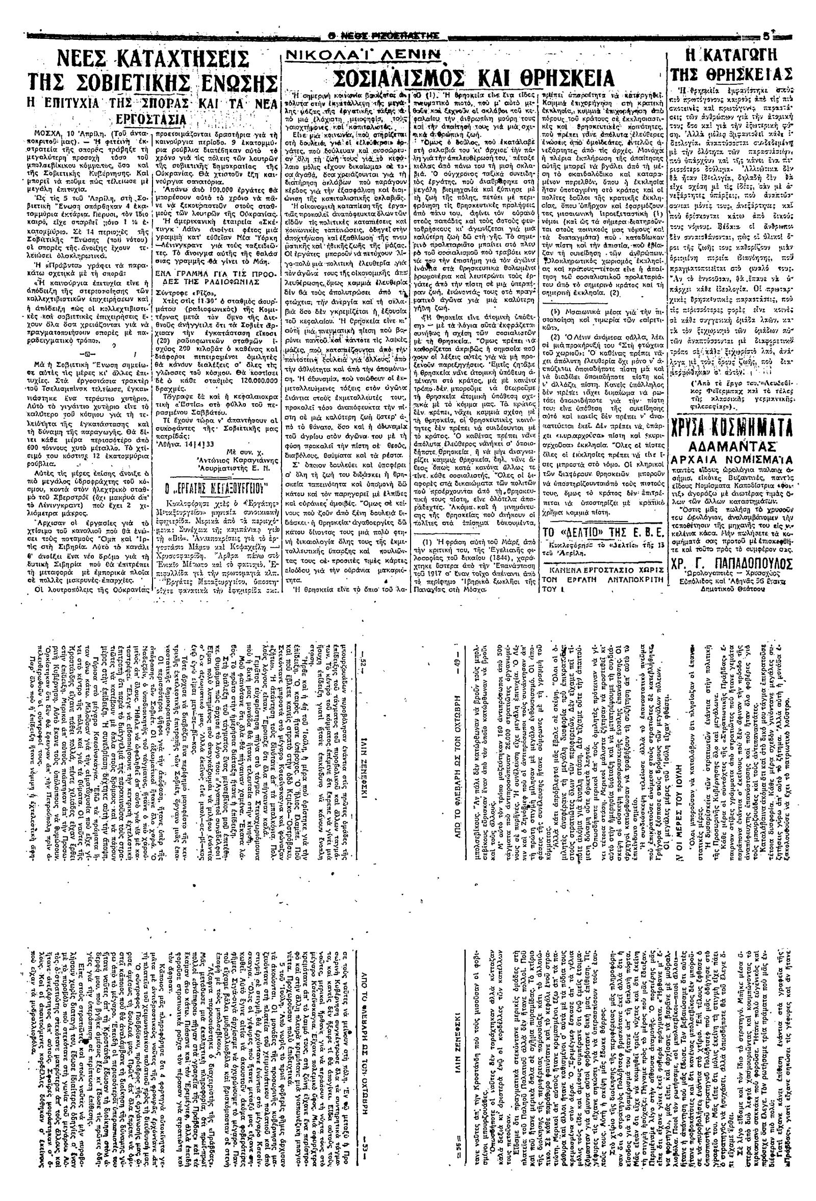Ριζοσπάστης 16/04/1933