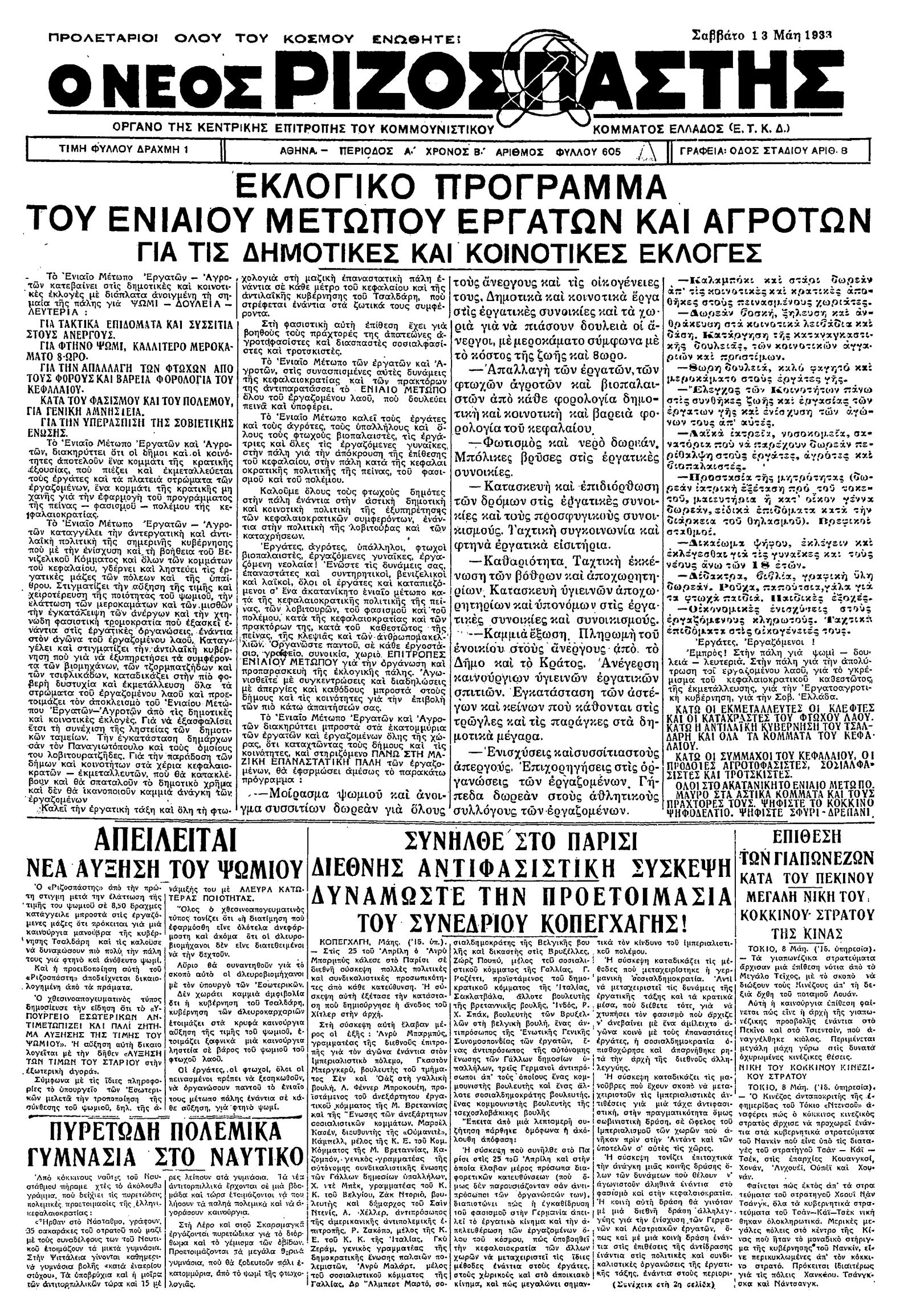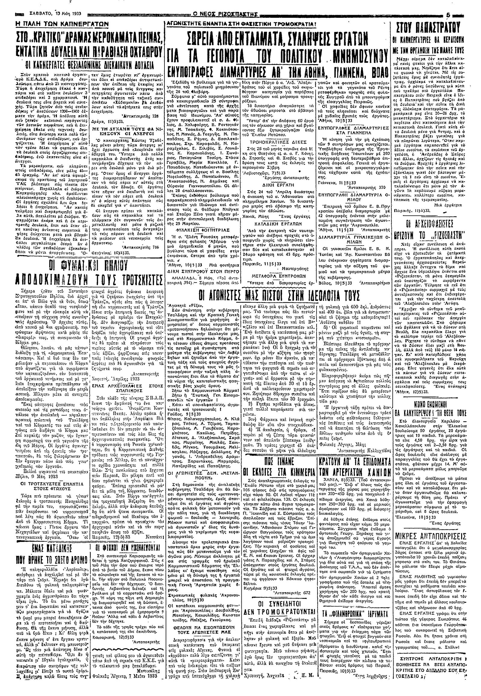Ριζοσπάστης 13/05/1933