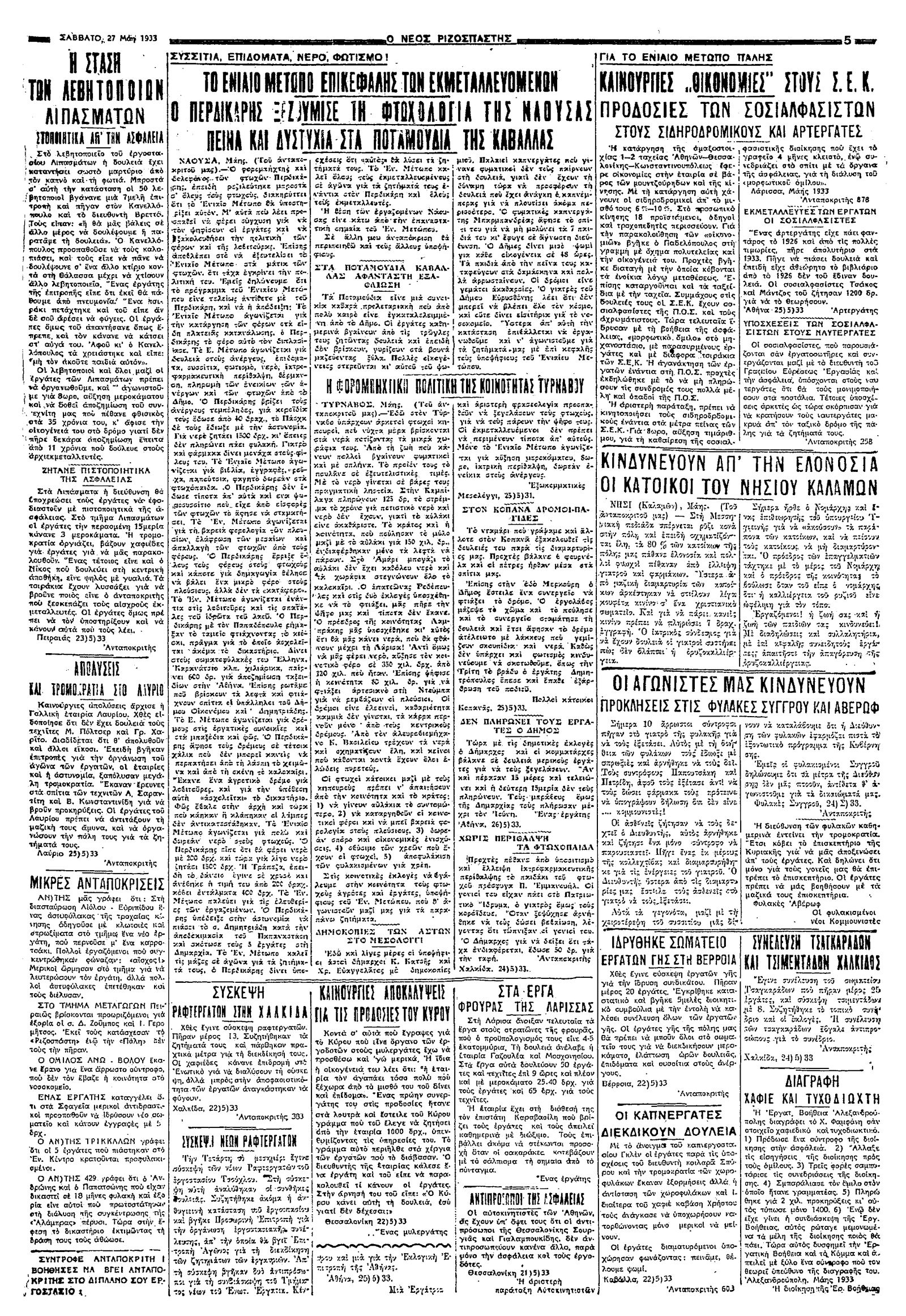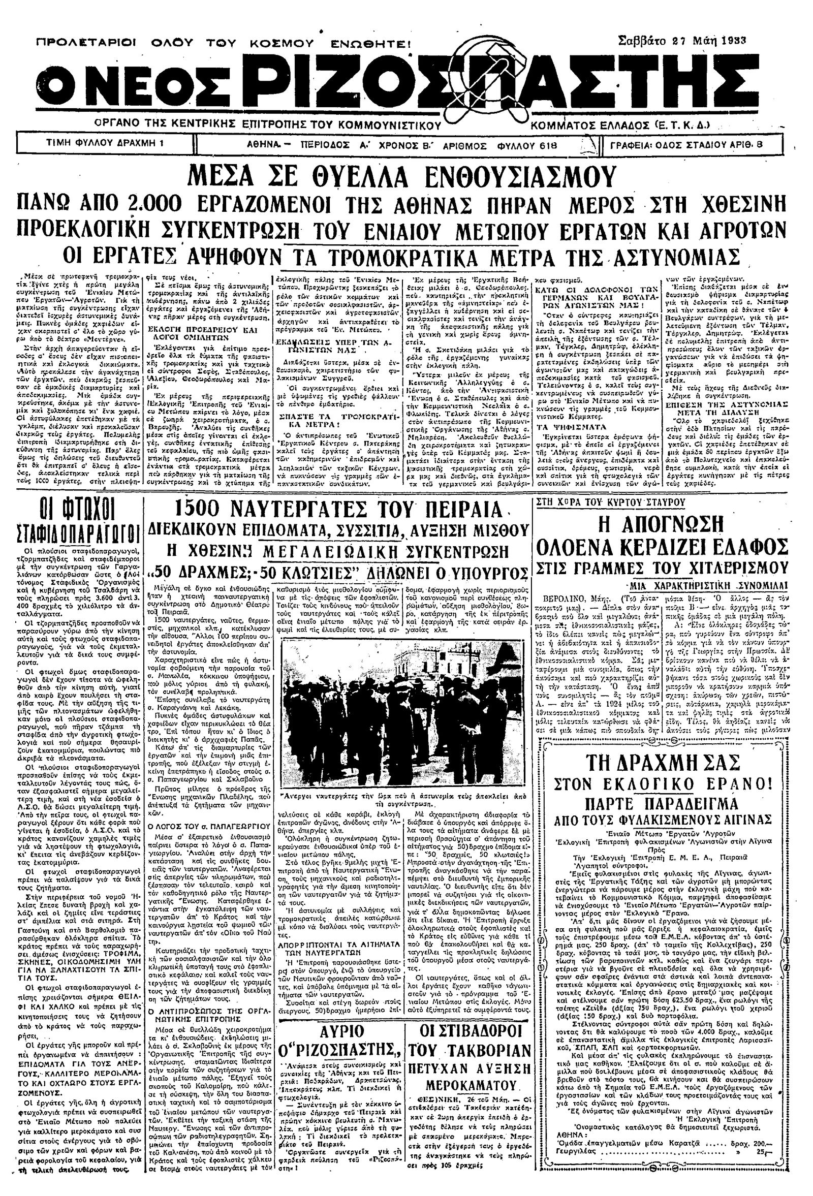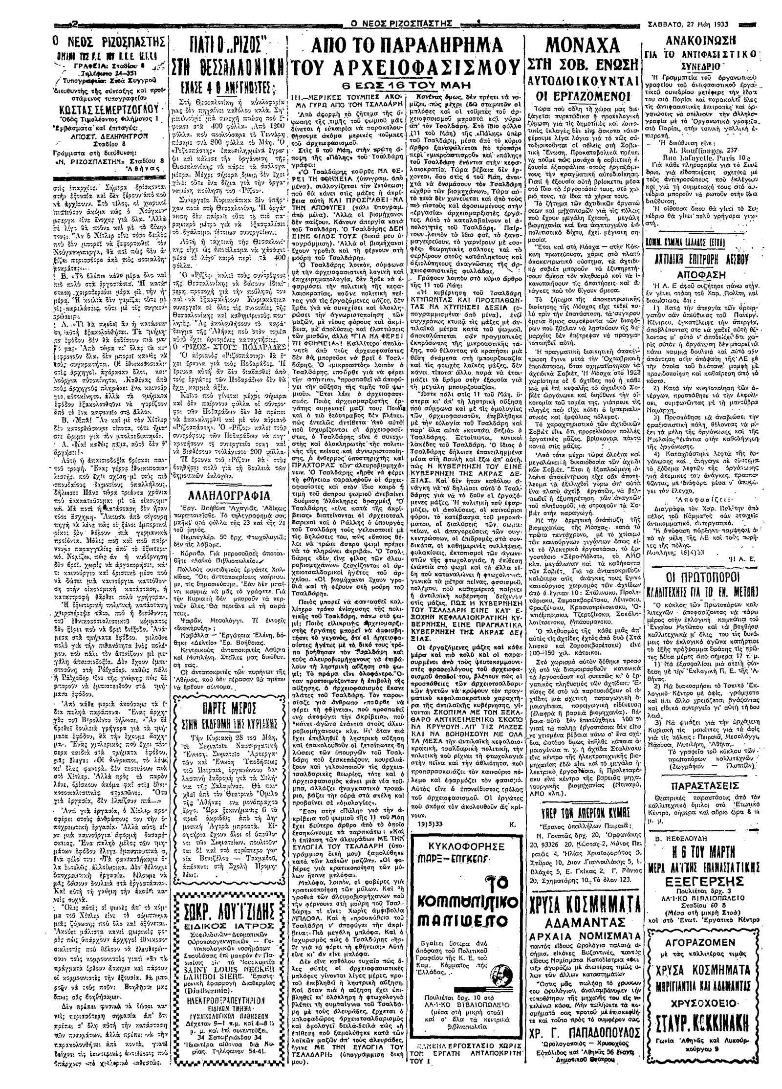 Ριζοσπάστης 27/05/1933