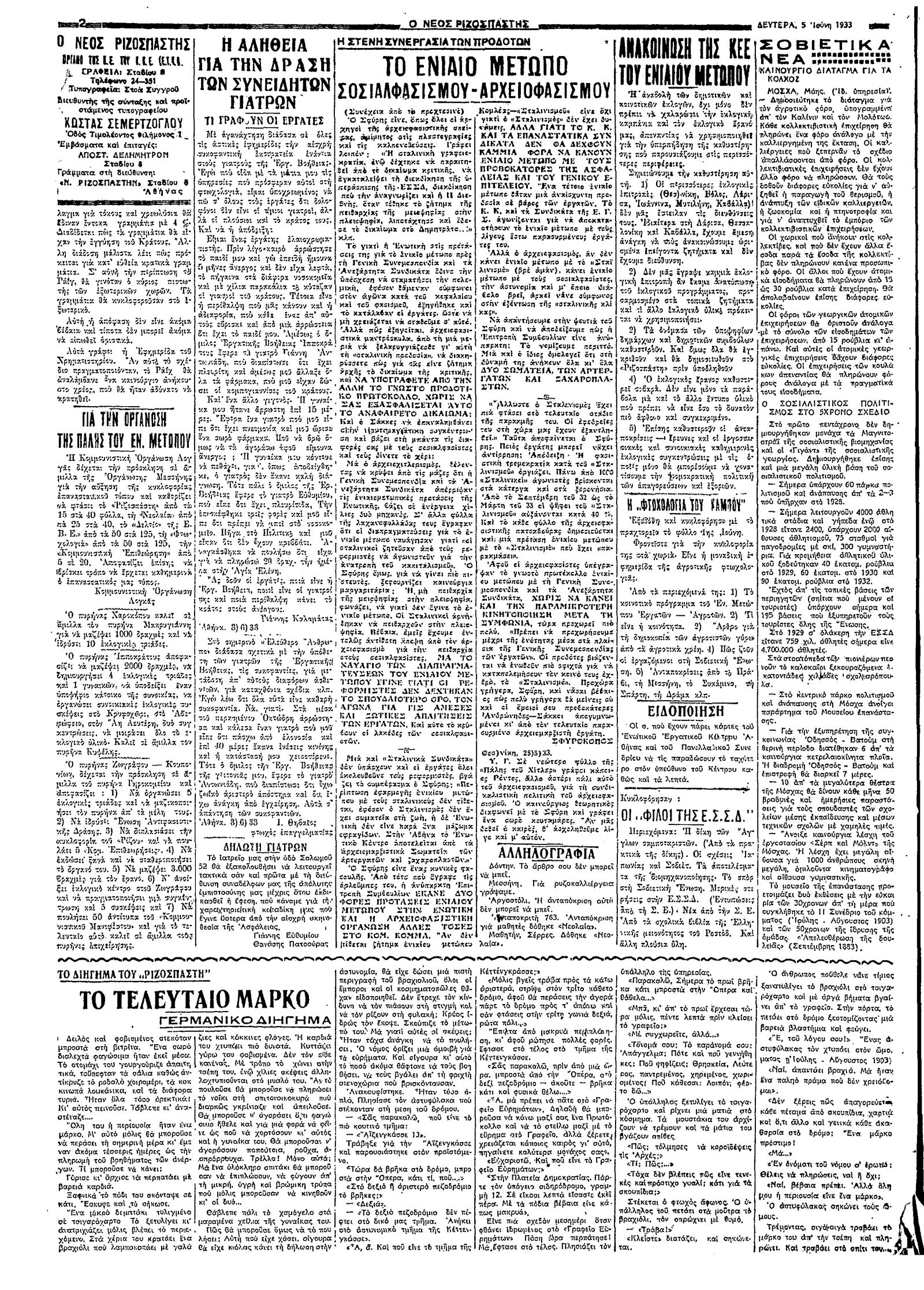 Ριζοσπάστης 05/06/1933