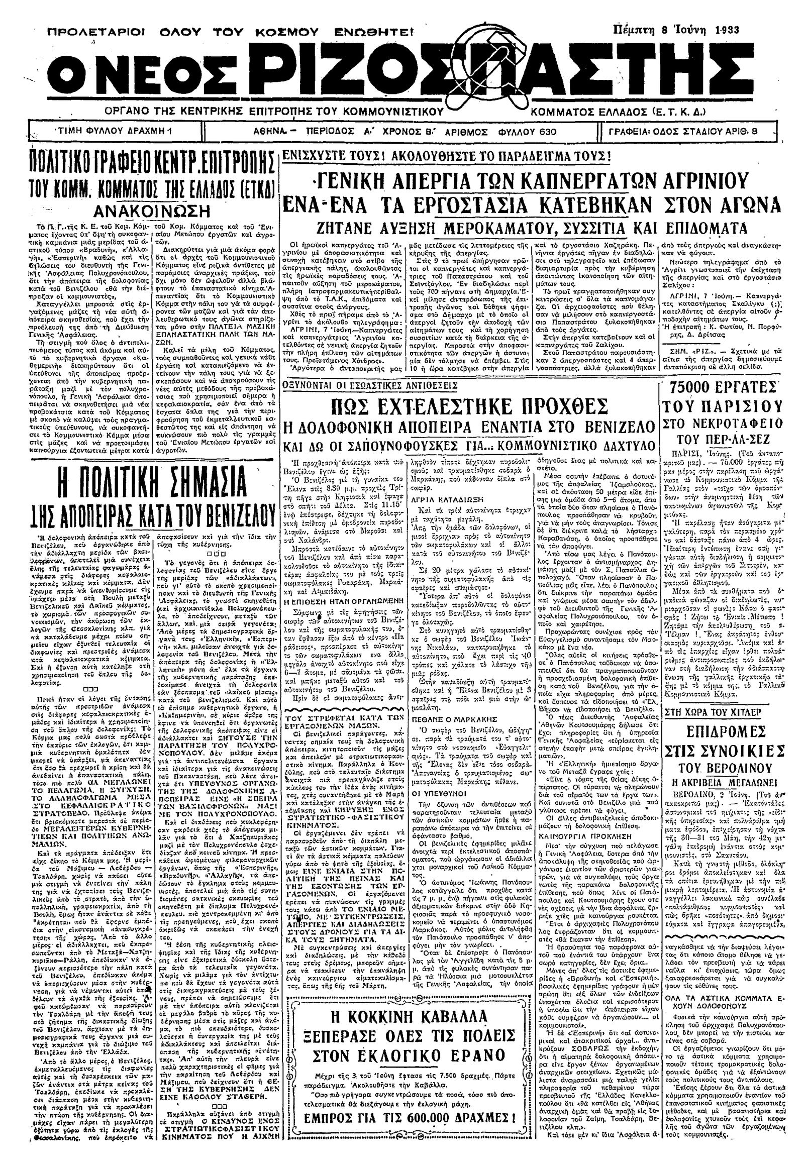 Ριζοσπάστης 08/06/1933