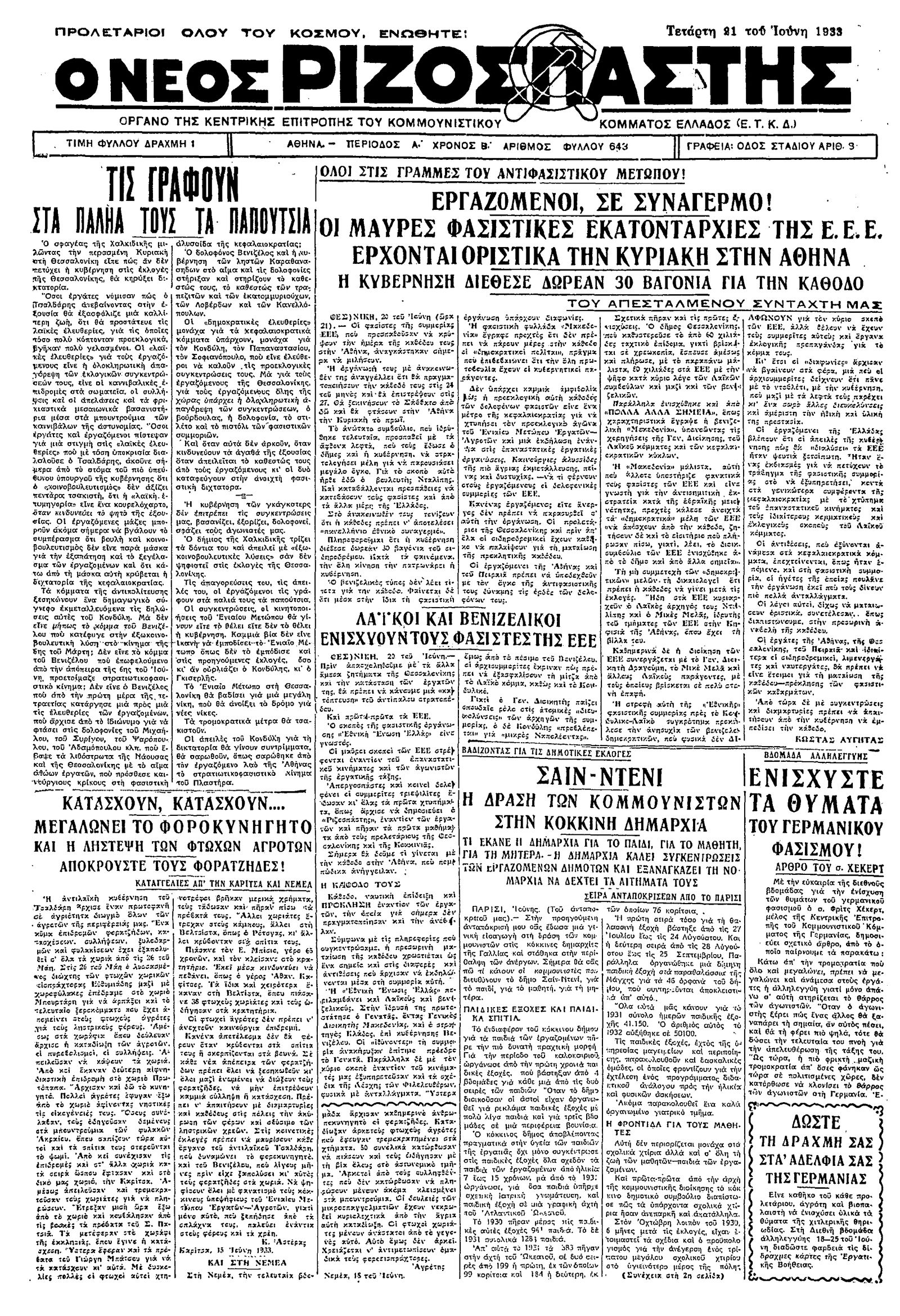 Ριζοσπάστης 21/06/1933