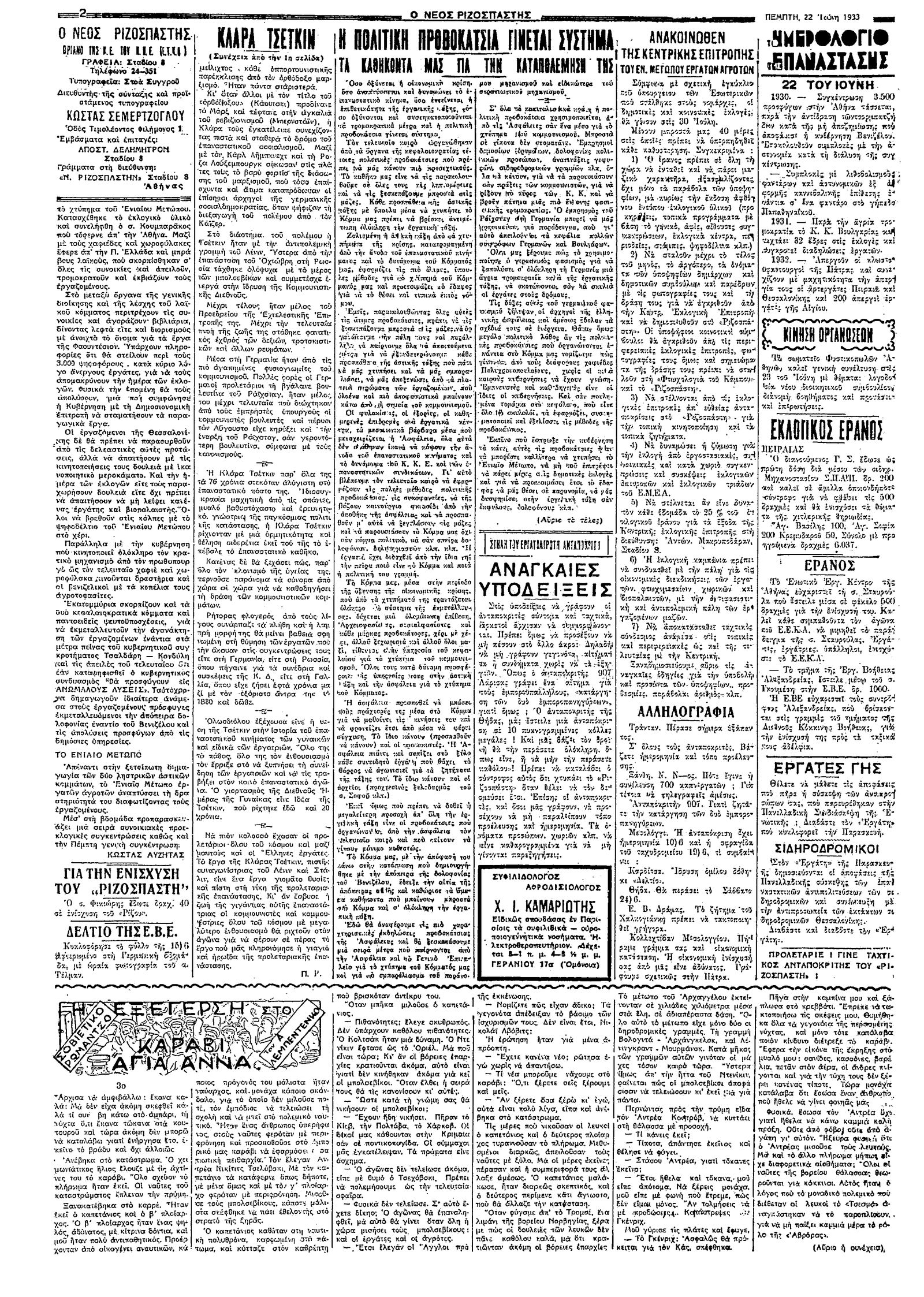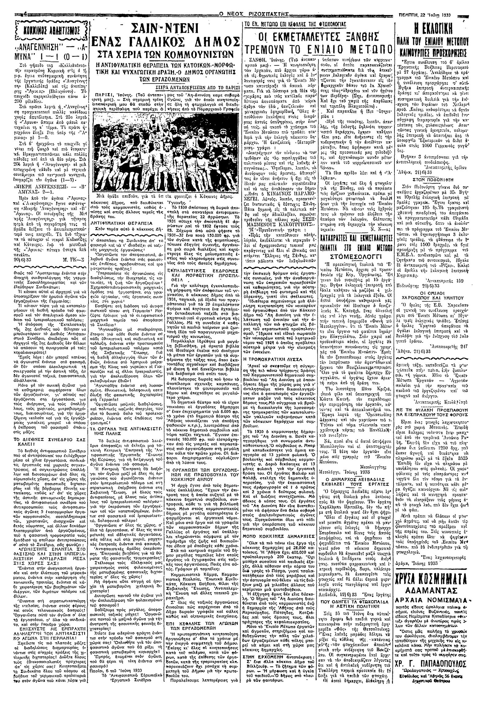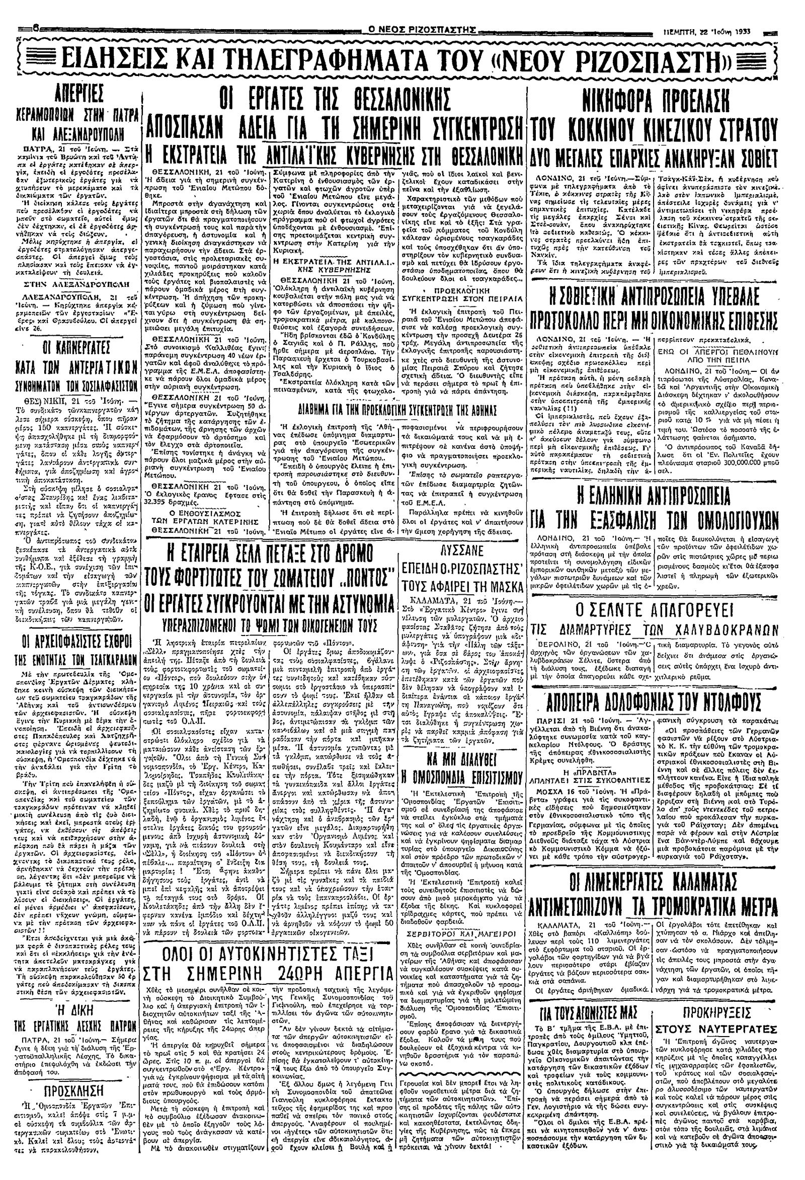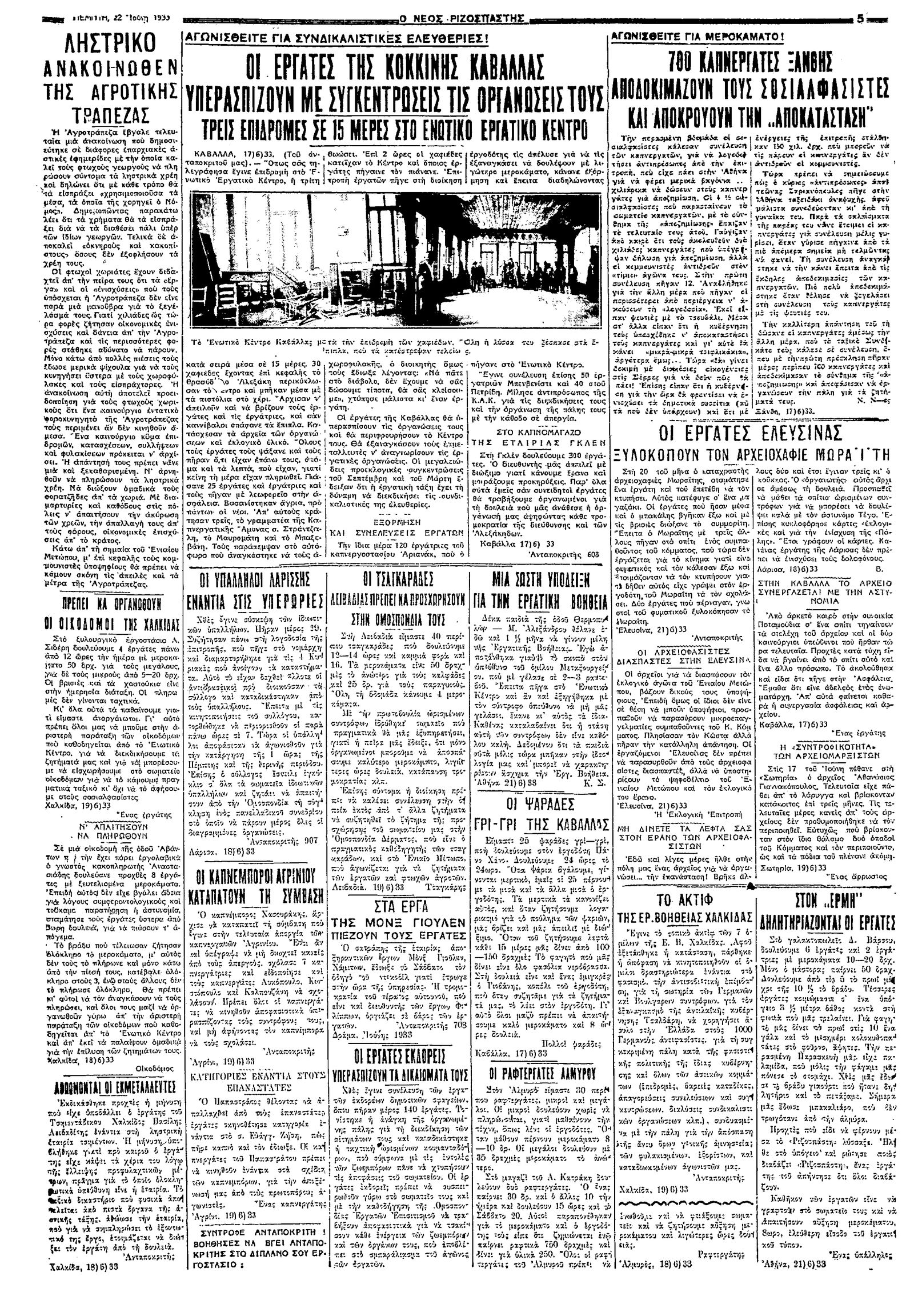 Ριζοσπάστης 22/06/1933