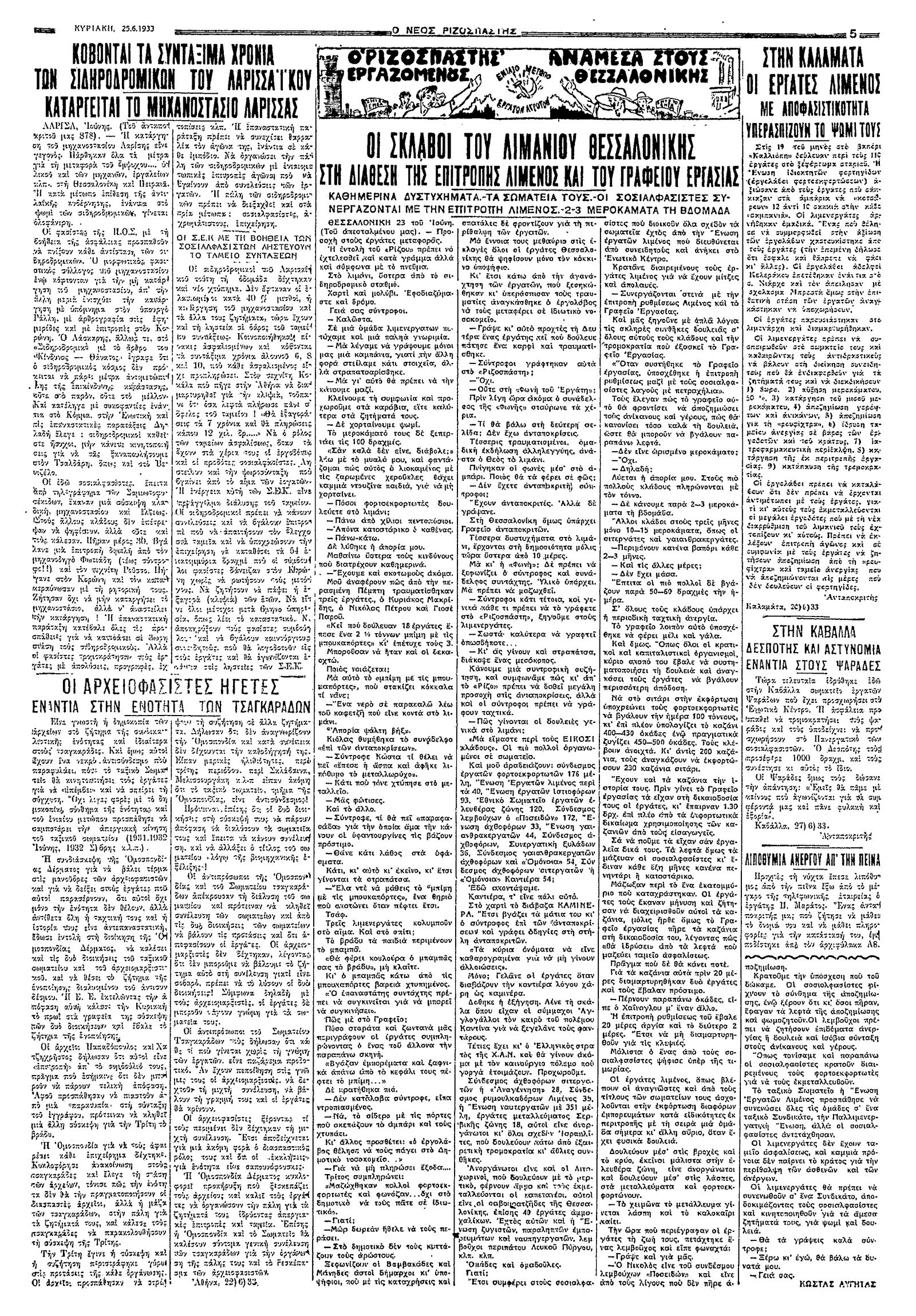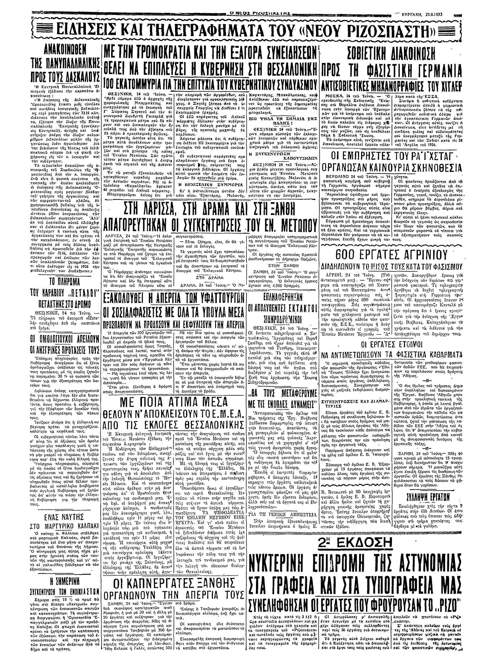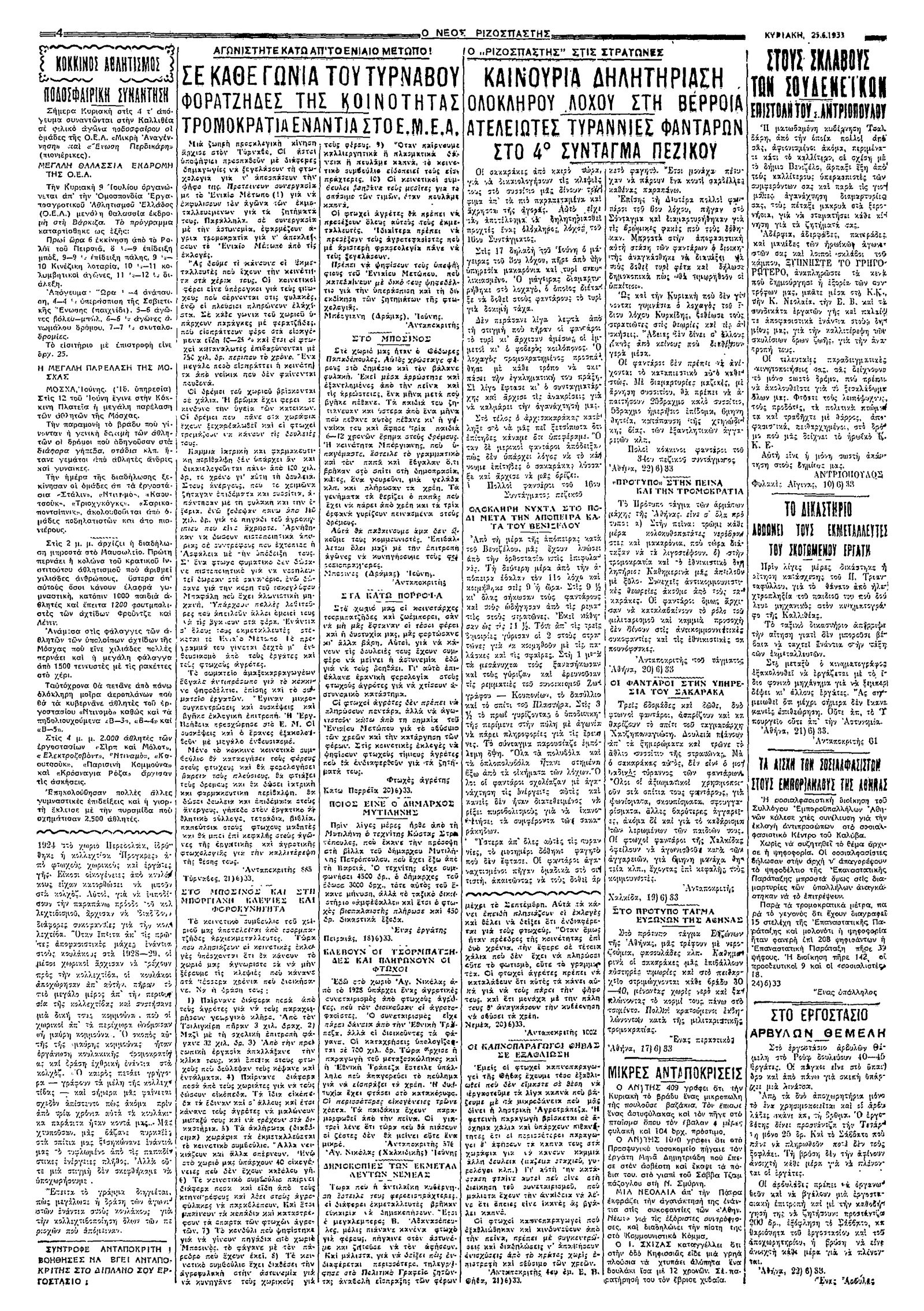 Ριζοσπάστης 25/06/1933