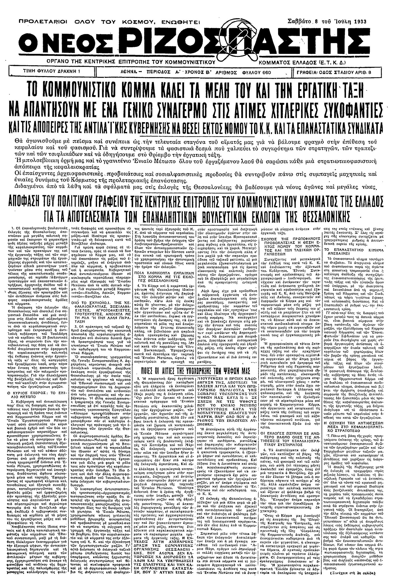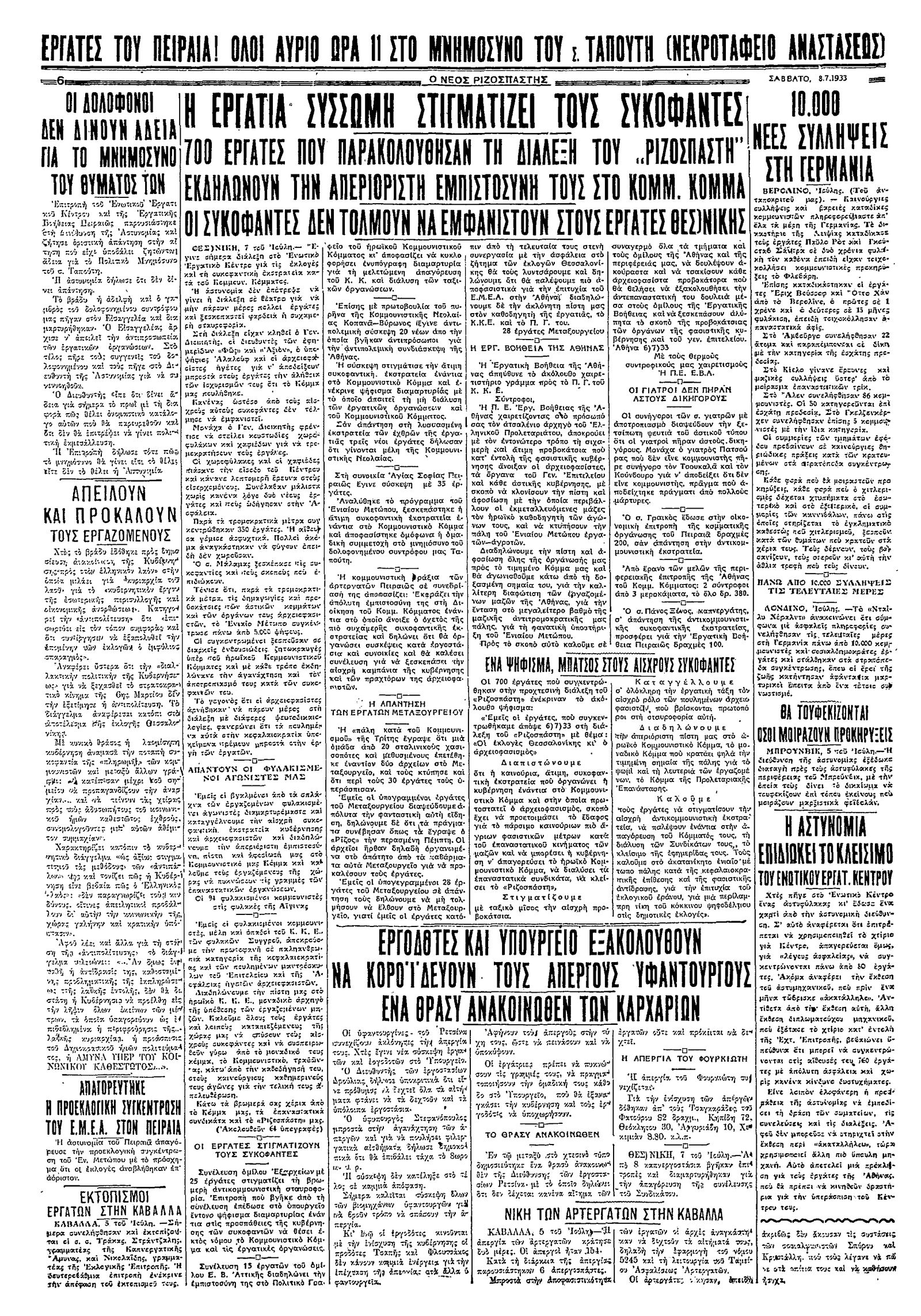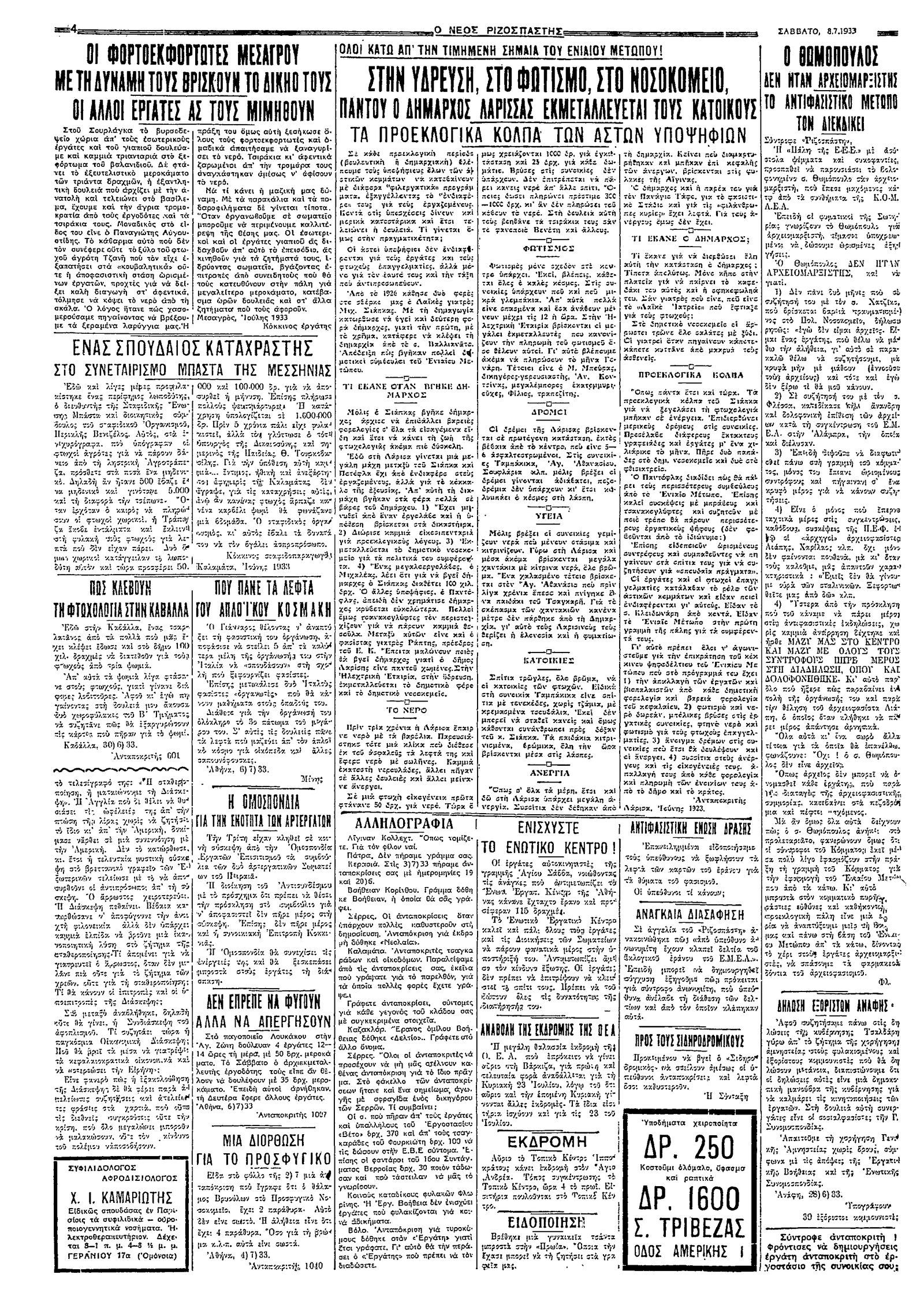 Ριζοσπάστης 08/07/1933