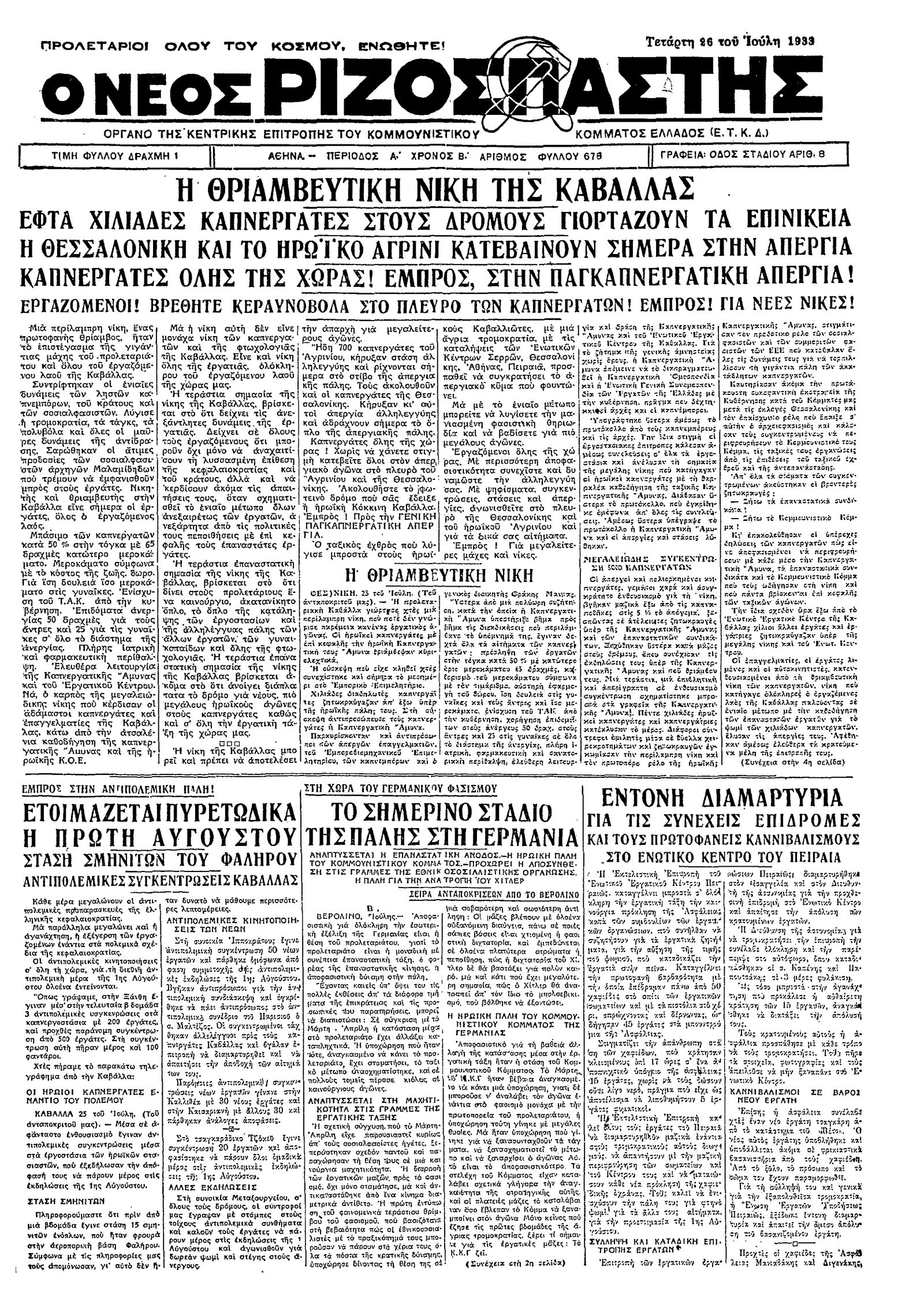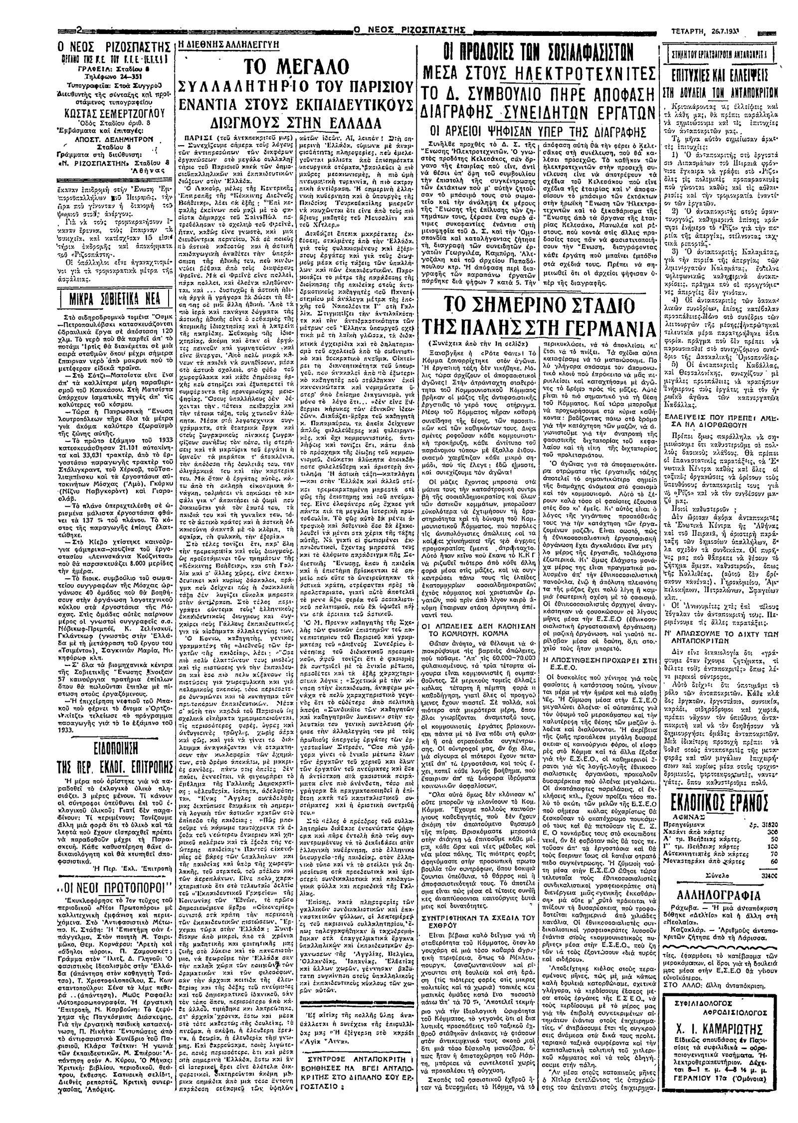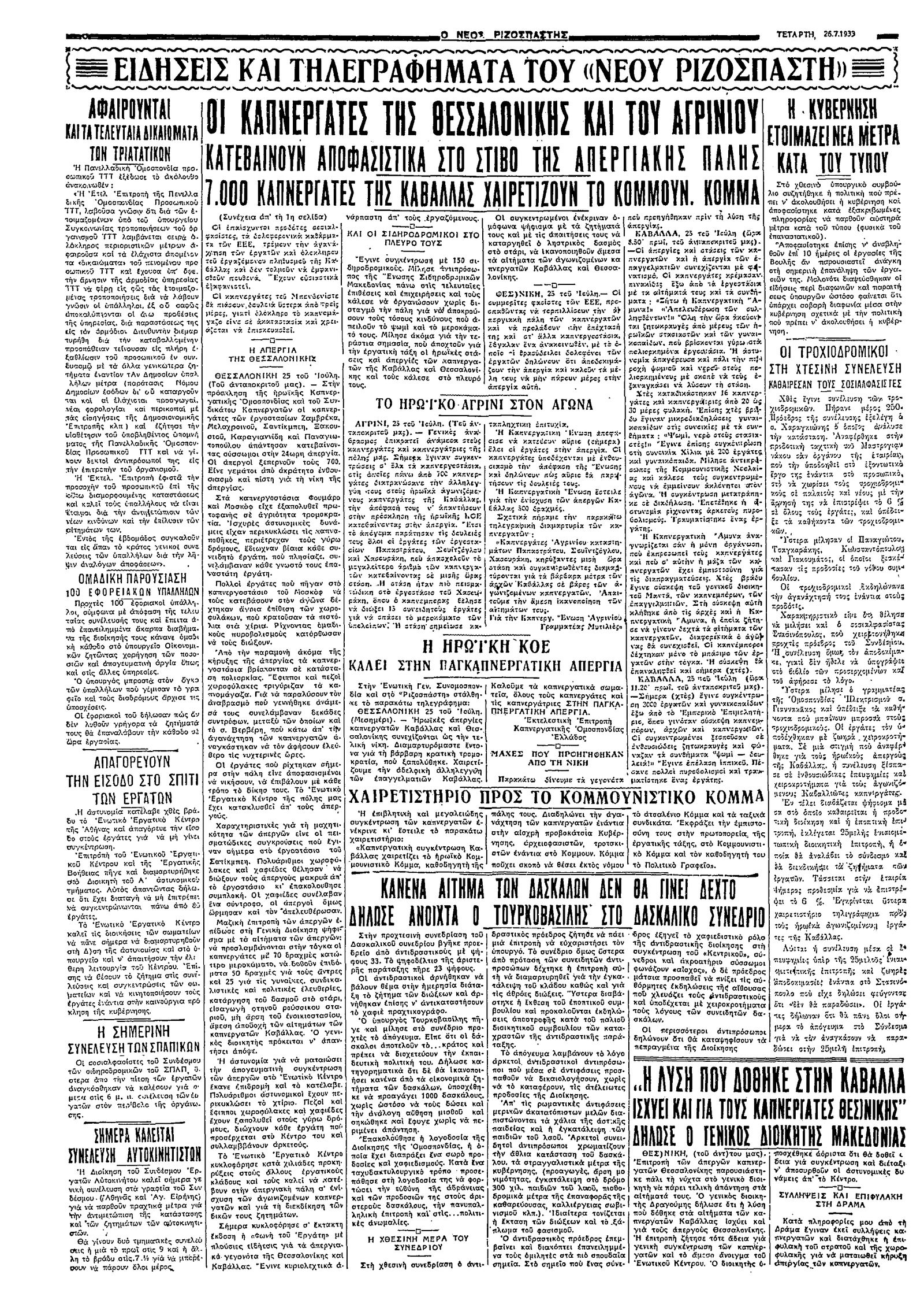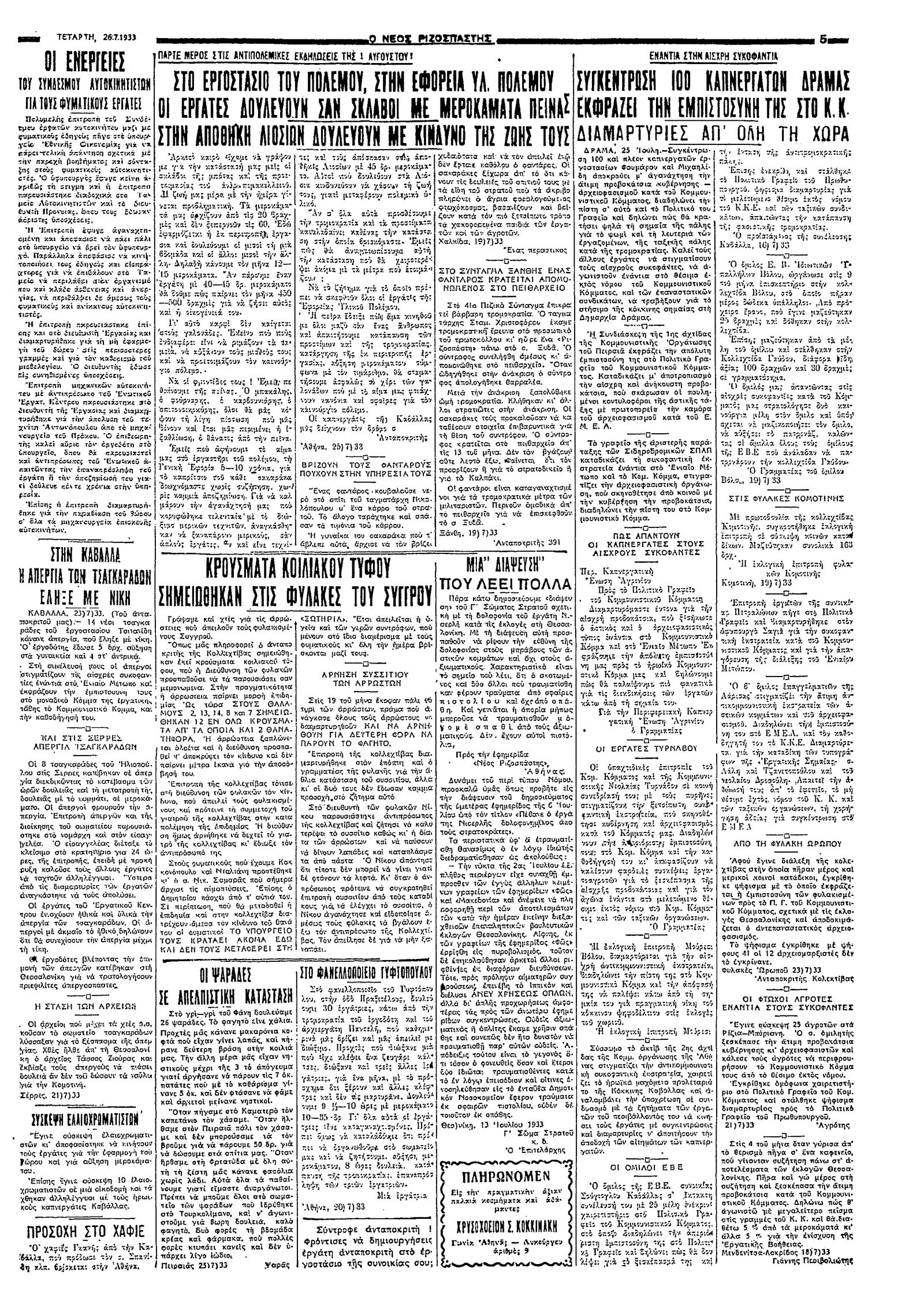 Ριζοσπάστης 26/07/1933