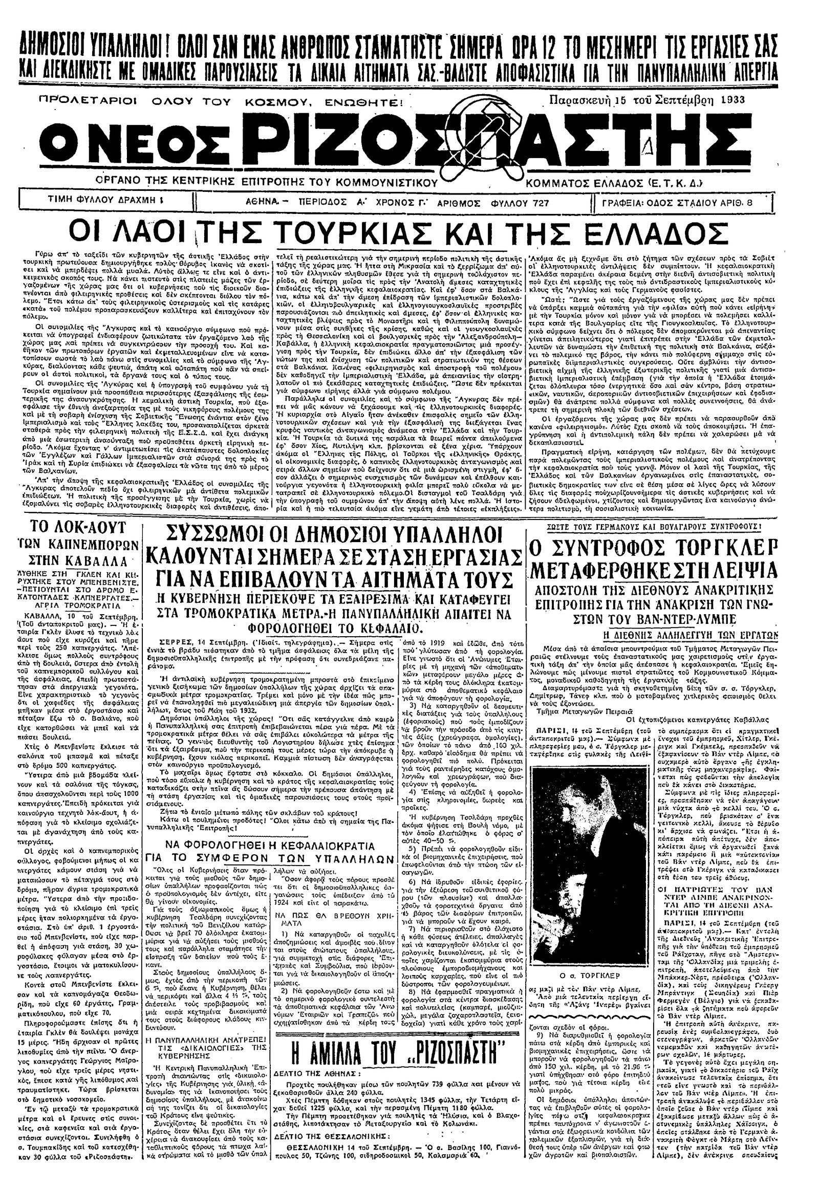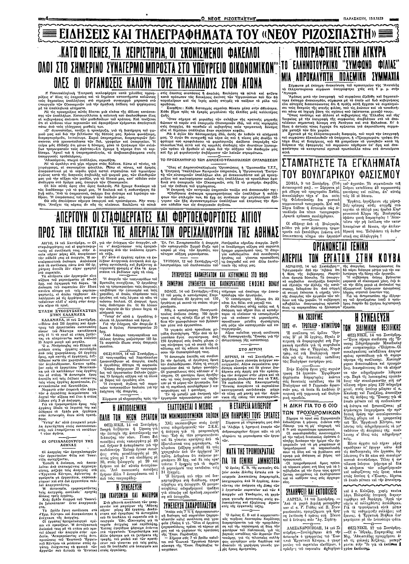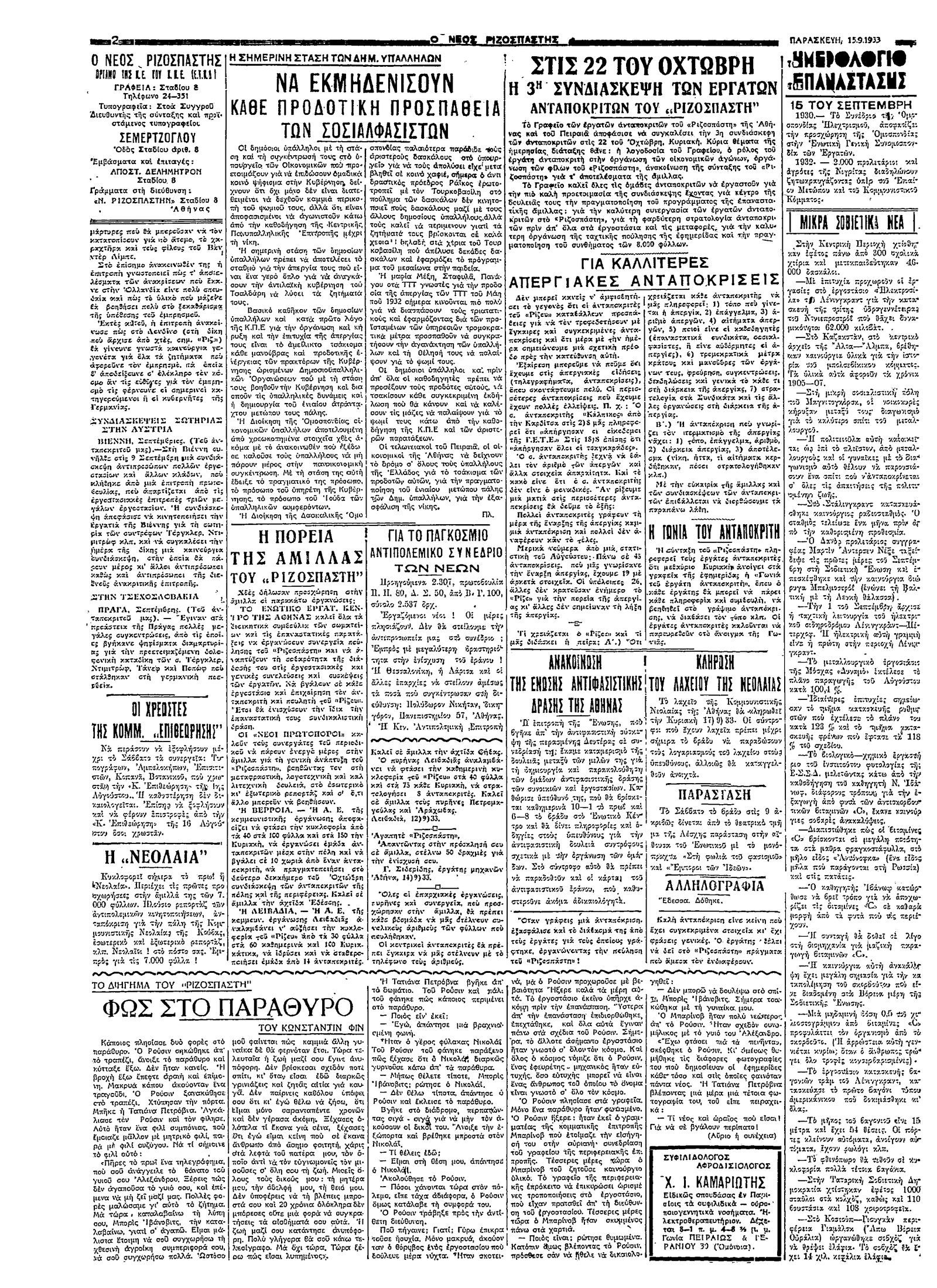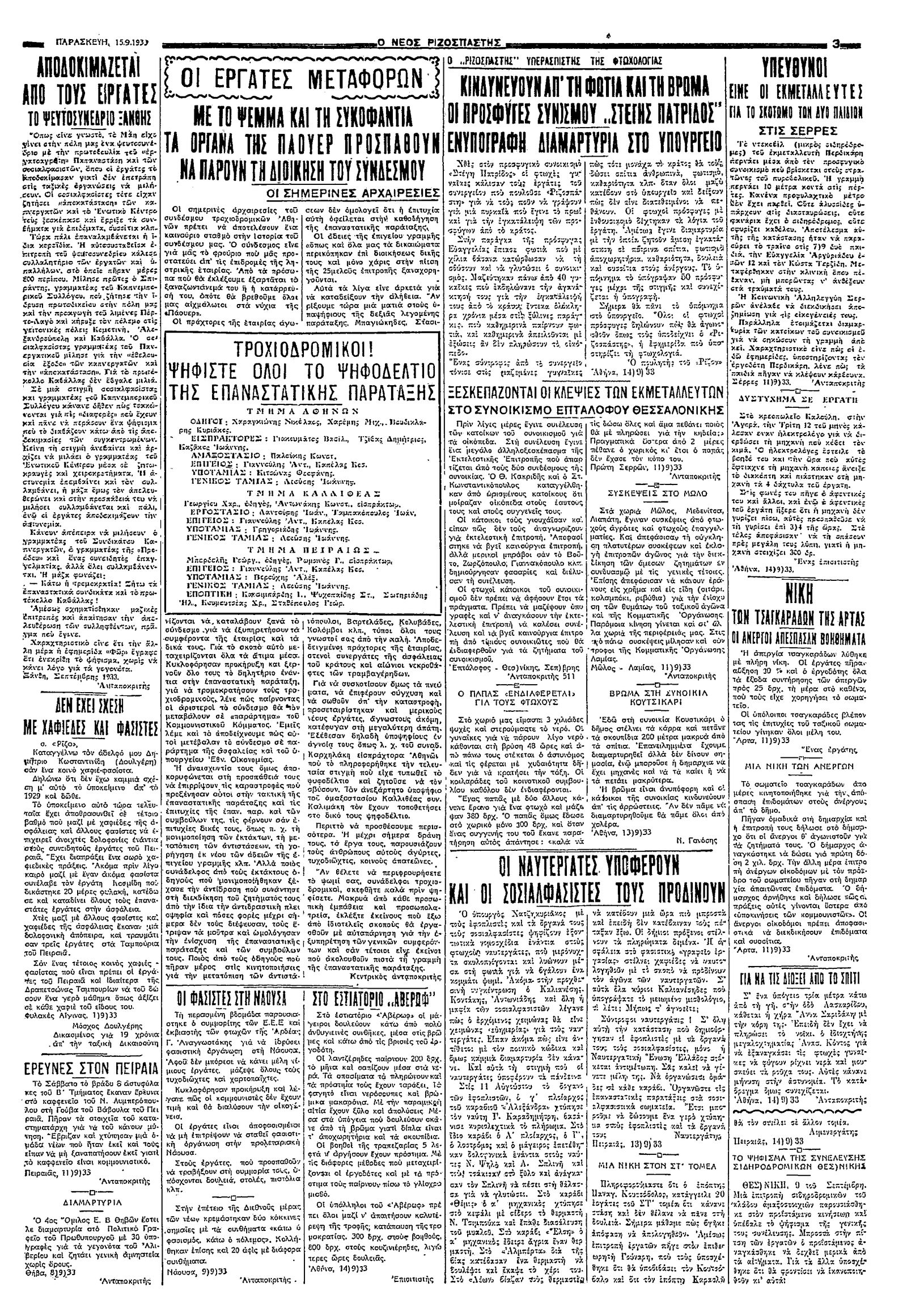 Ριζοσπάστης 15/09/1933