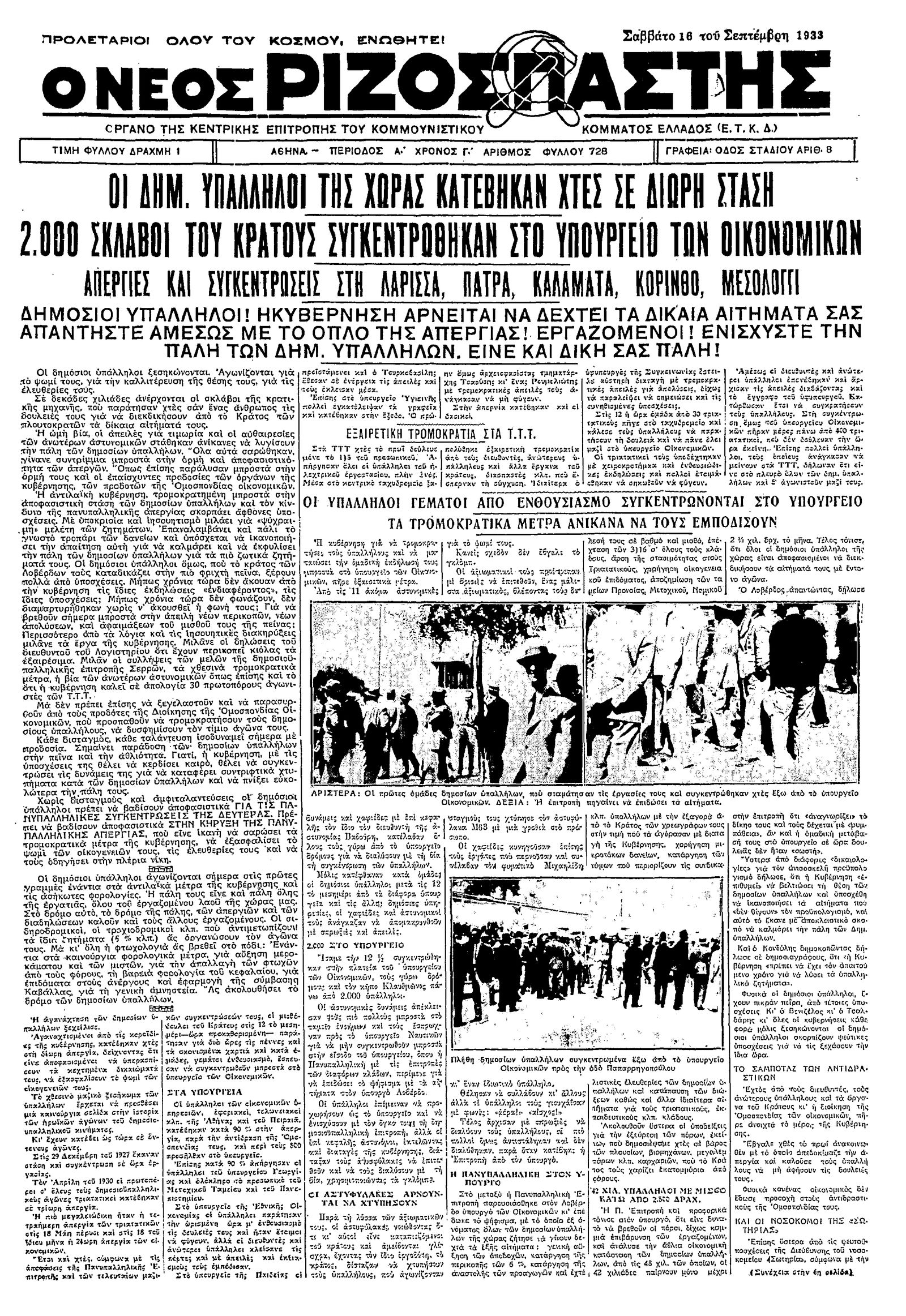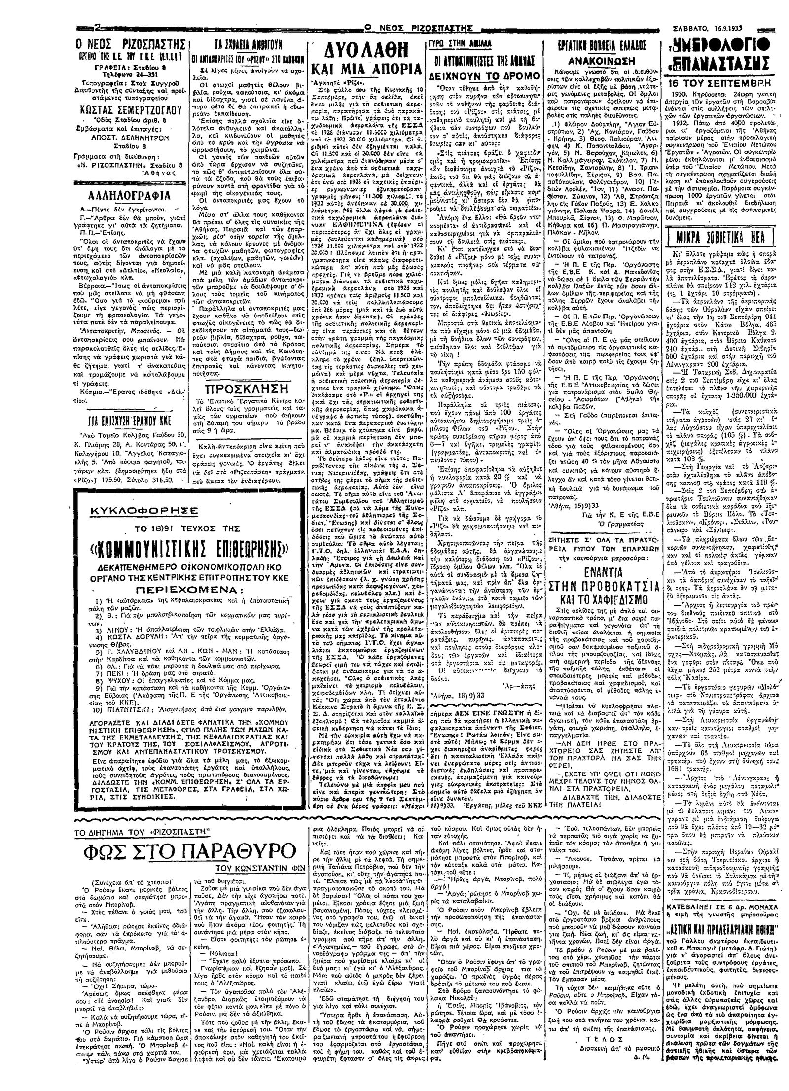 Ριζοσπάστης 16/09/1933