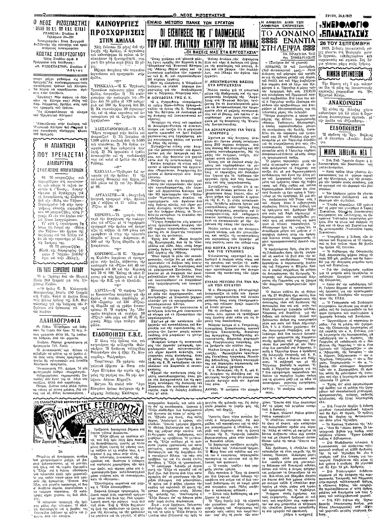 Ριζοσπάστης 26/09/1933