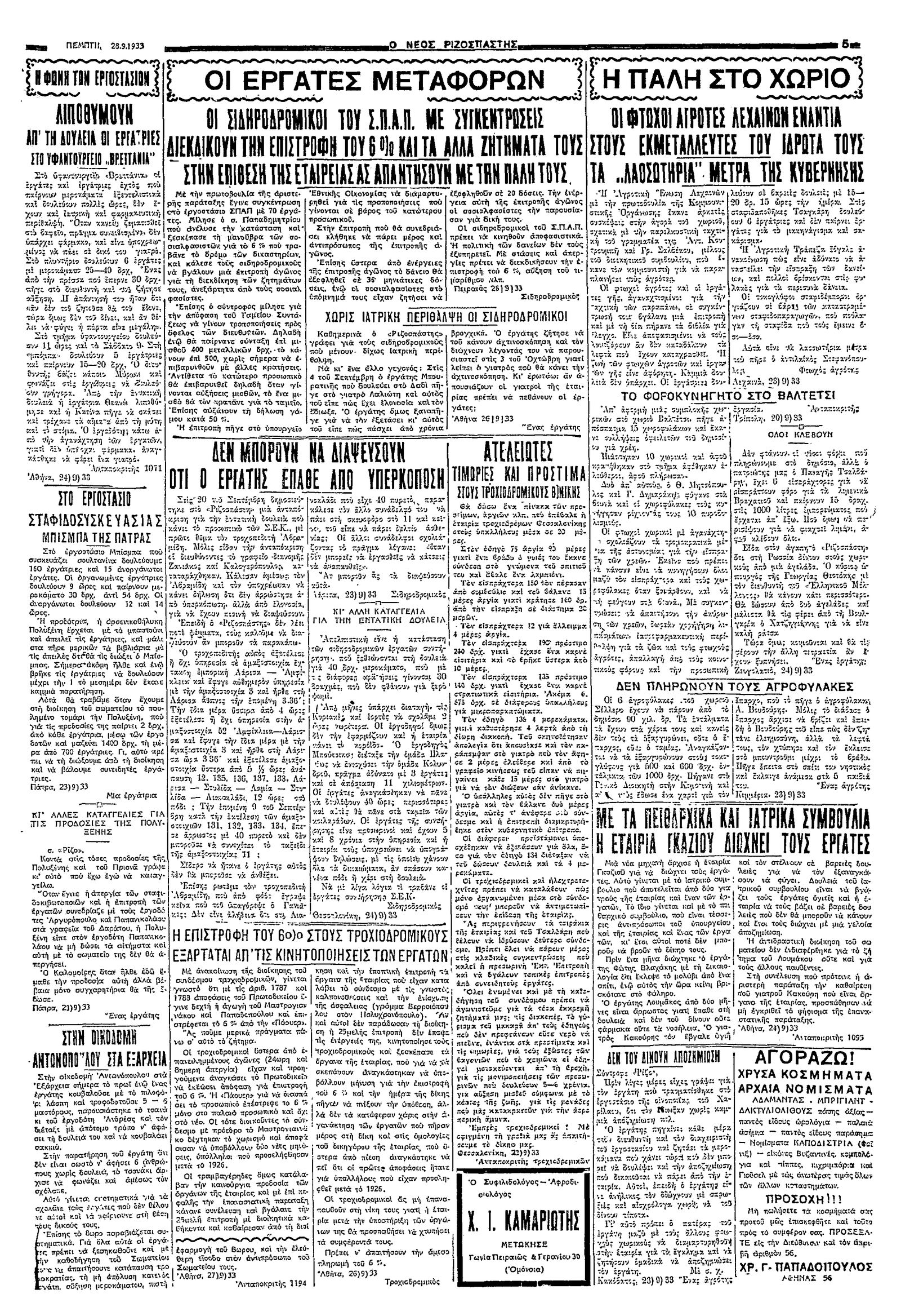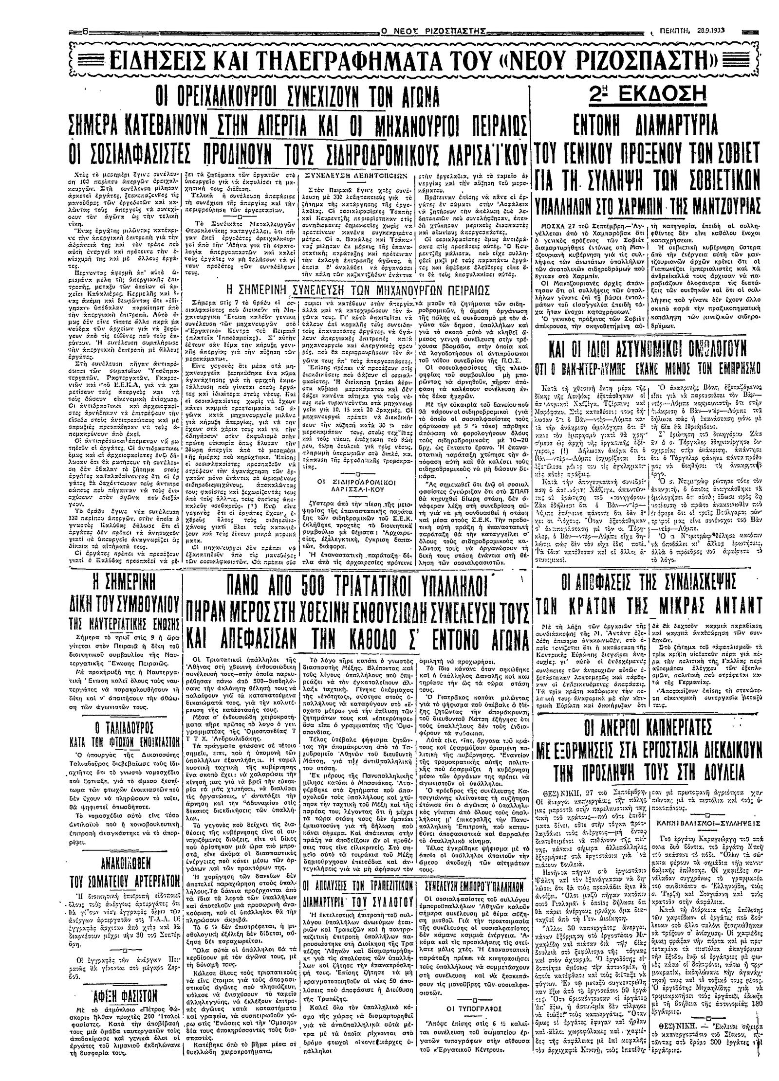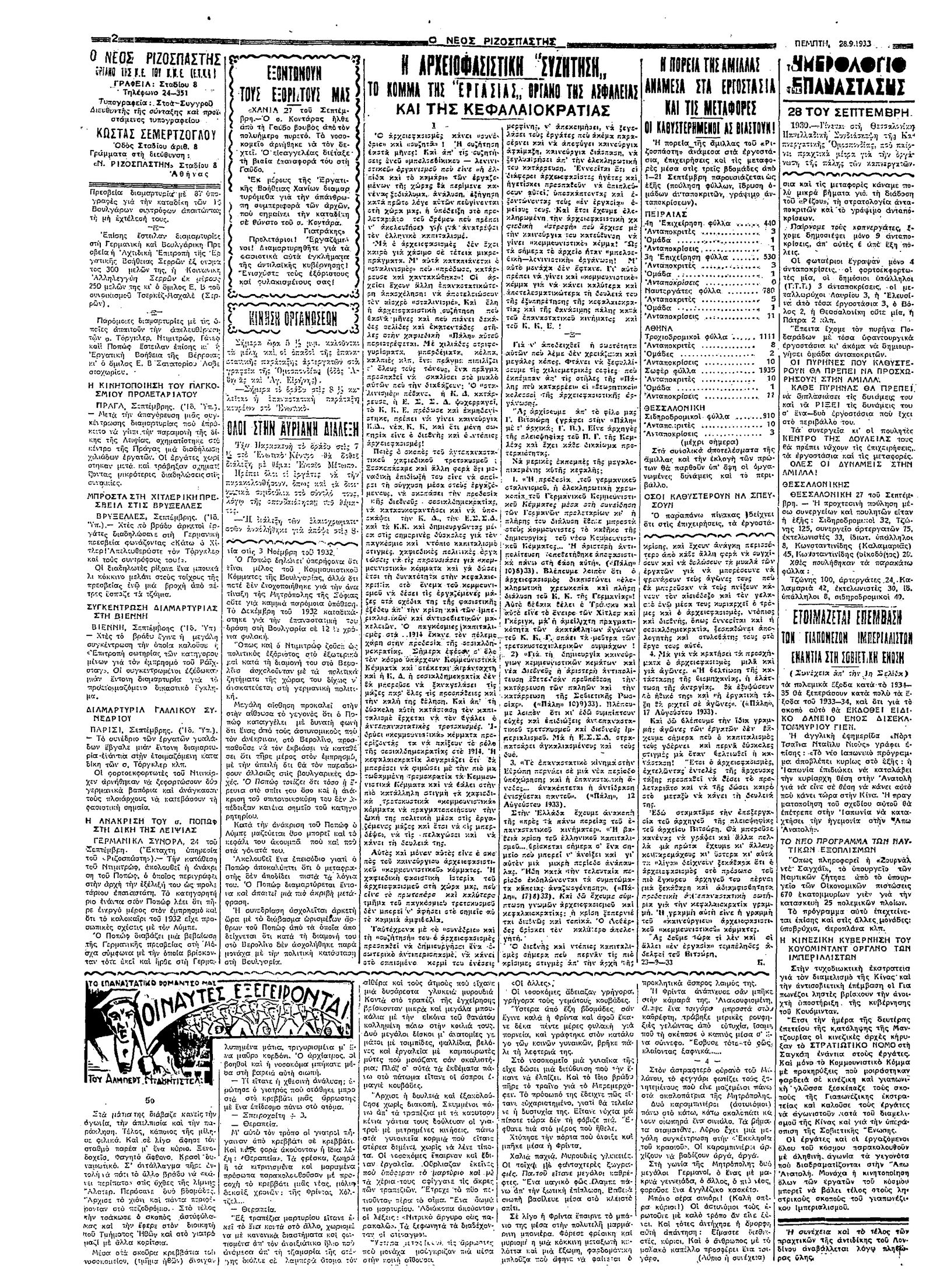 Ριζοσπάστης 28/09/1933
