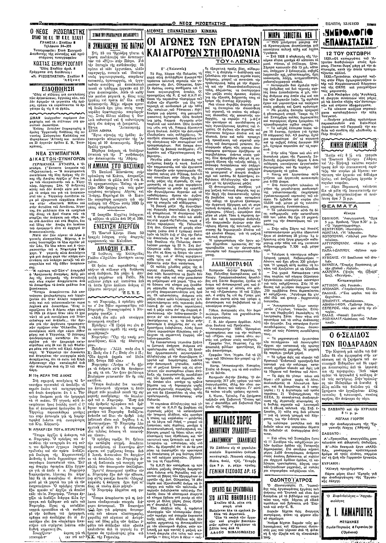 Ριζοσπάστης 12/10/1933