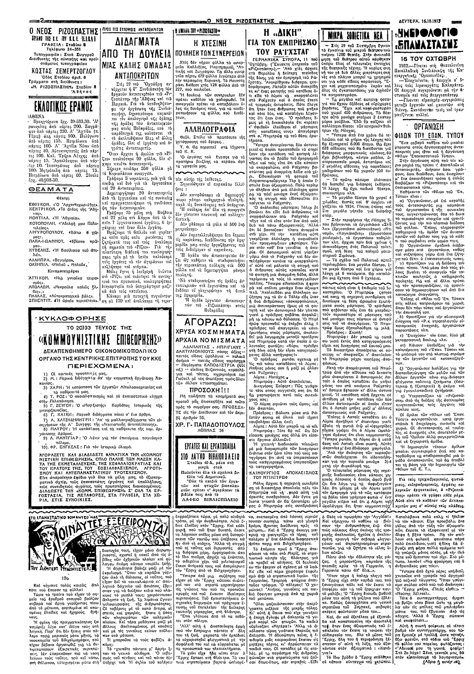 Ριζοσπάστης 16/10/1933