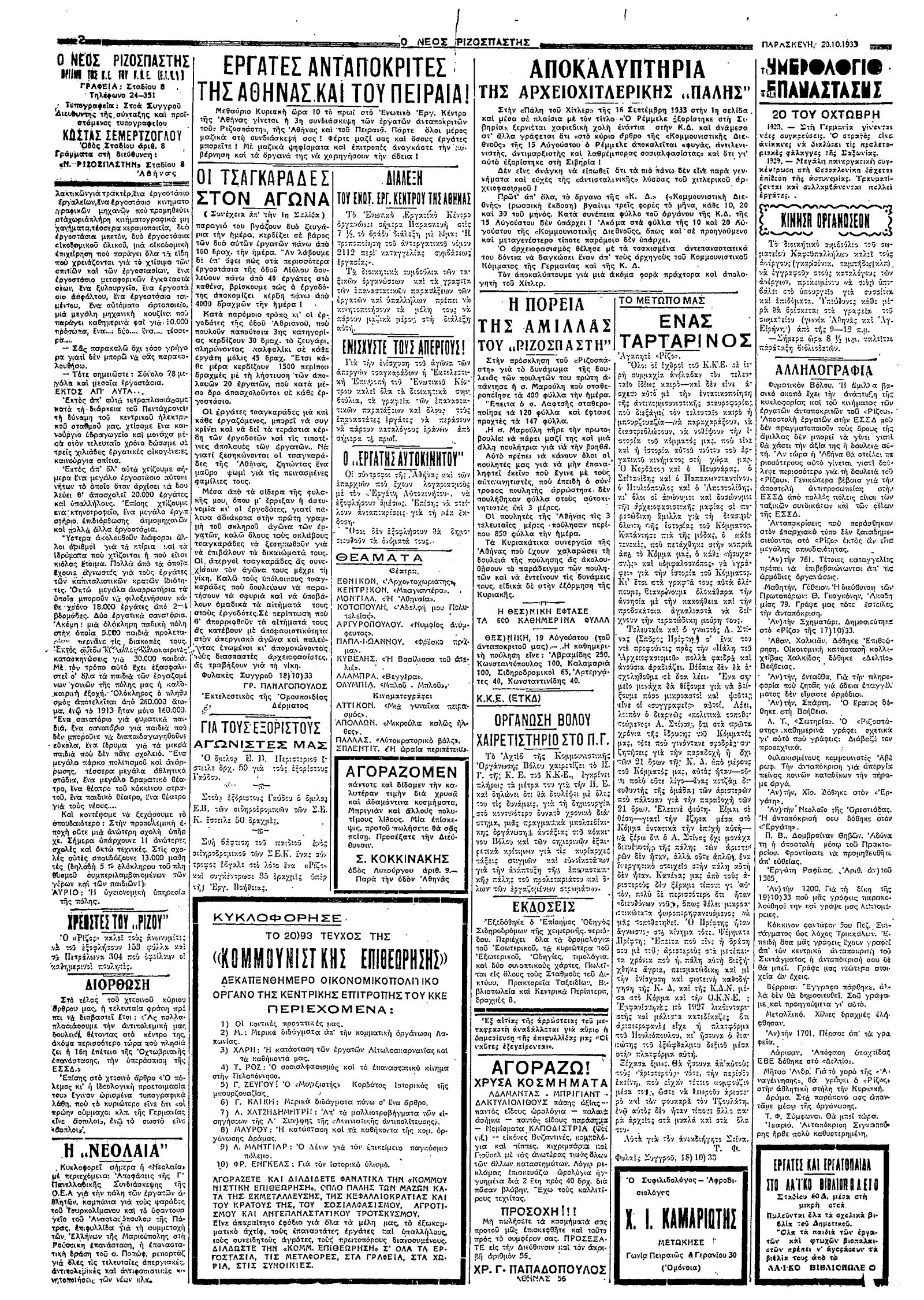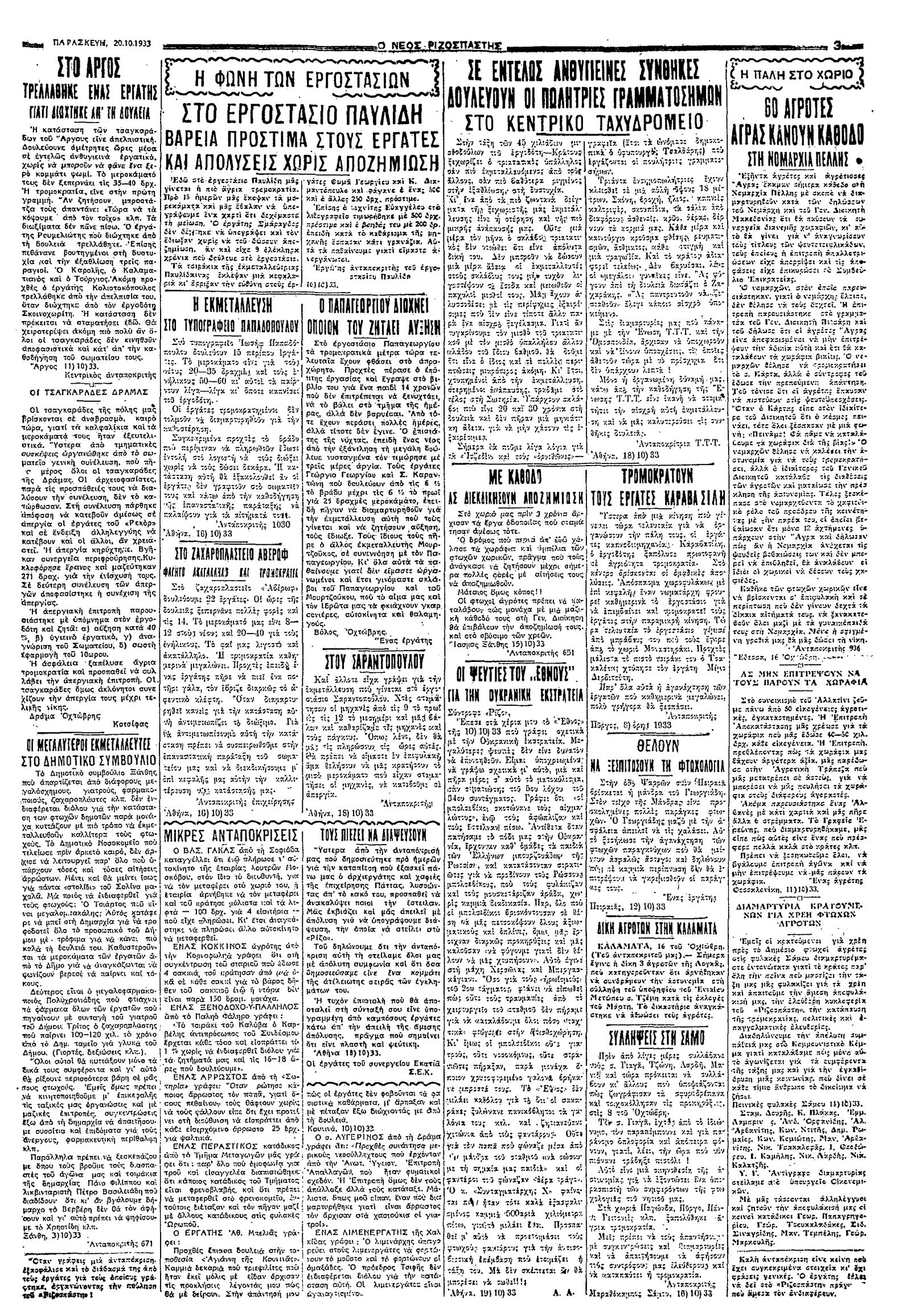 Ριζοσπάστης 20/10/1933