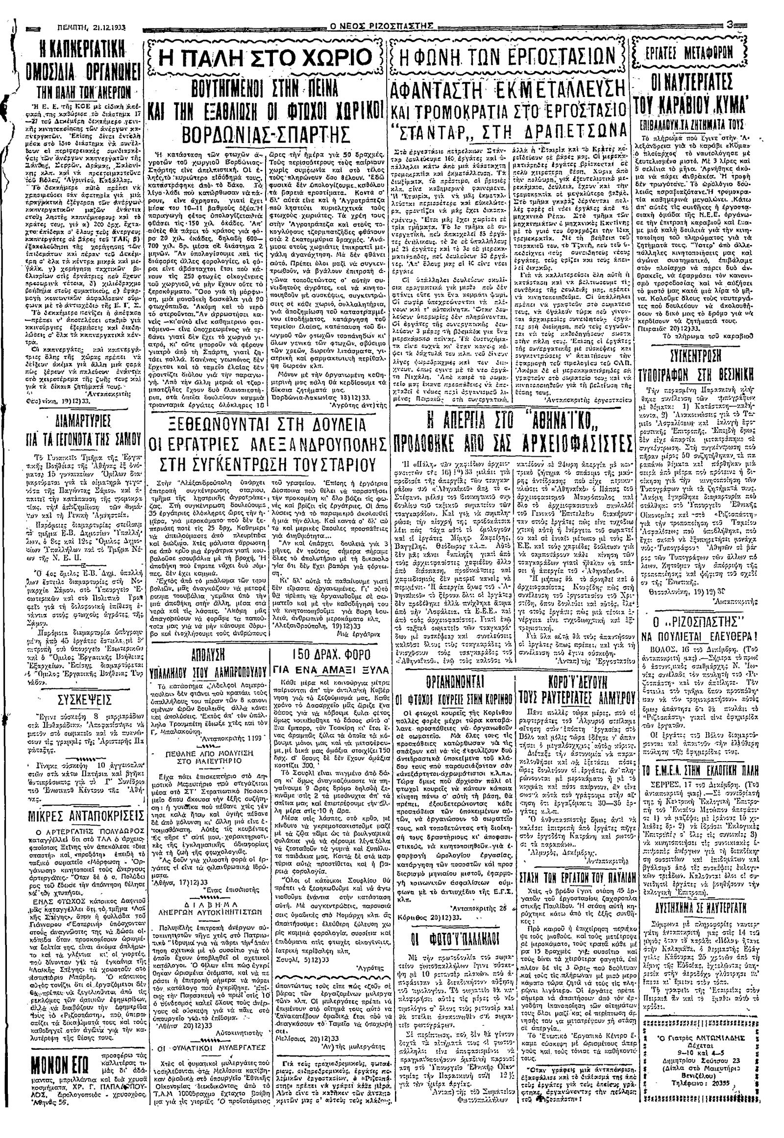 Ριζοσπάστης 21/12/1933