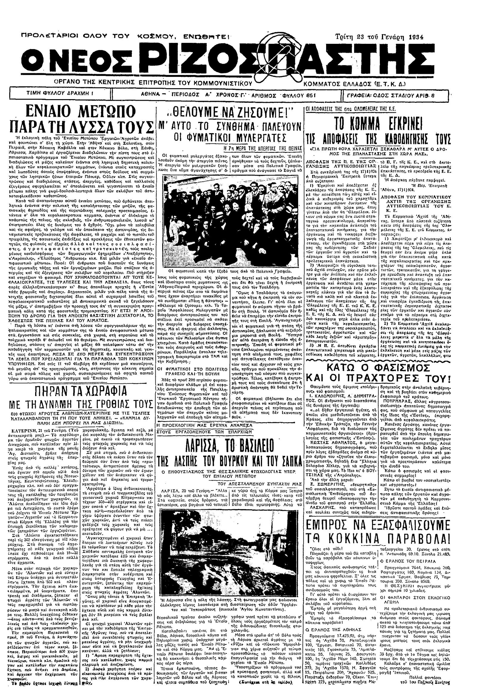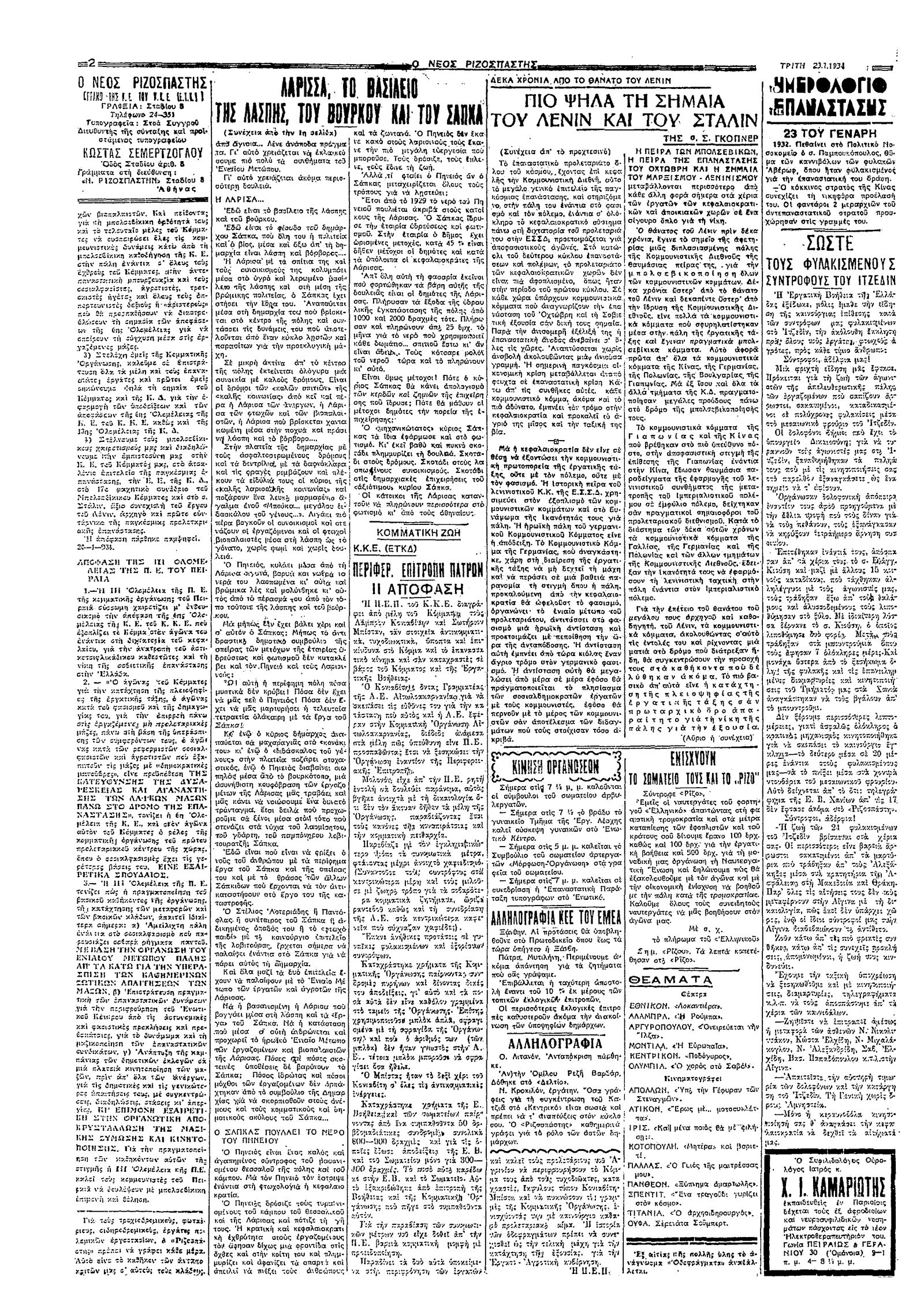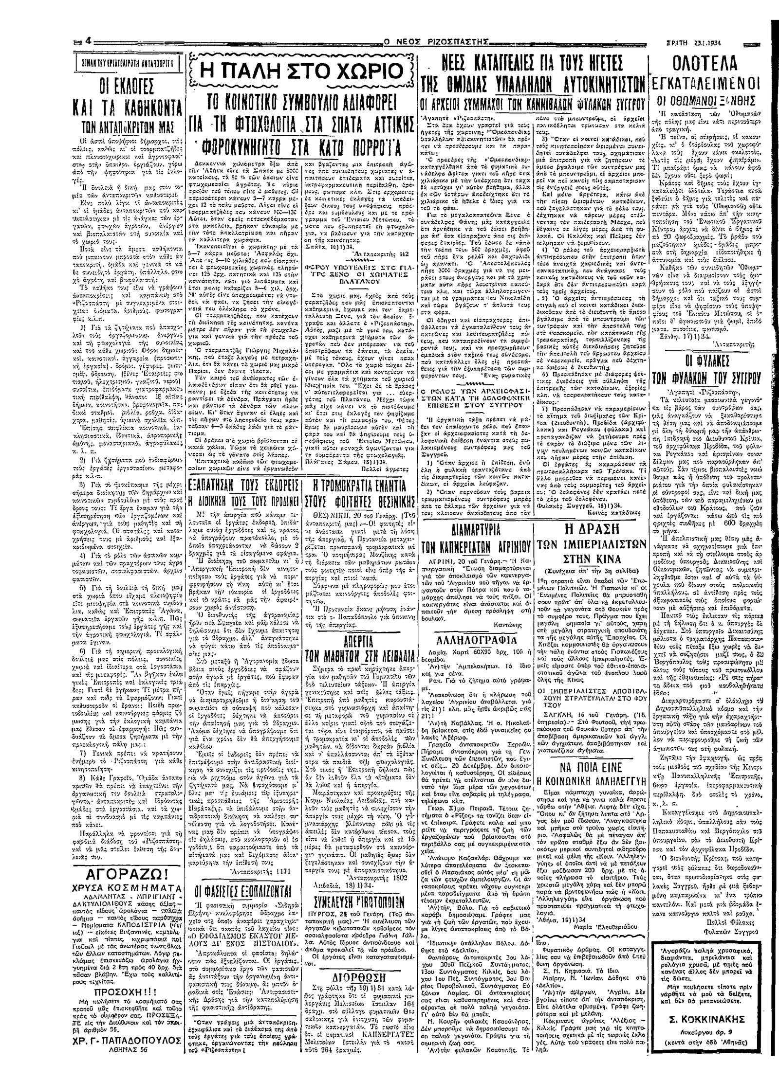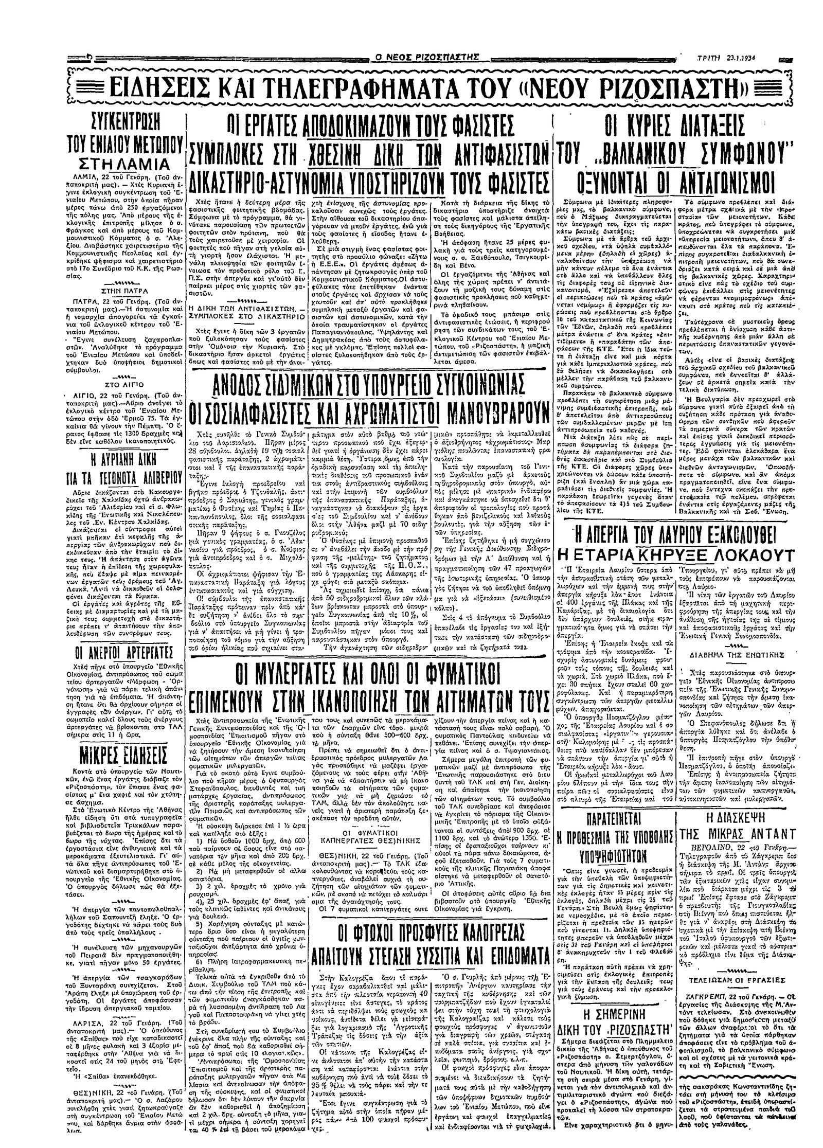 Ριζοσπάστης 23/01/1934