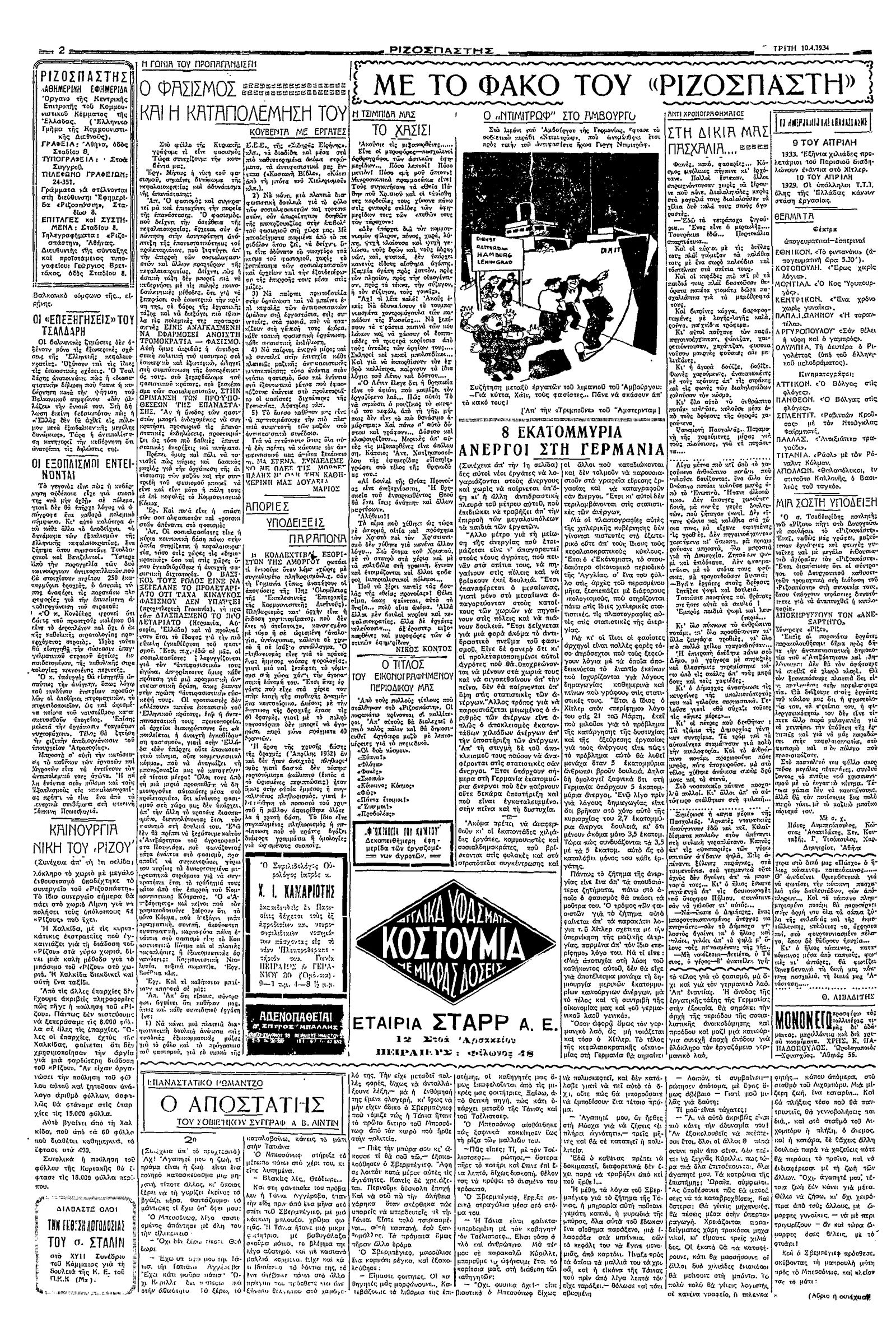 Ριζοσπάστης 10/04/1934