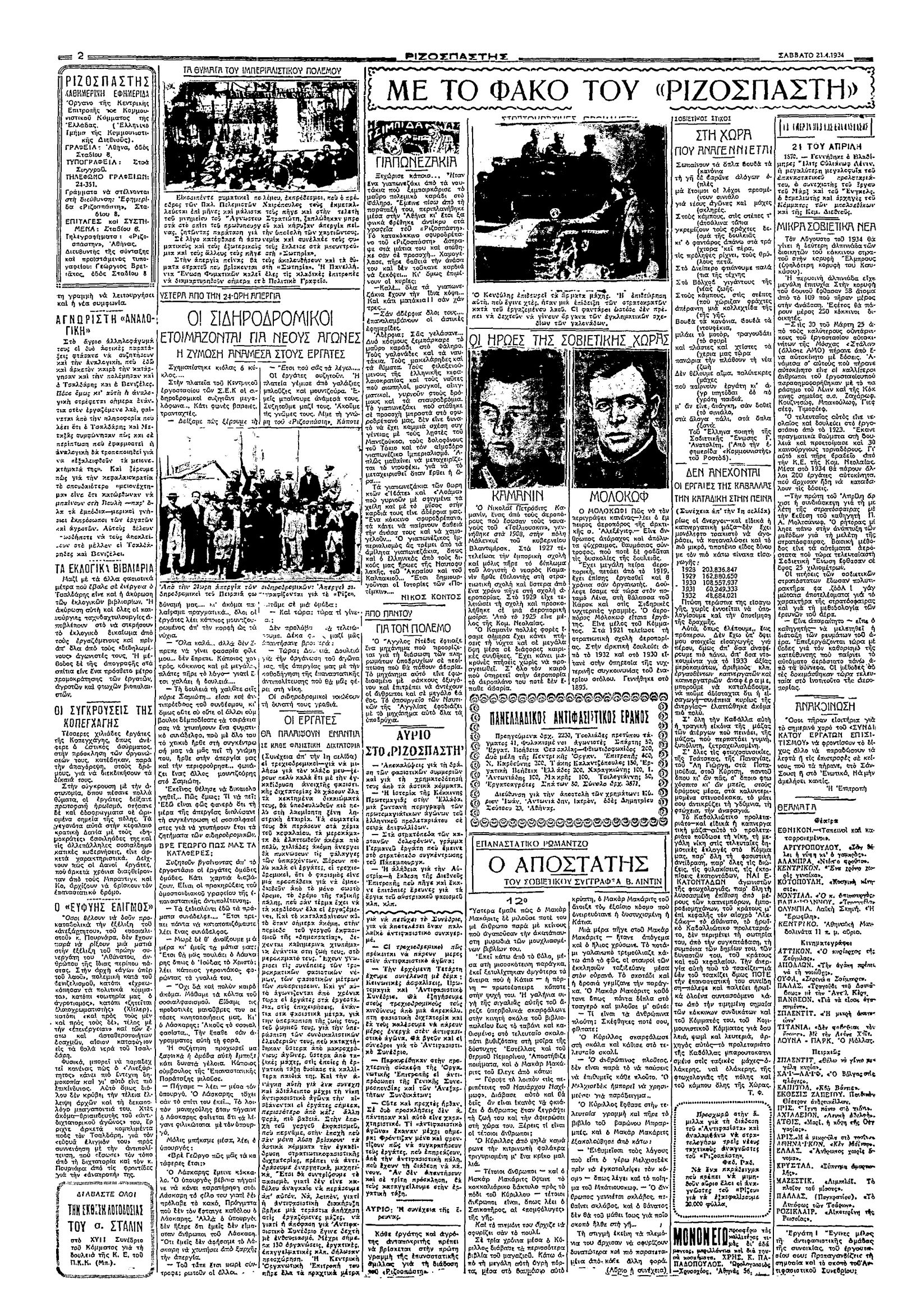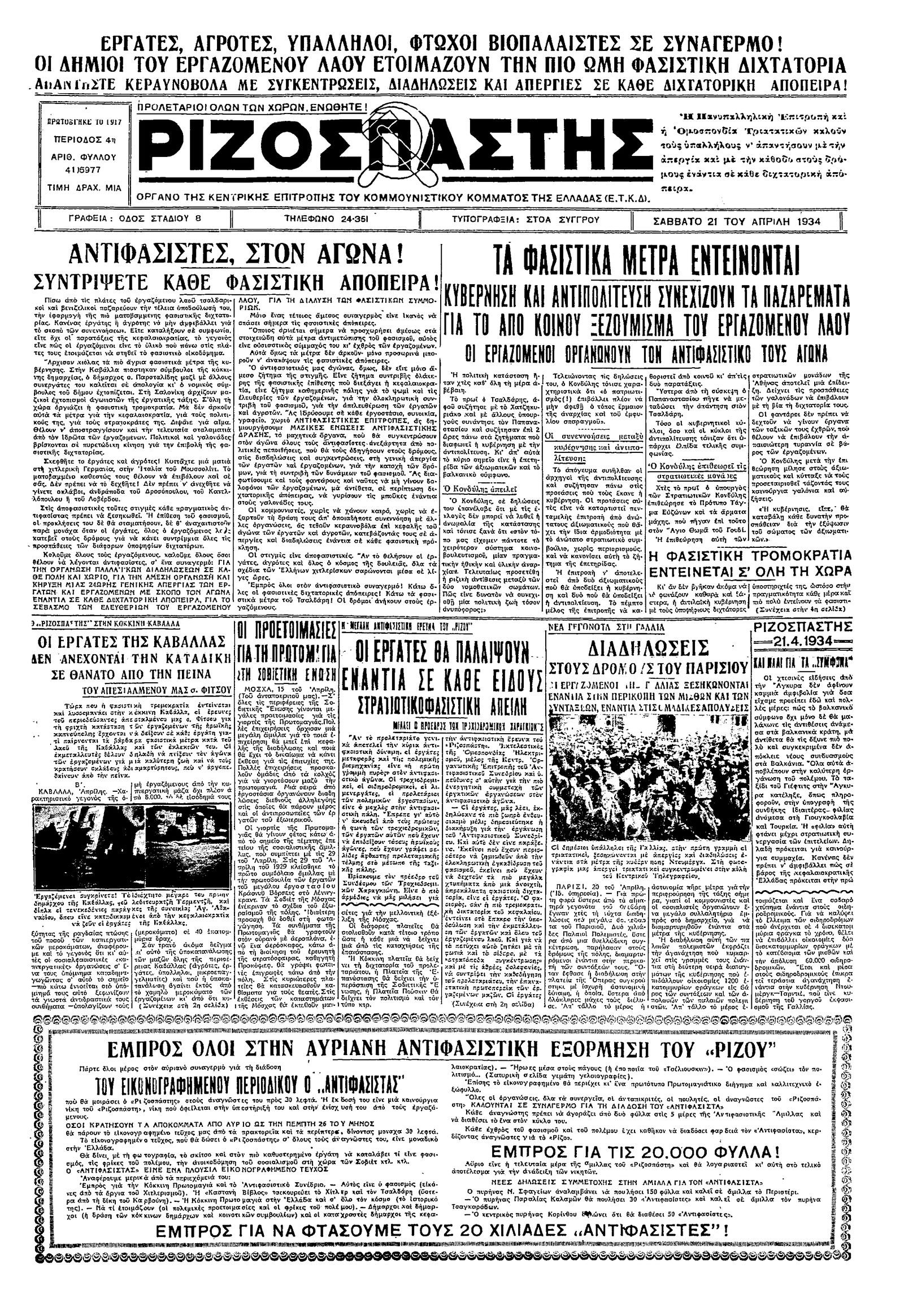 Ριζοσπάστης 21/04/1934