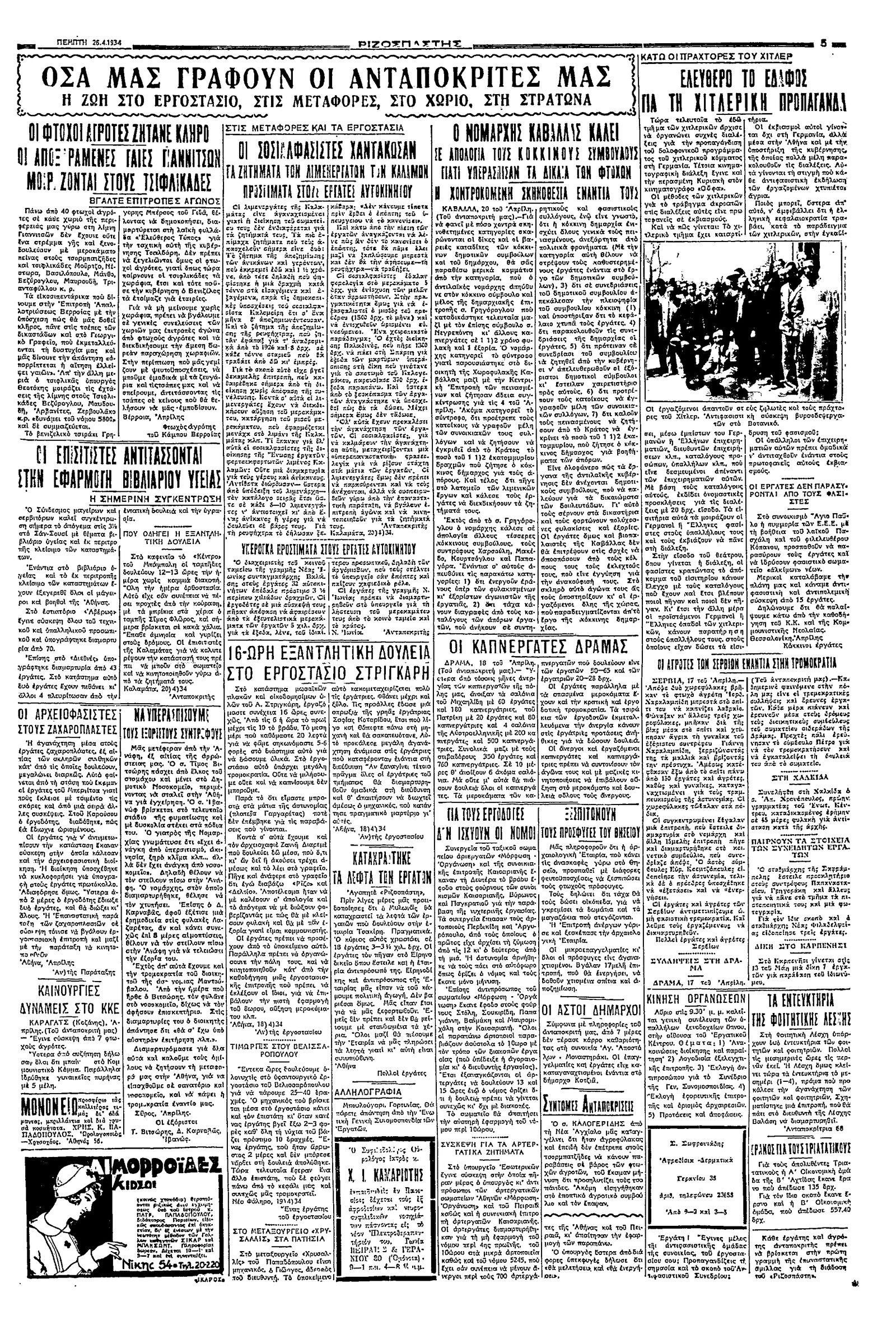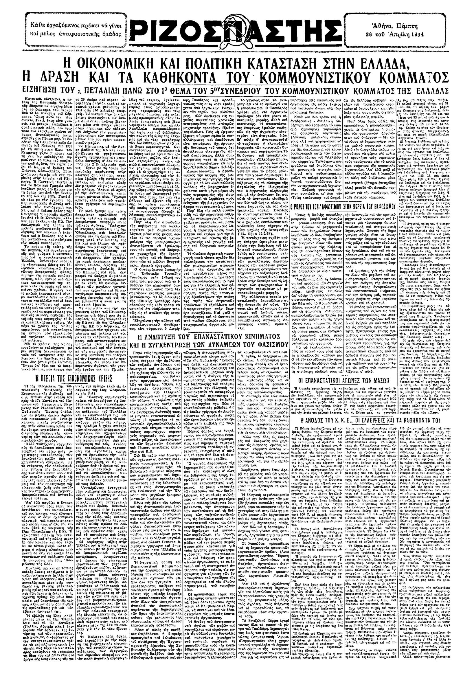 Ριζοσπάστης 26/04/1934