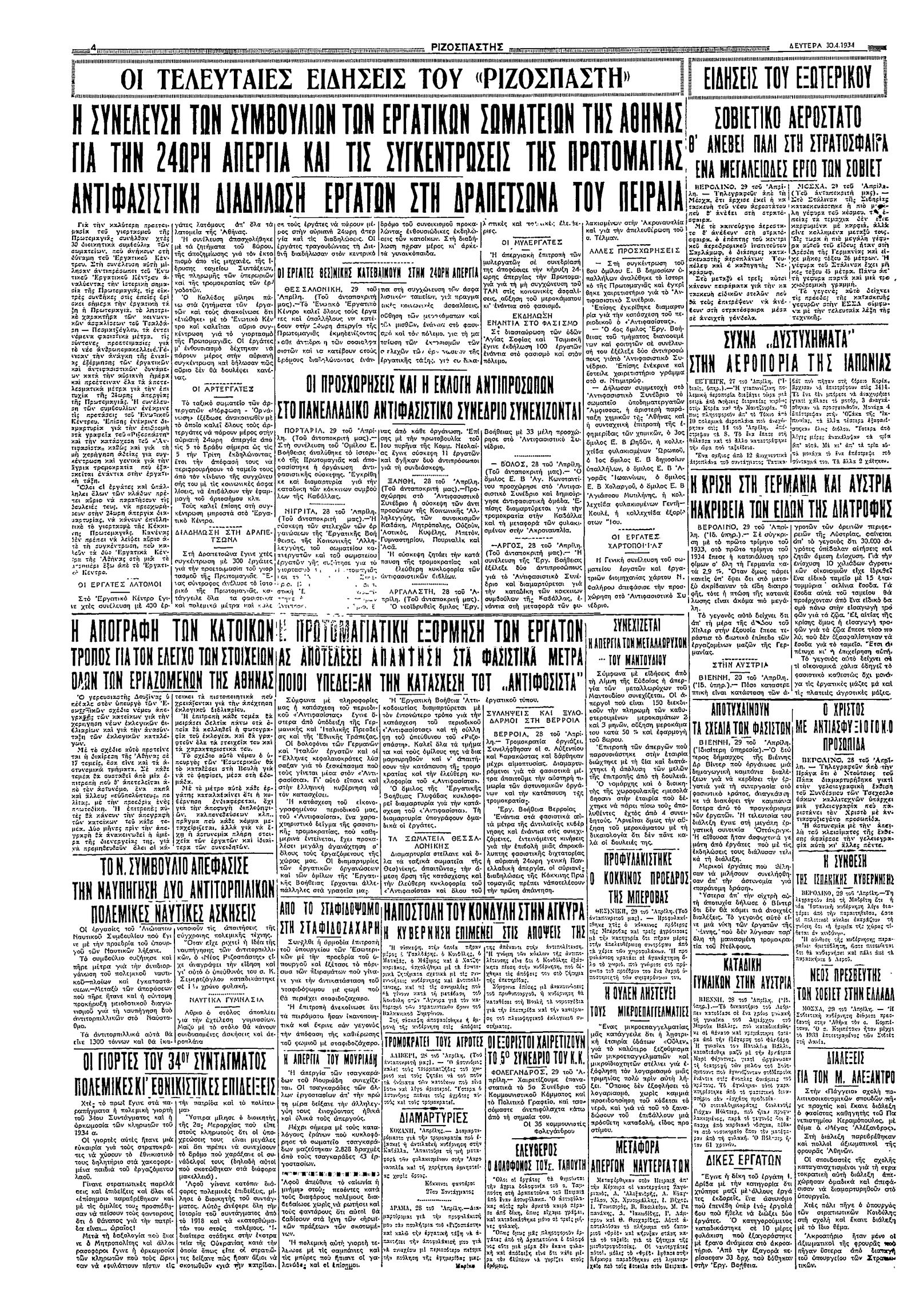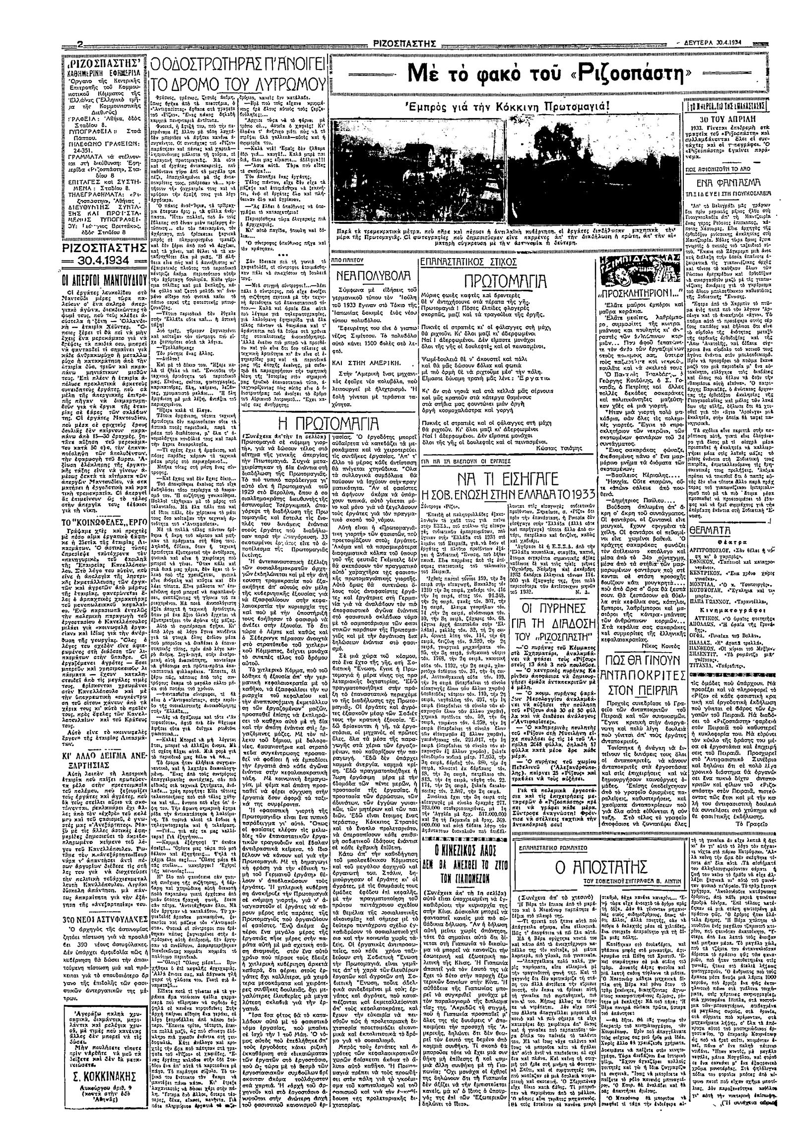Ριζοσπάστης 30/04/1934
