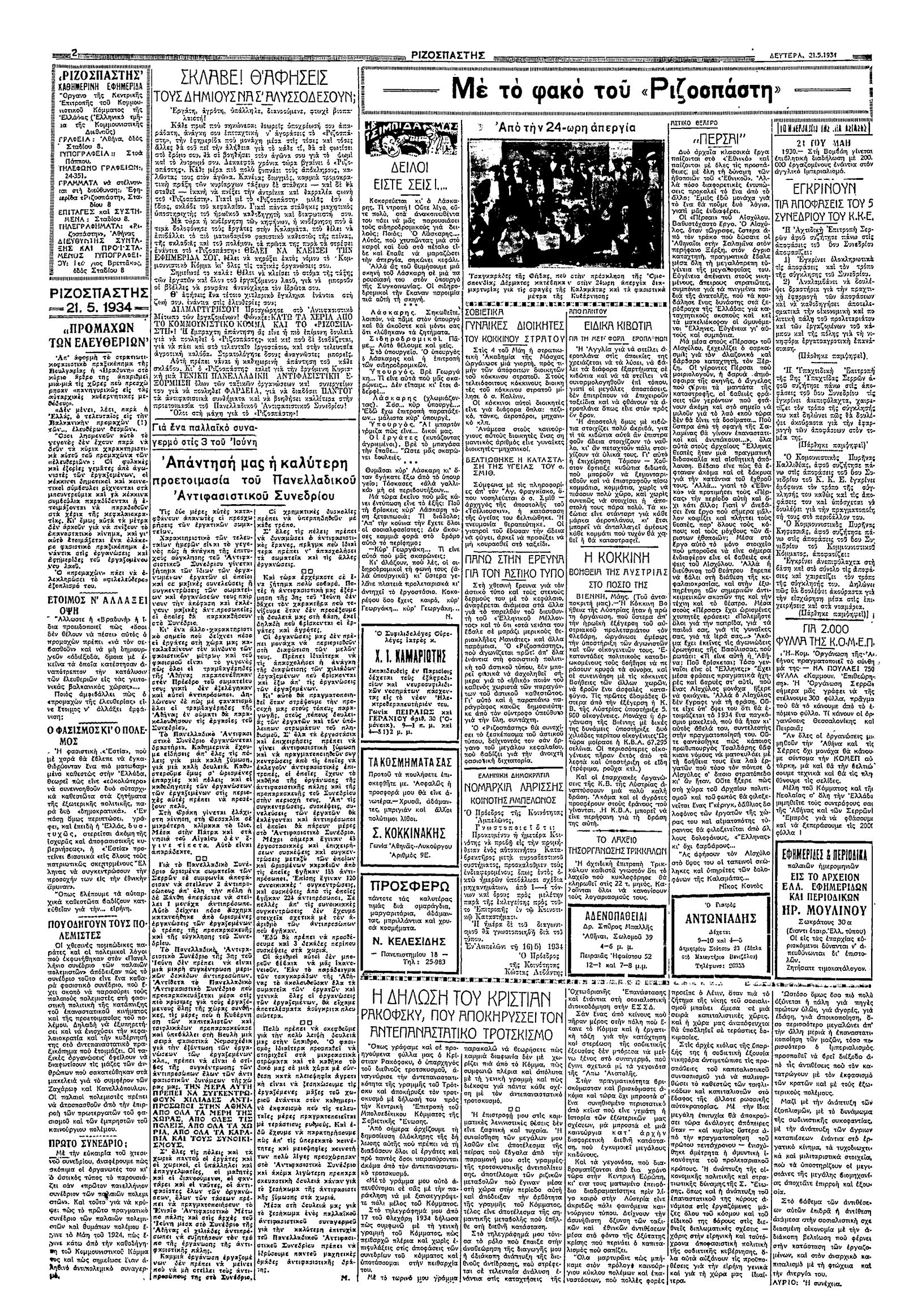 Ριζοσπάστης 21/05/1934