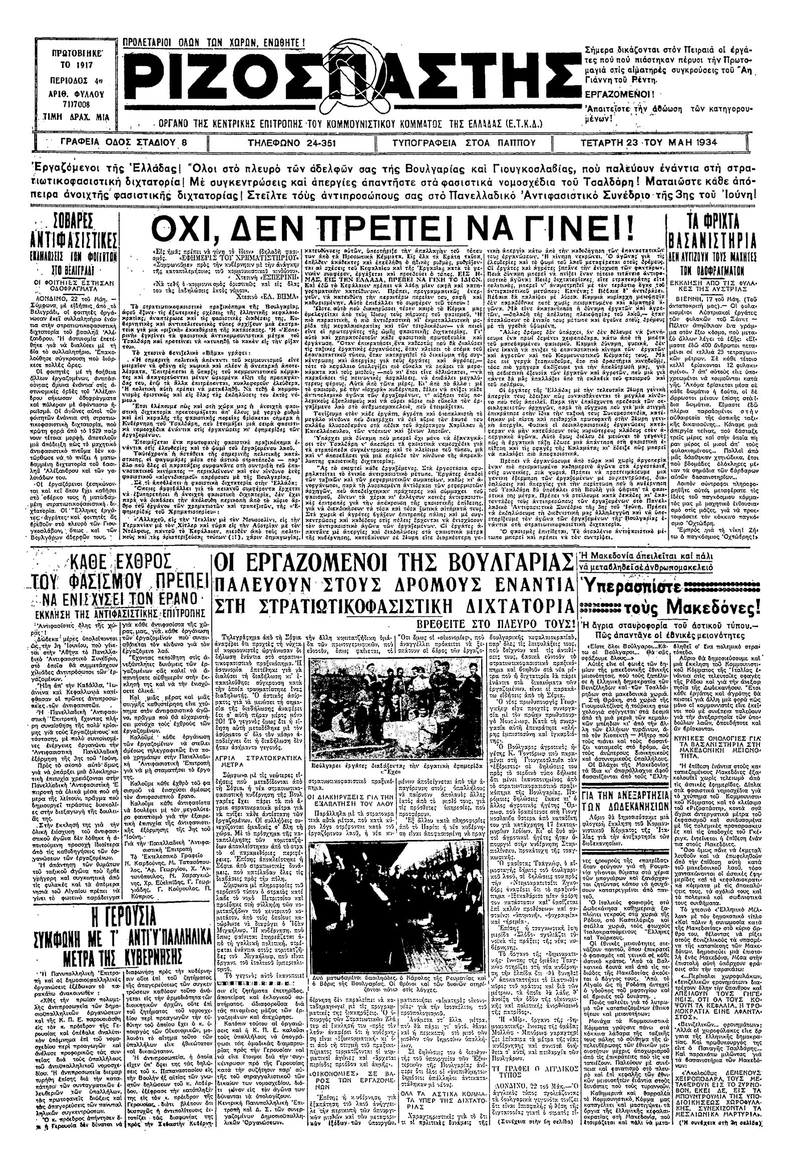 Ριζοσπάστης 23/05/1934