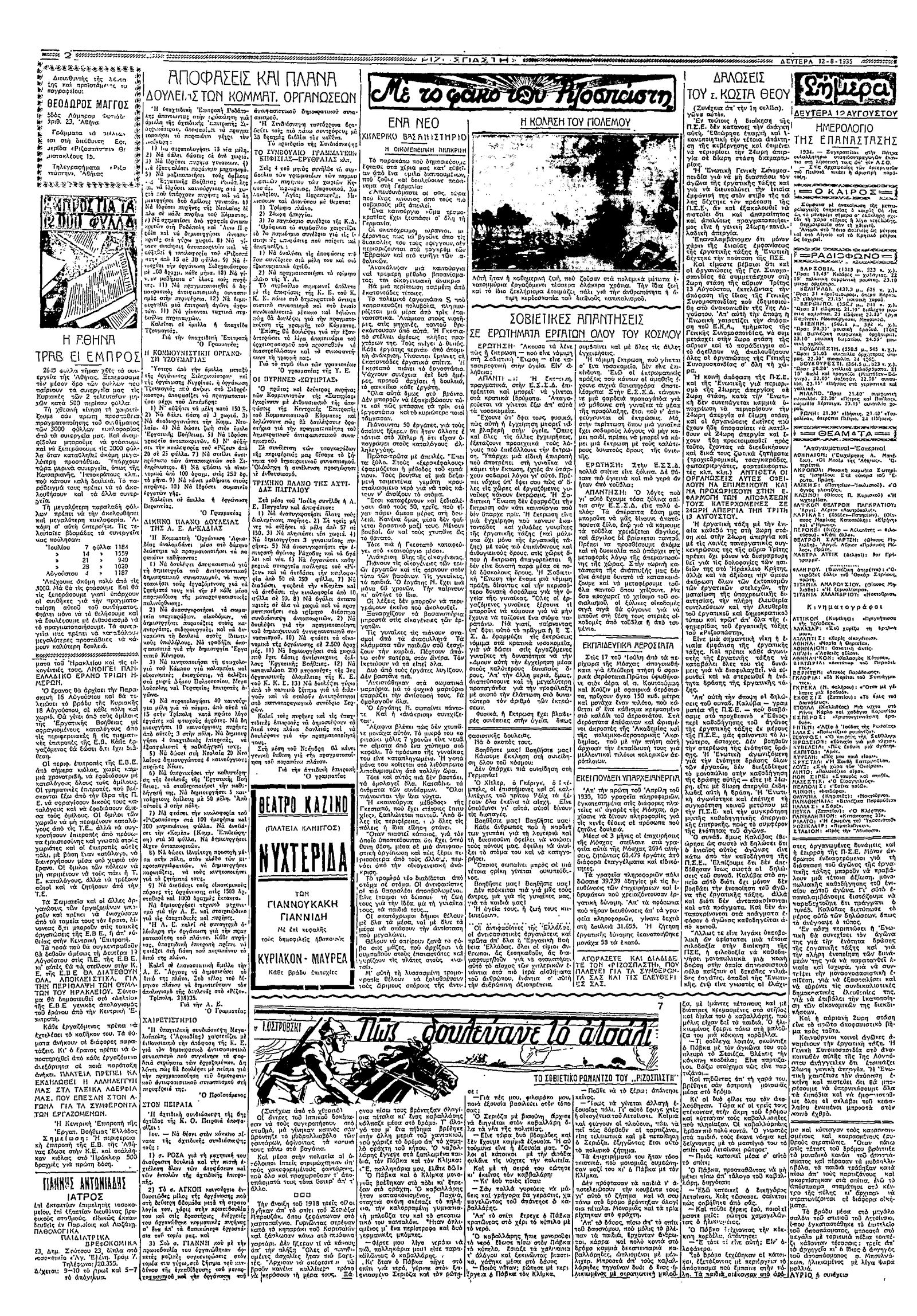 Ριζοσπάστης 12/08/1935