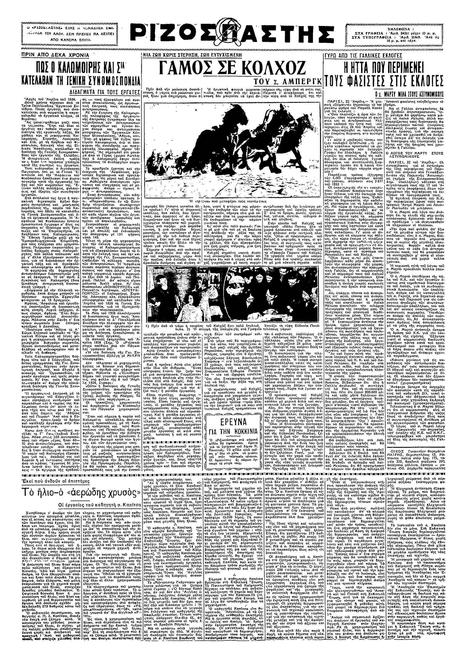 Ριζοσπάστης 25/04/1936