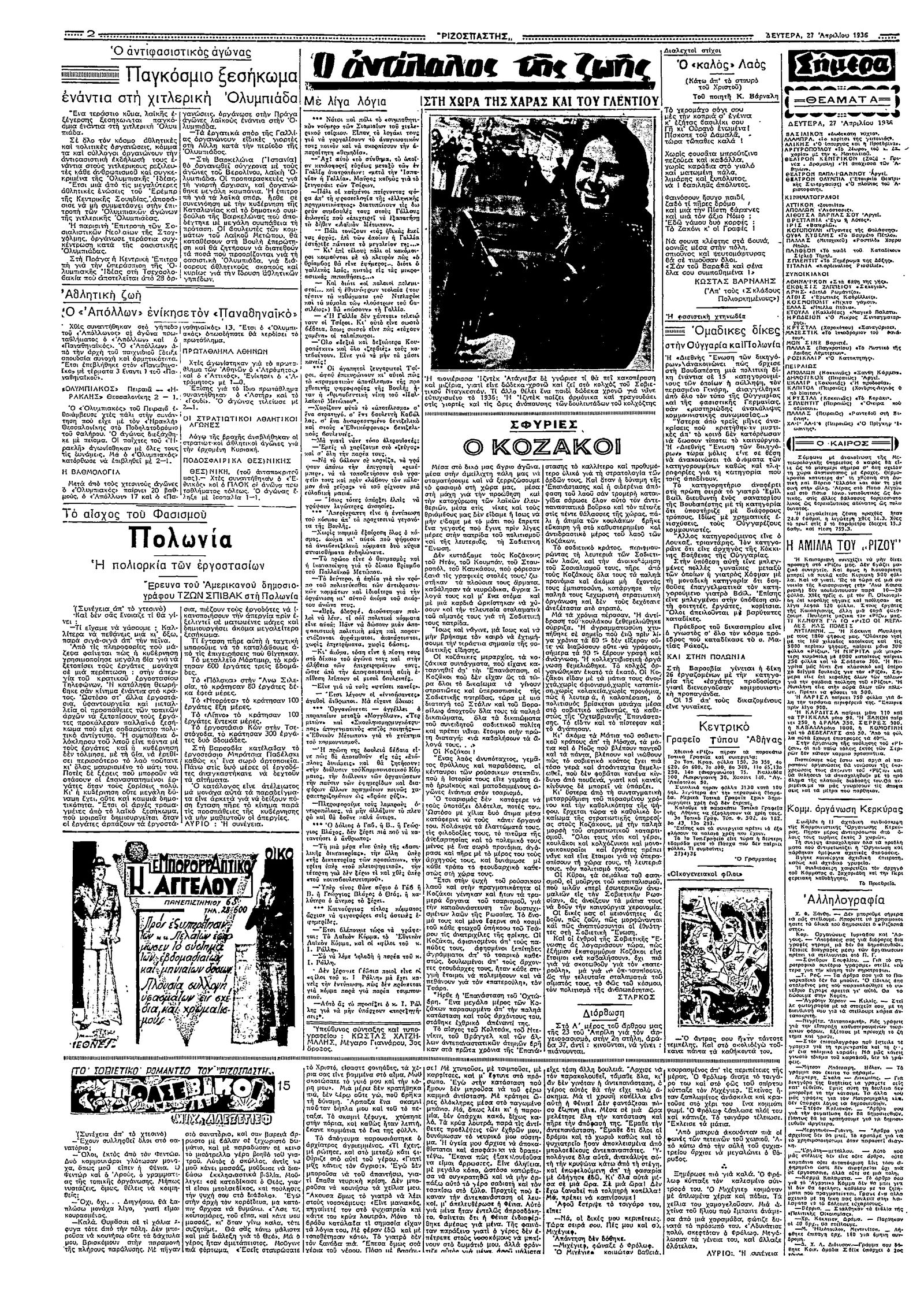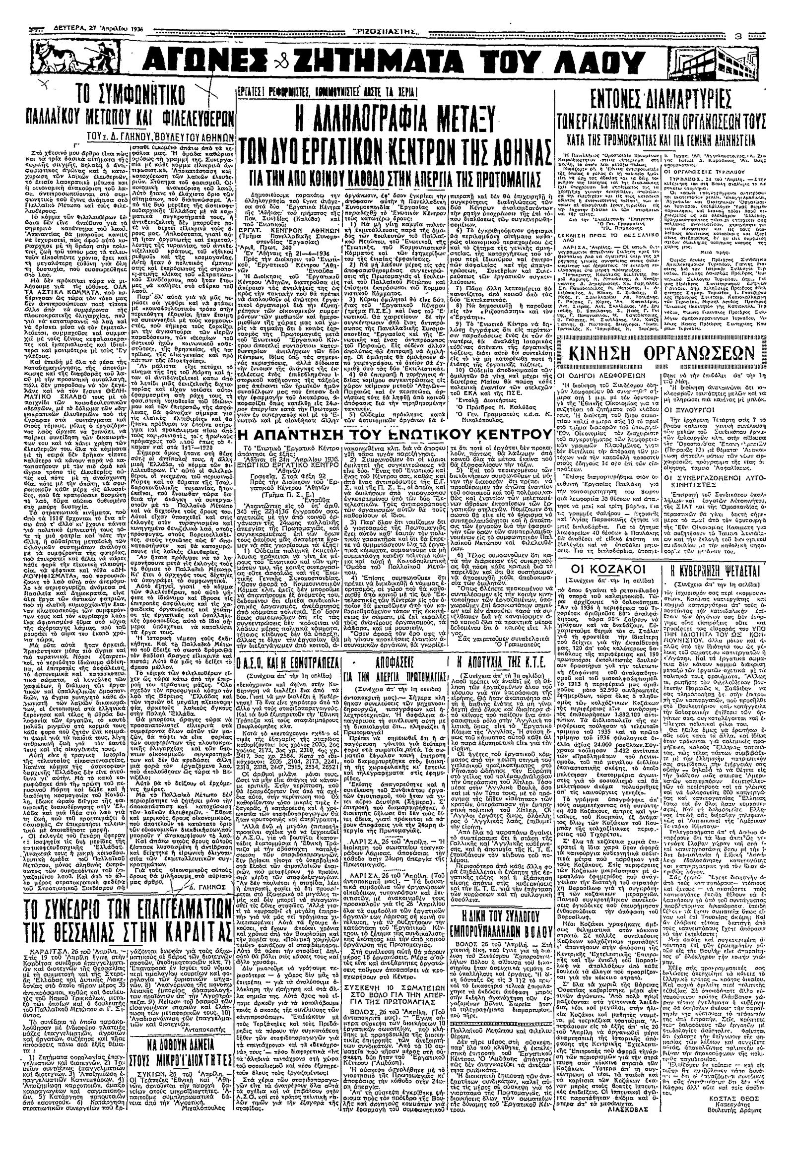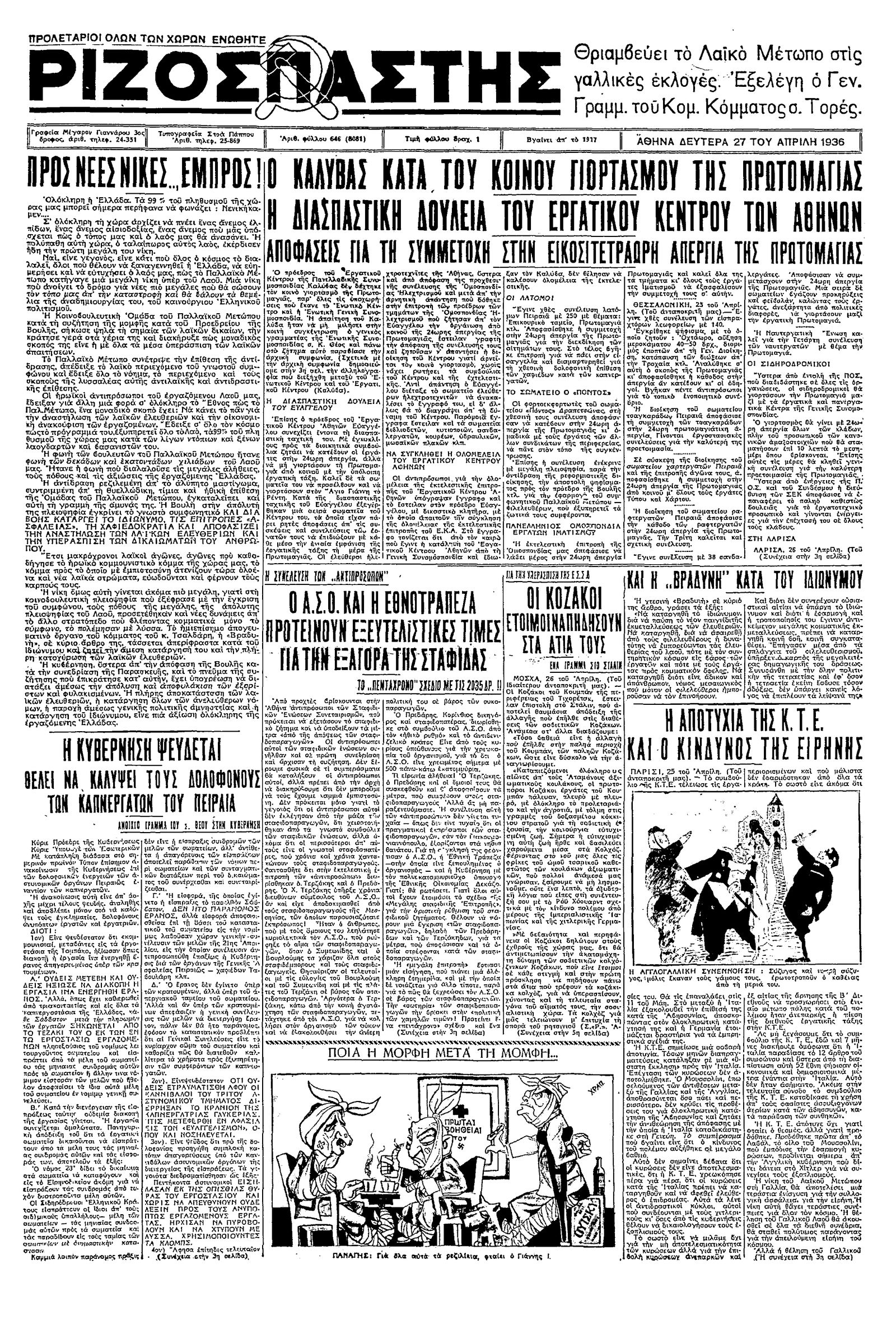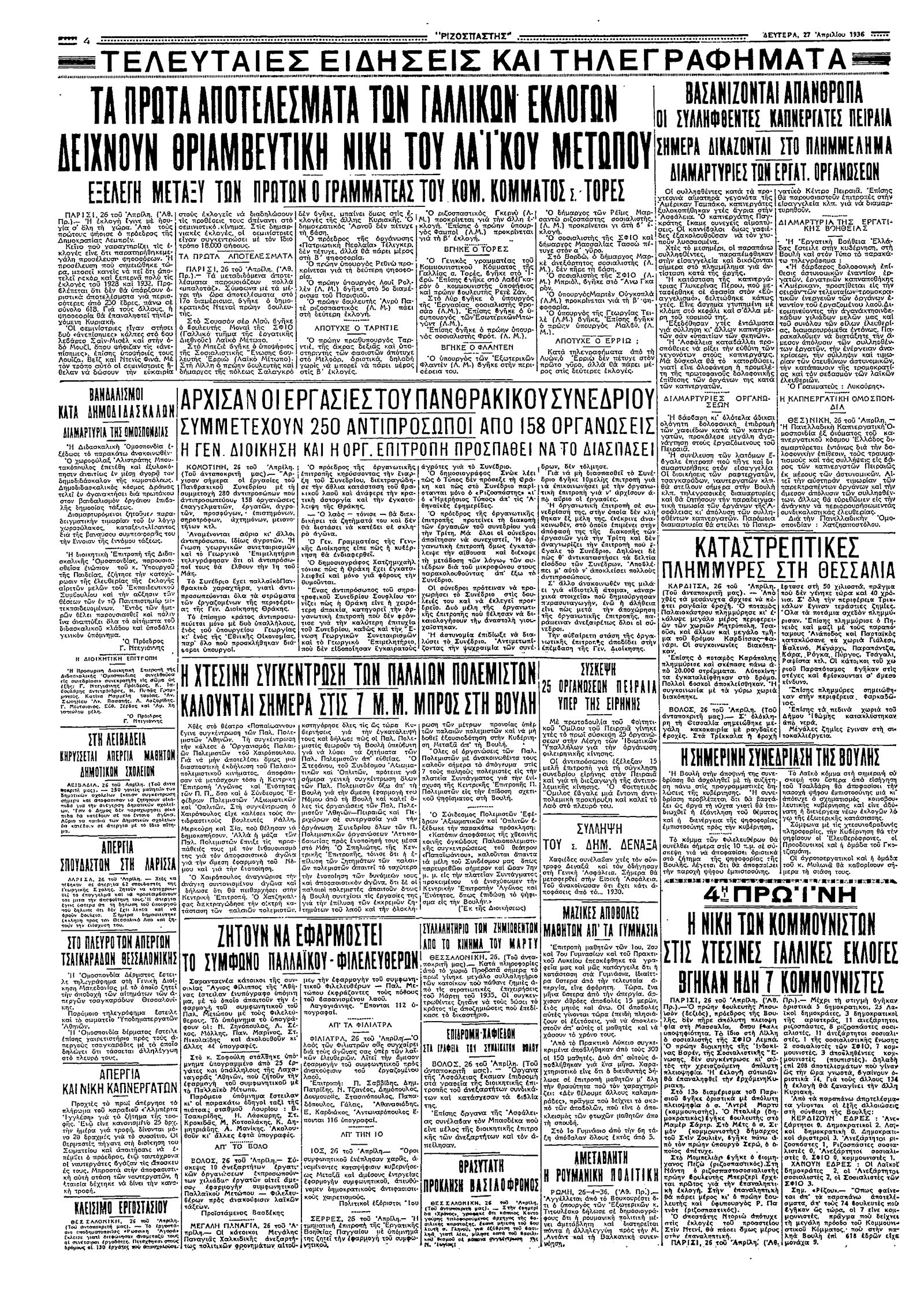 Ριζοσπάστης 27/04/1936