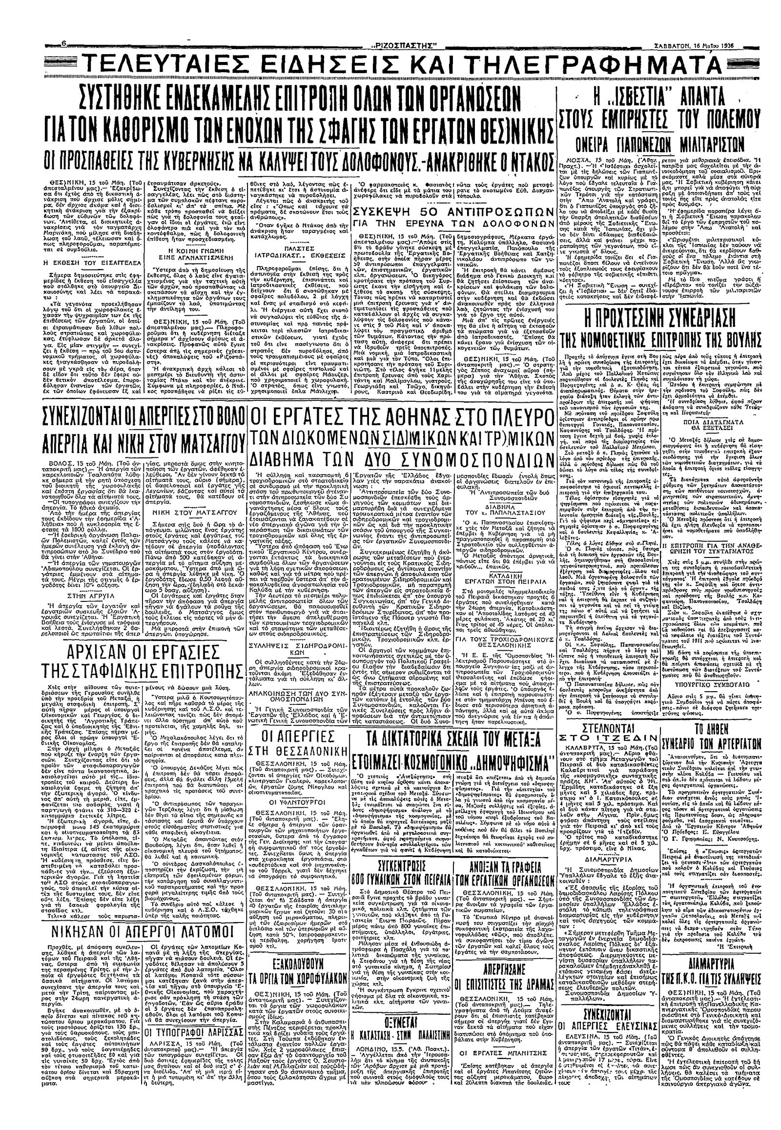 Ριζοσπάστης 16/05/1936