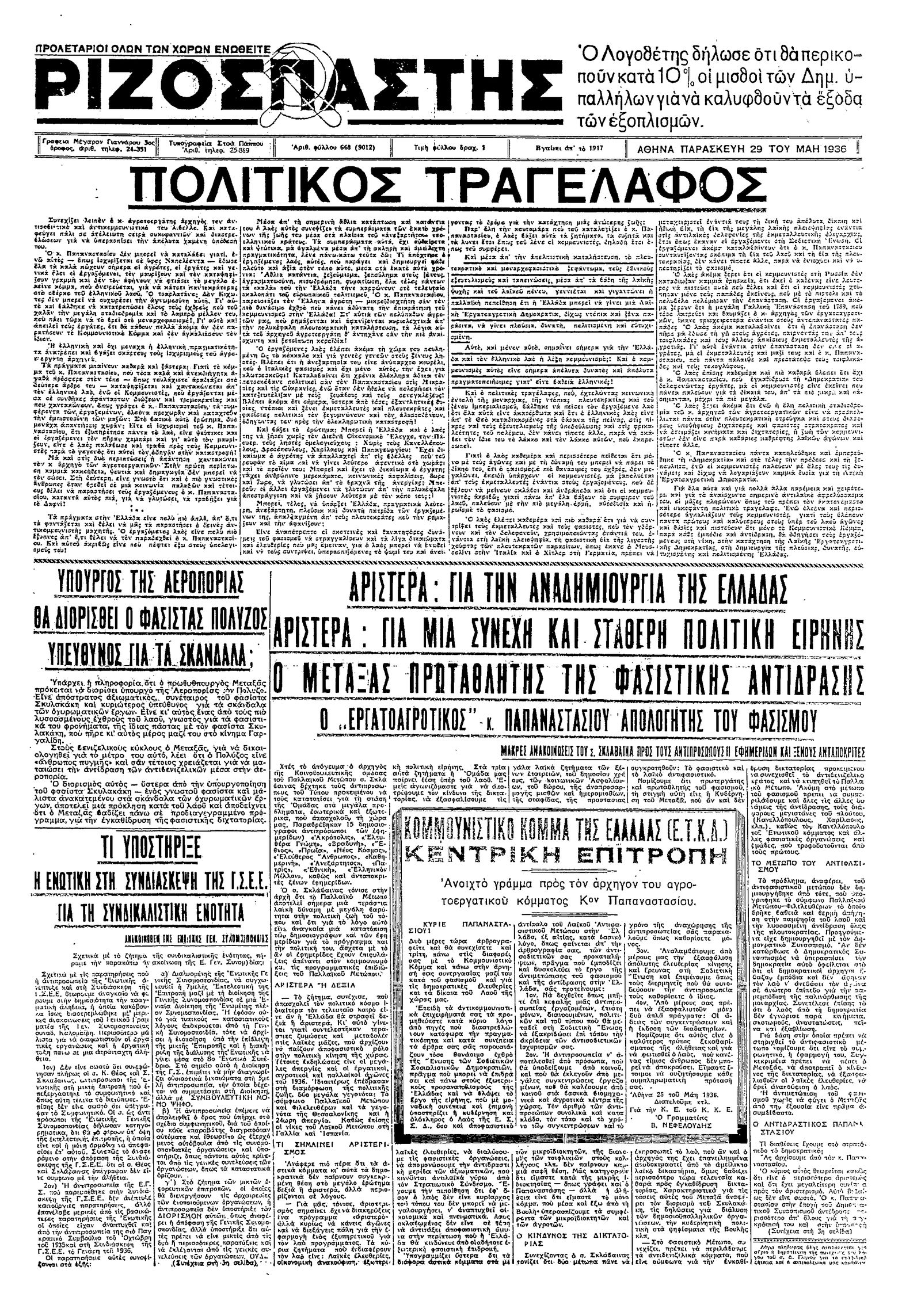 Ριζοσπάστης 29/05/1936