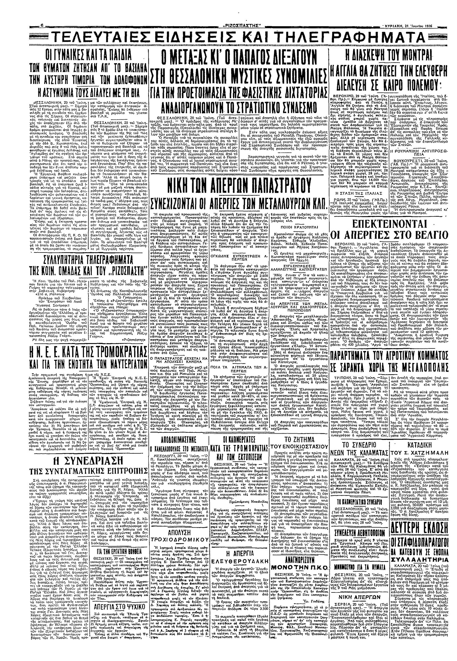 Ριζοσπάστης 21/06/1936