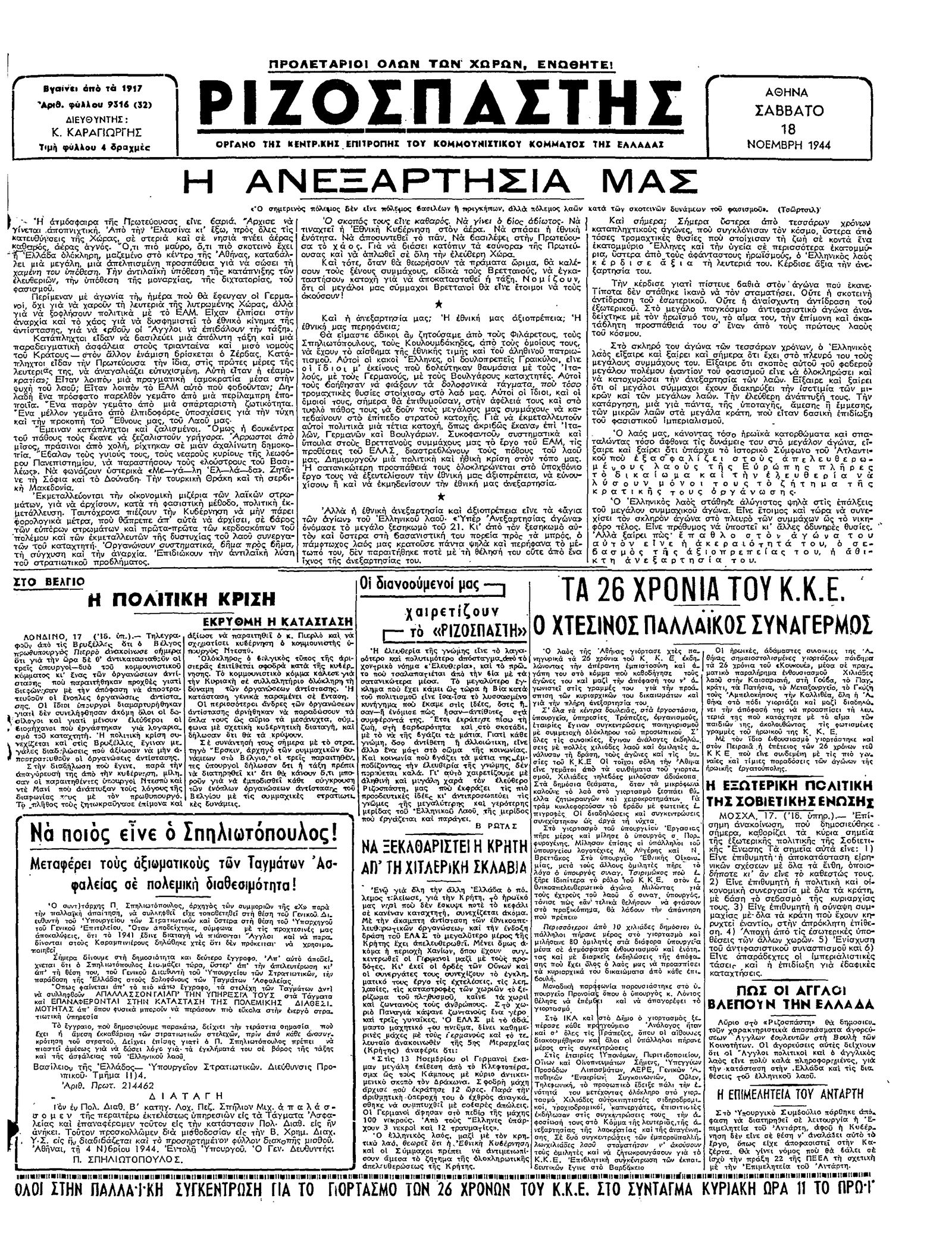 Ριζοσπάστης 18/11/1944