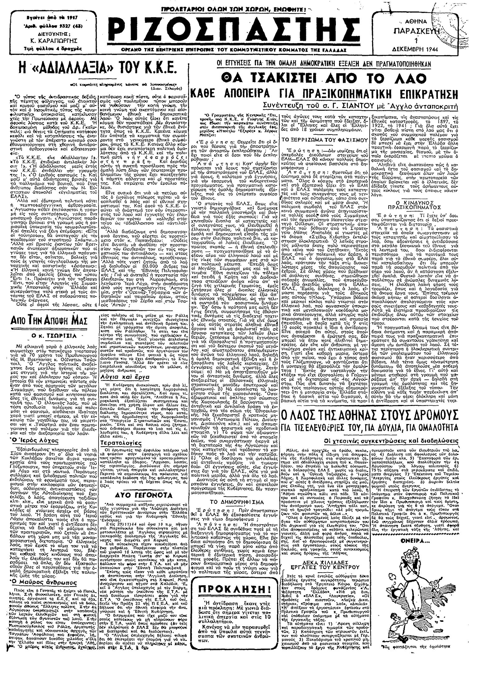 Ριζοσπάστης 01/12/1944