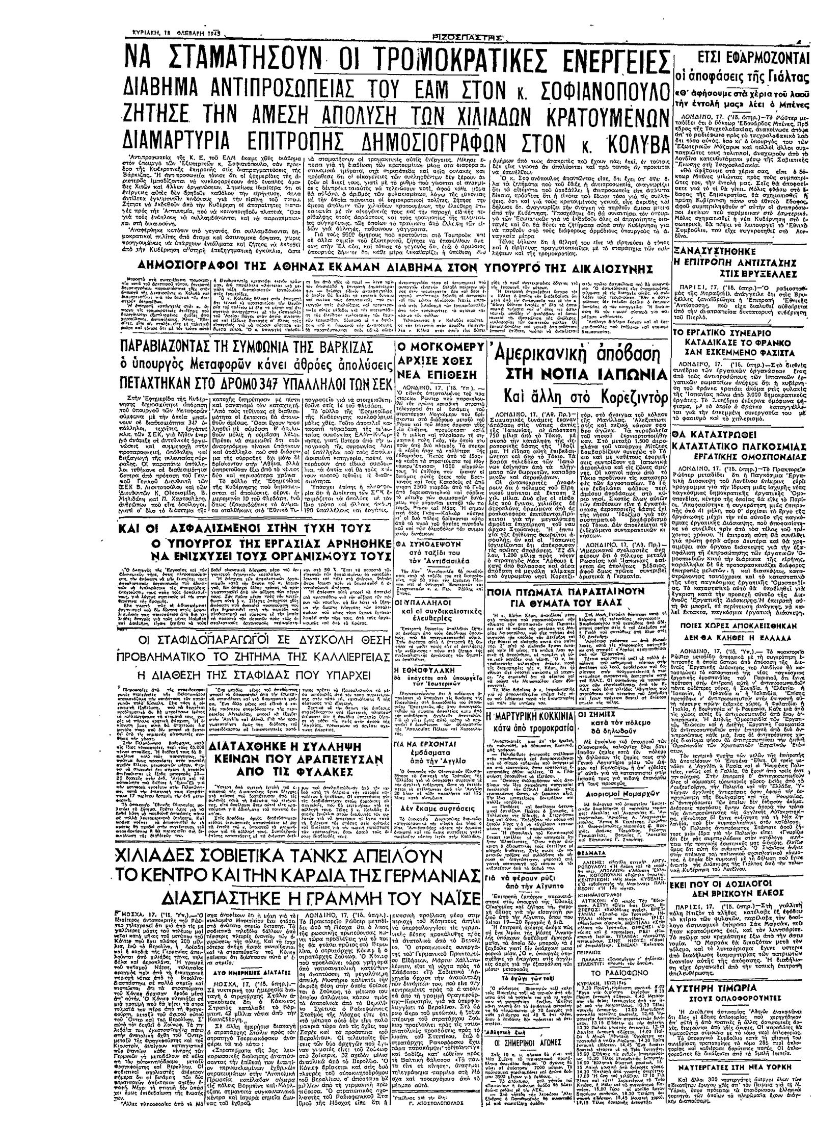 Ριζοσπάστης 18/02/1945