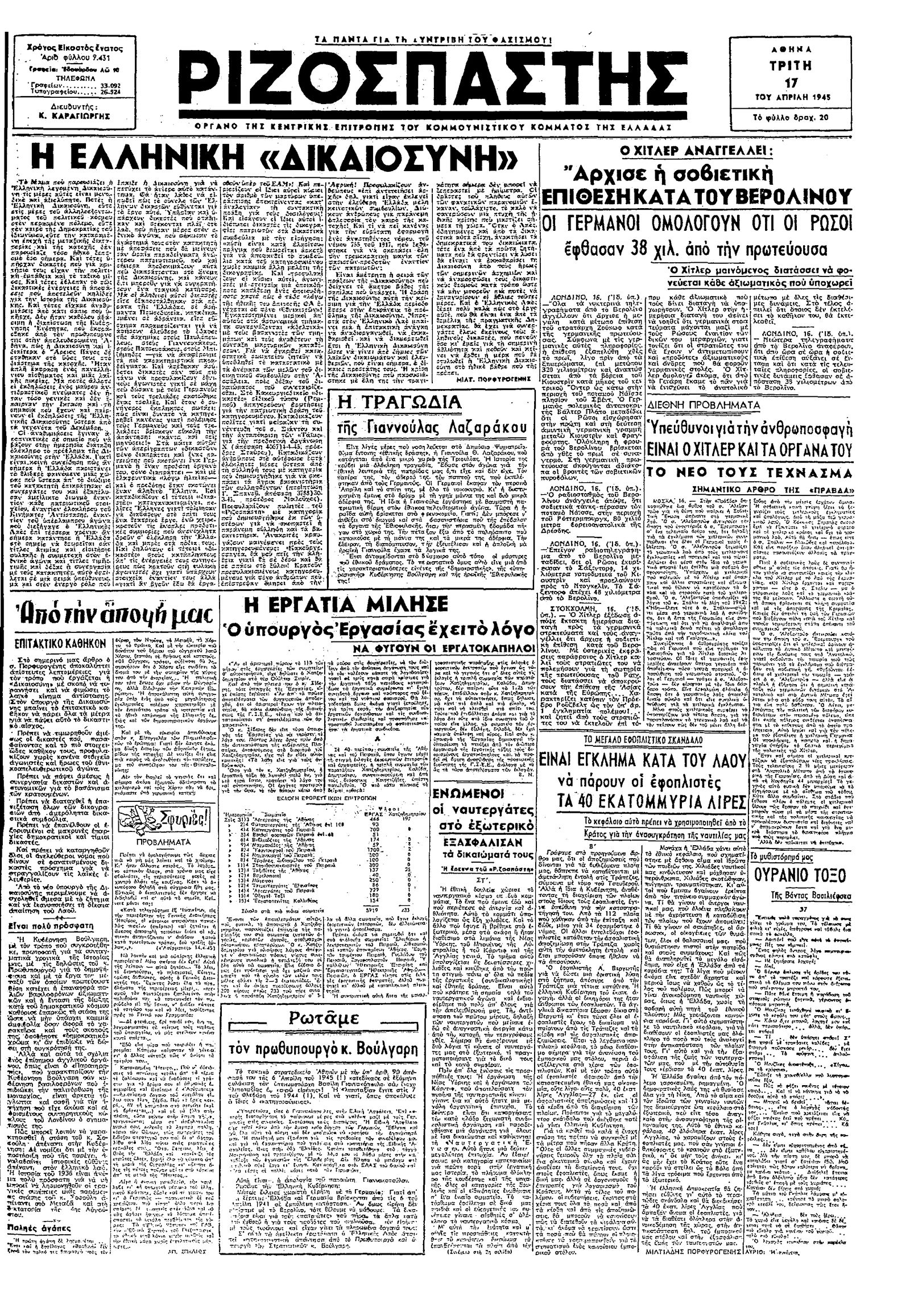 Ριζοσπάστης 17/04/1945