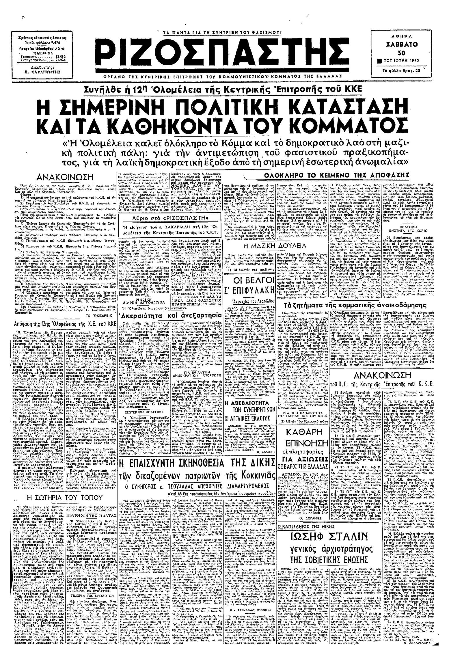 Ριζοσπάστης 30/06/1945