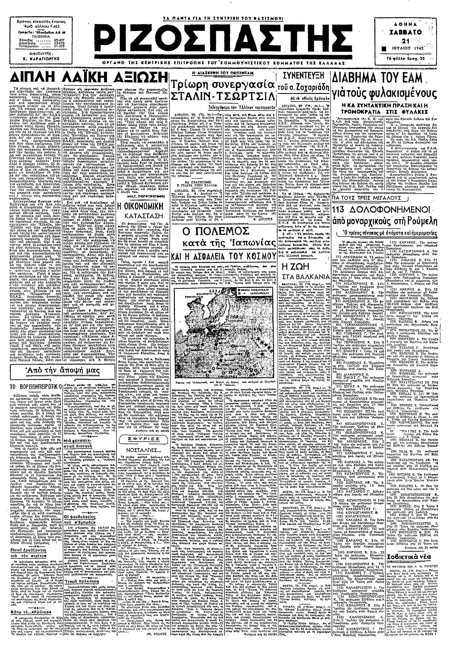 Ριζοσπάστης 21/07/1945