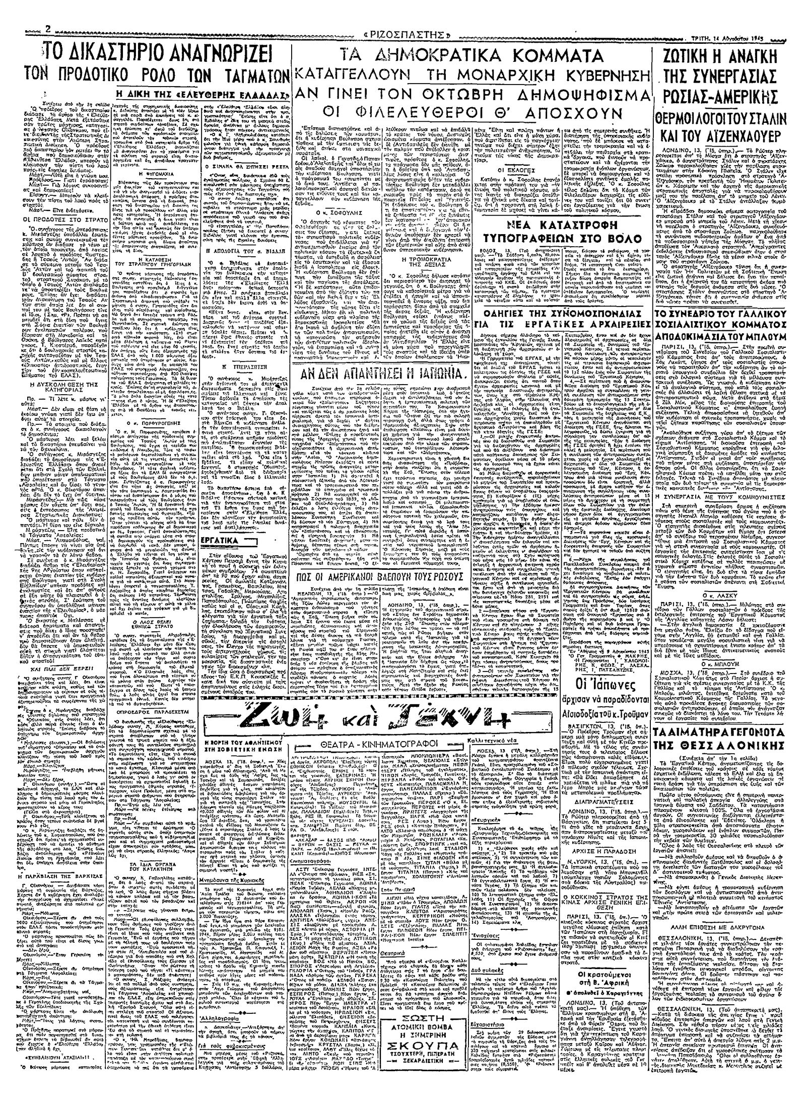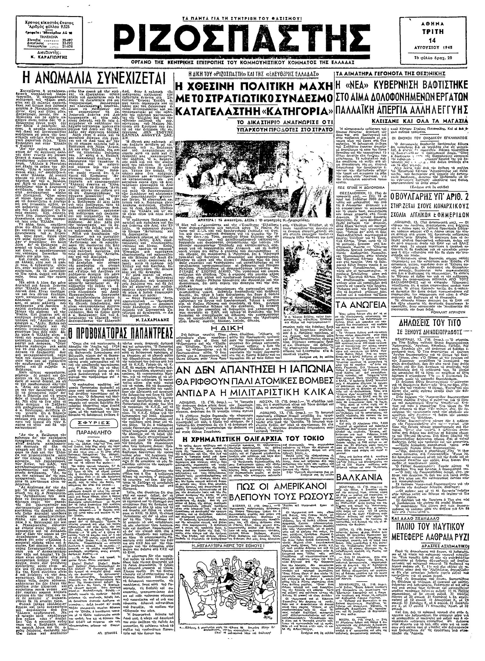 Ριζοσπάστης 14/08/1945