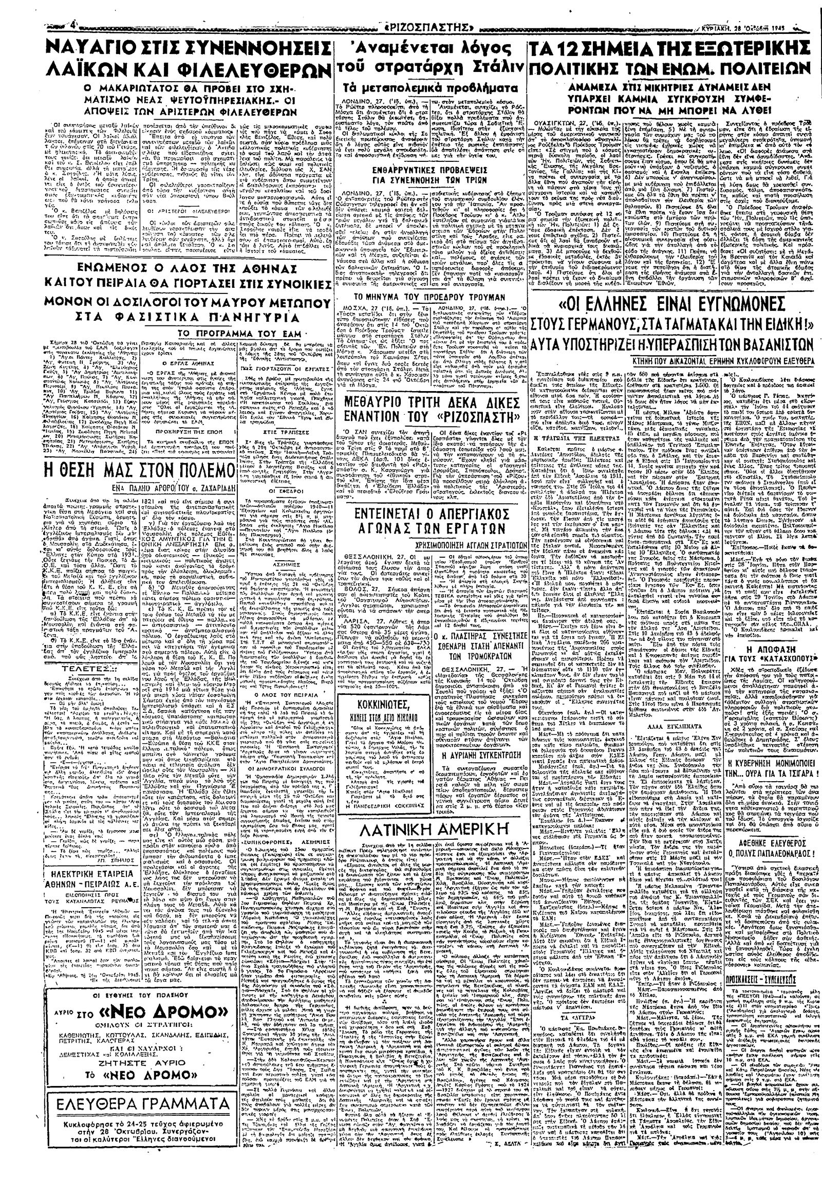 Ριζοσπάστης 28/10/1945