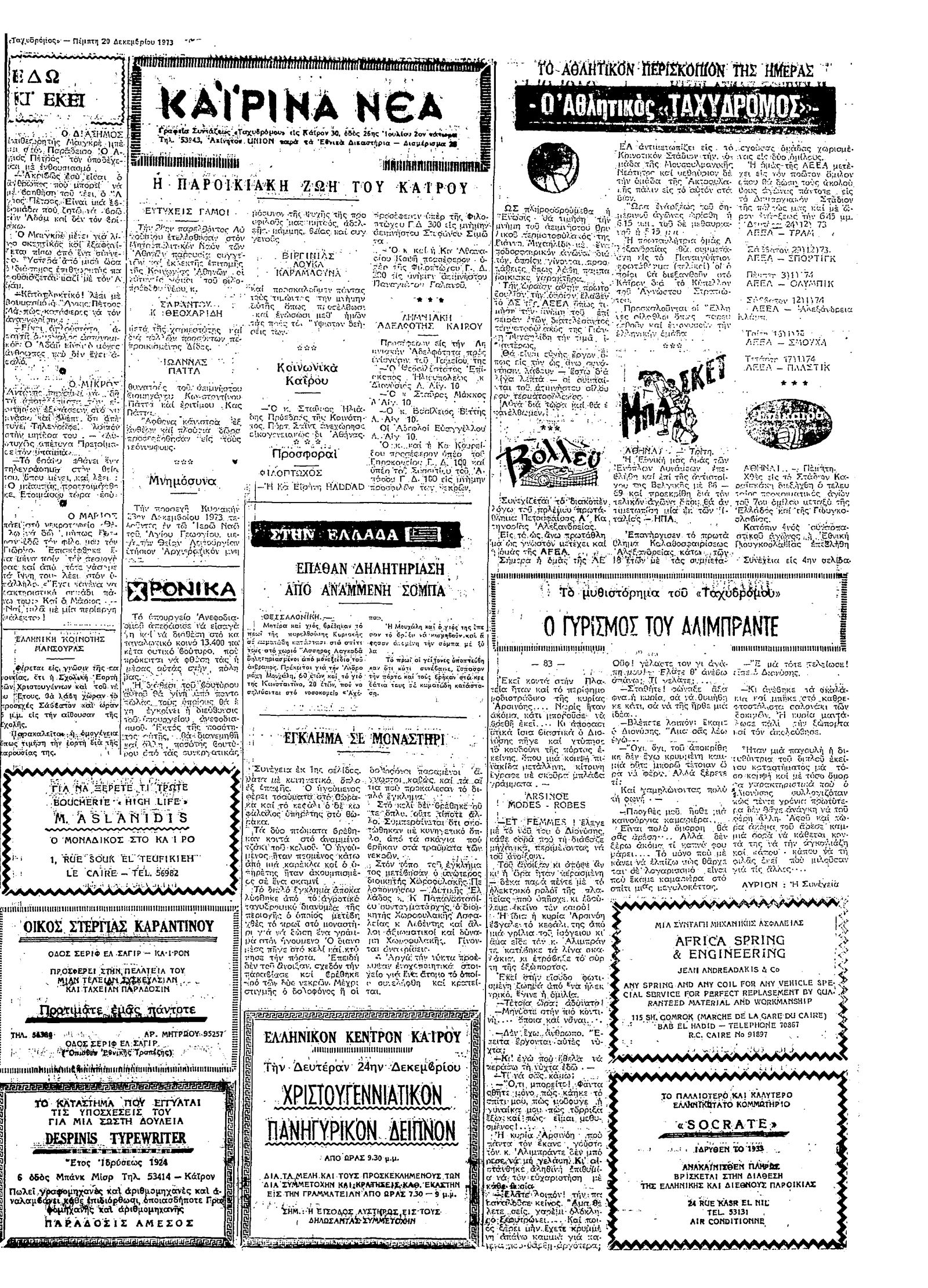 Ταχυδρόμος 20/12/1973