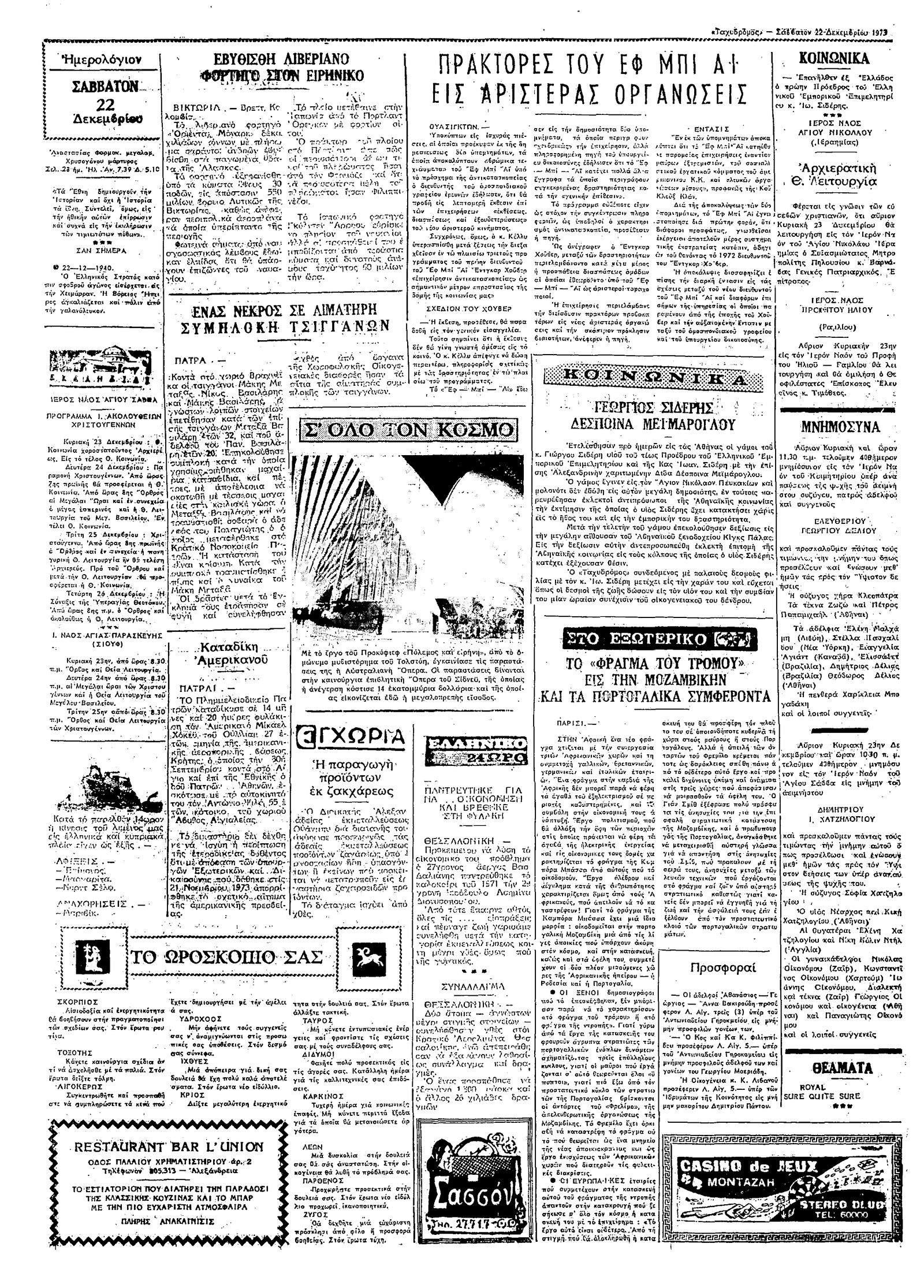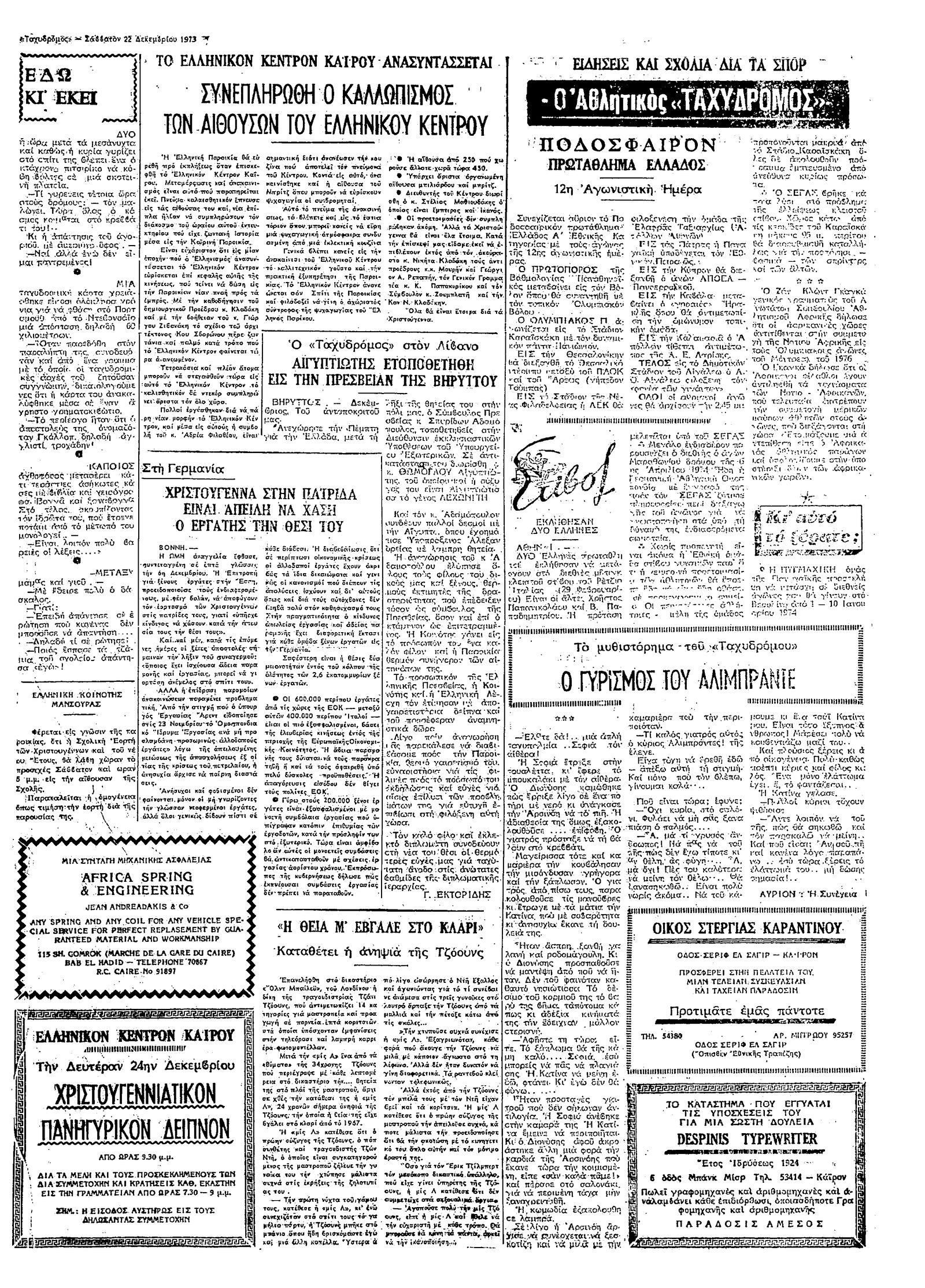 Ταχυδρόμος 22/12/1973