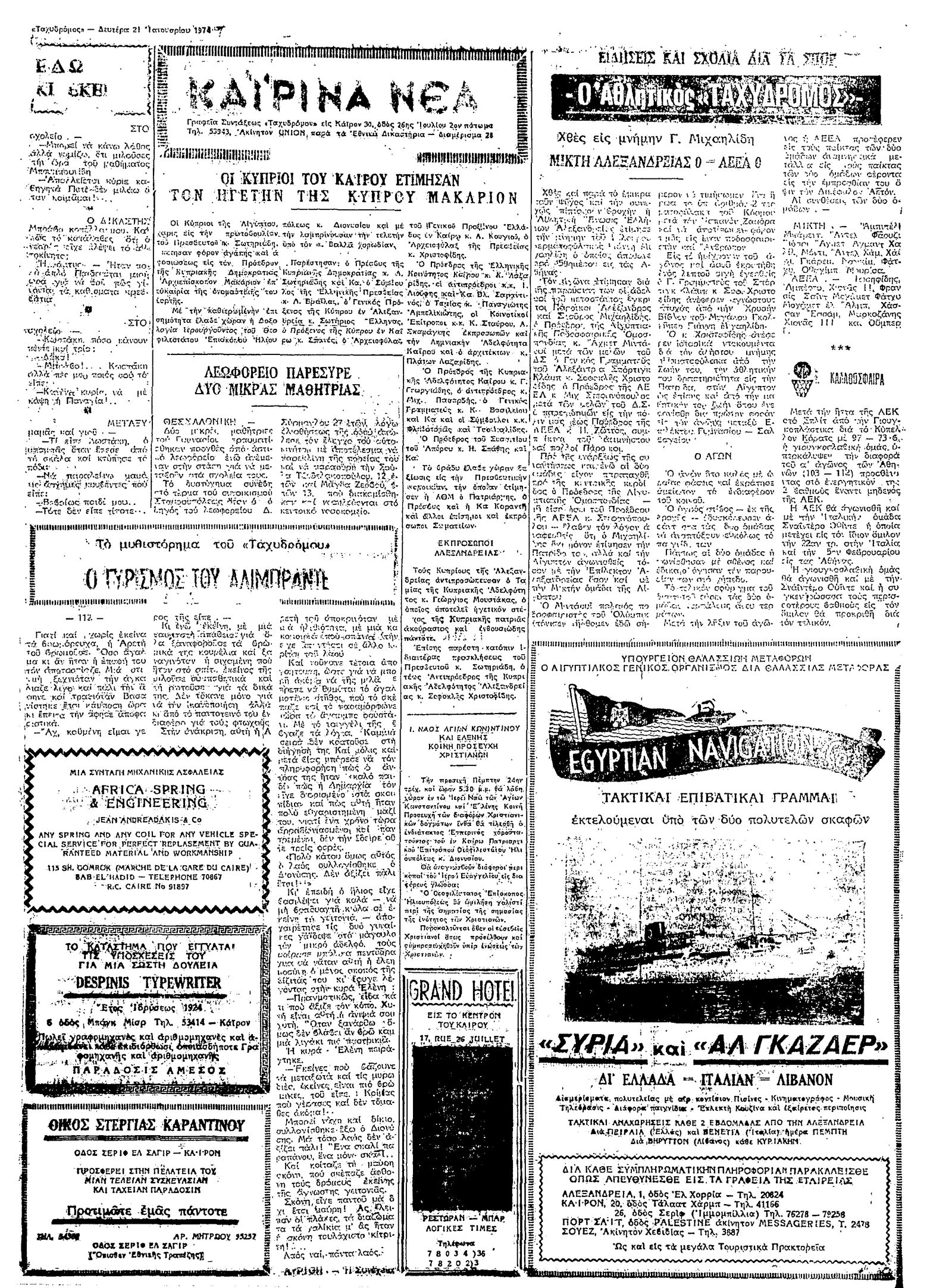 Ταχυδρόμος 21/01/1974