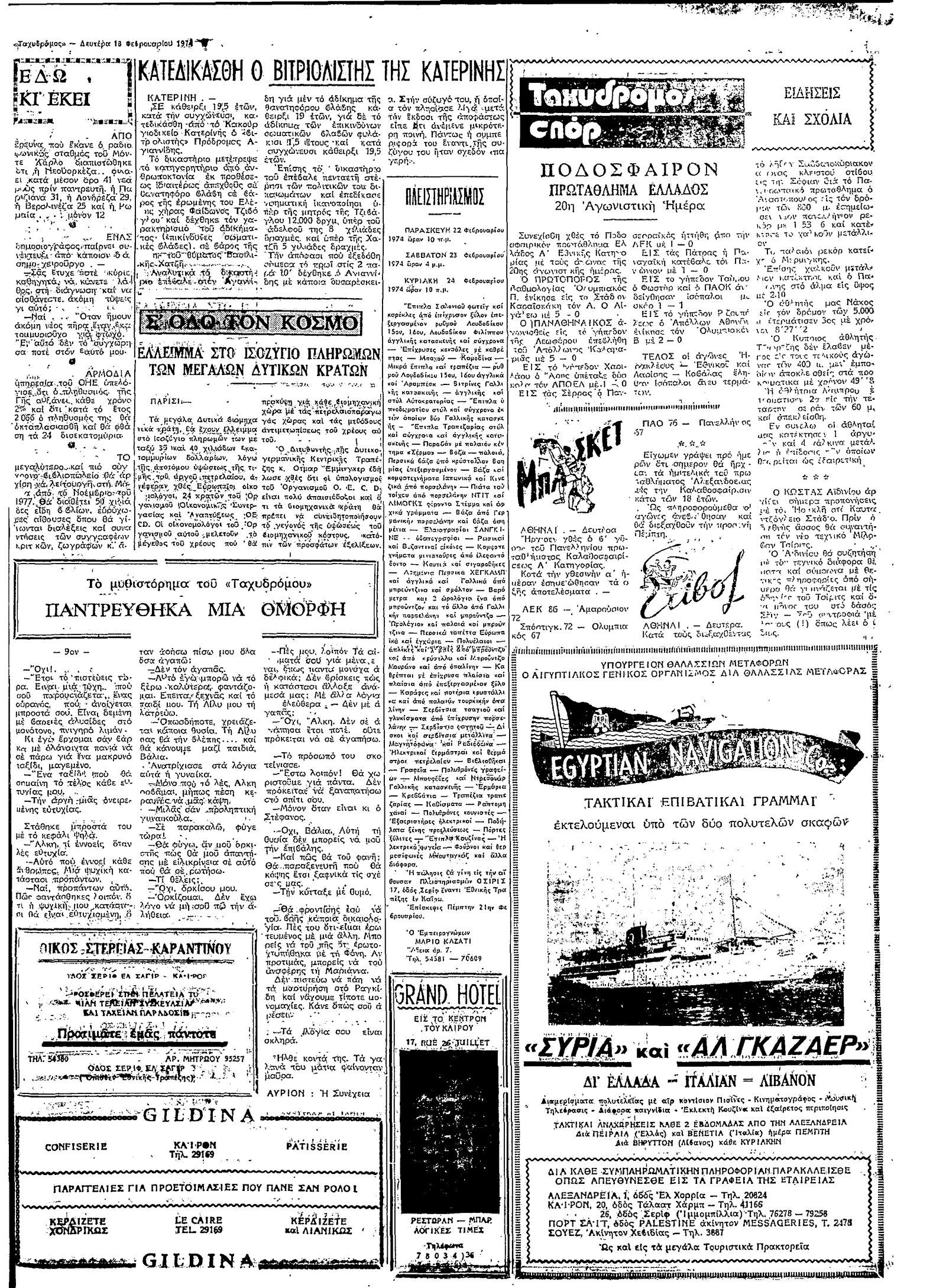 Ταχυδρόμος 18/02/1974