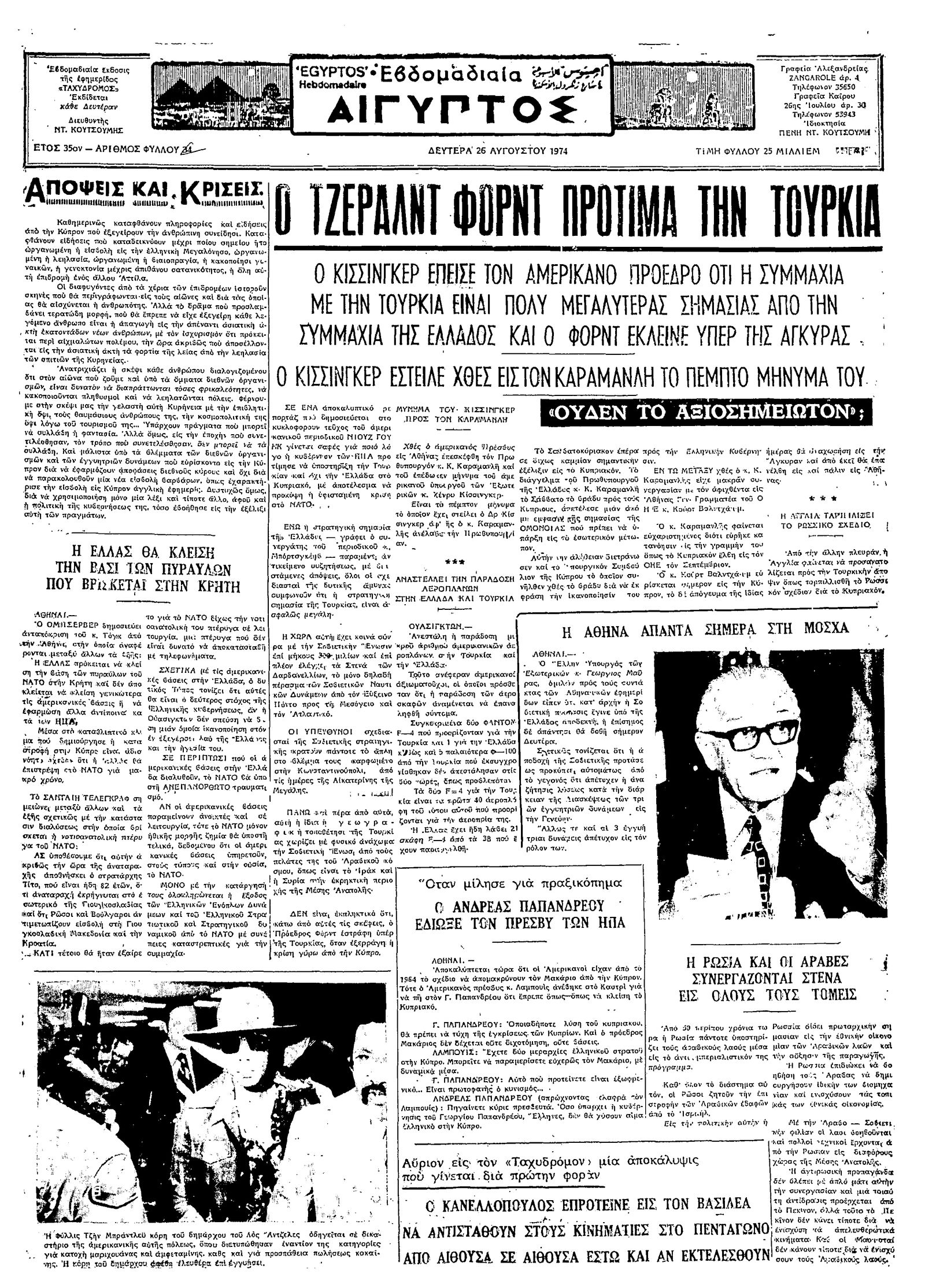 Ταχυδρόμος 26/08/1974