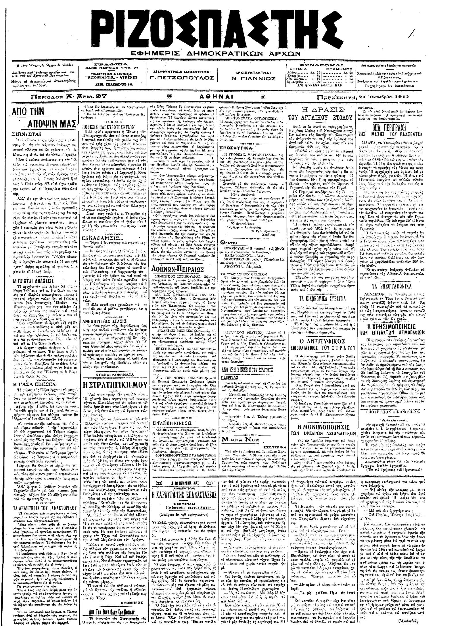 Ριζοσπάστης 27/10/1917