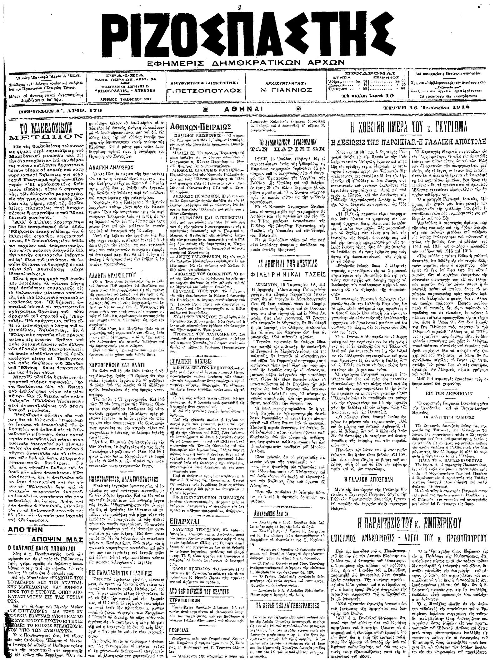 Ριζοσπάστης 16/01/1918
